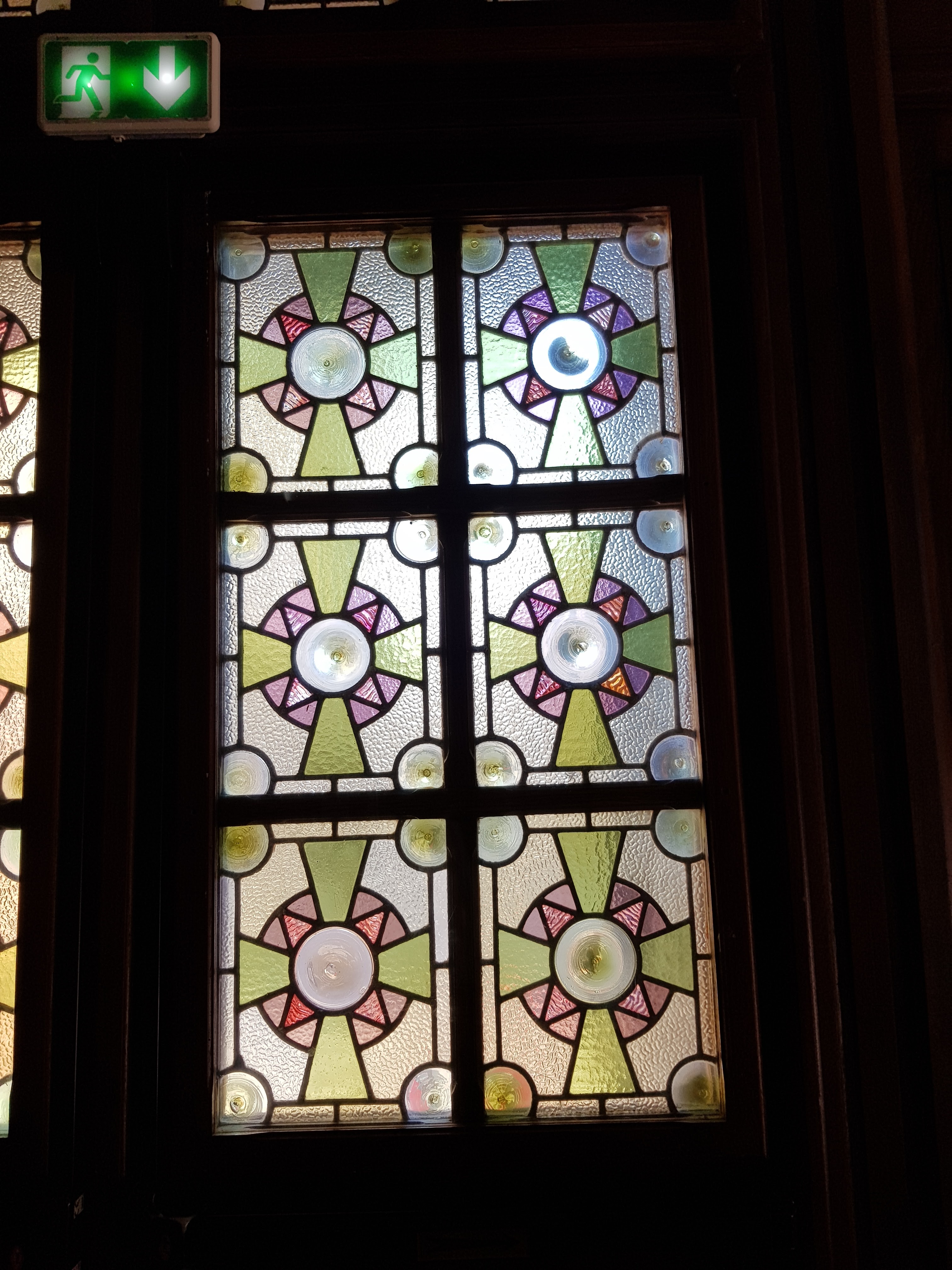 Une église calme. Le vitrail était magnifique au soleil couchant.