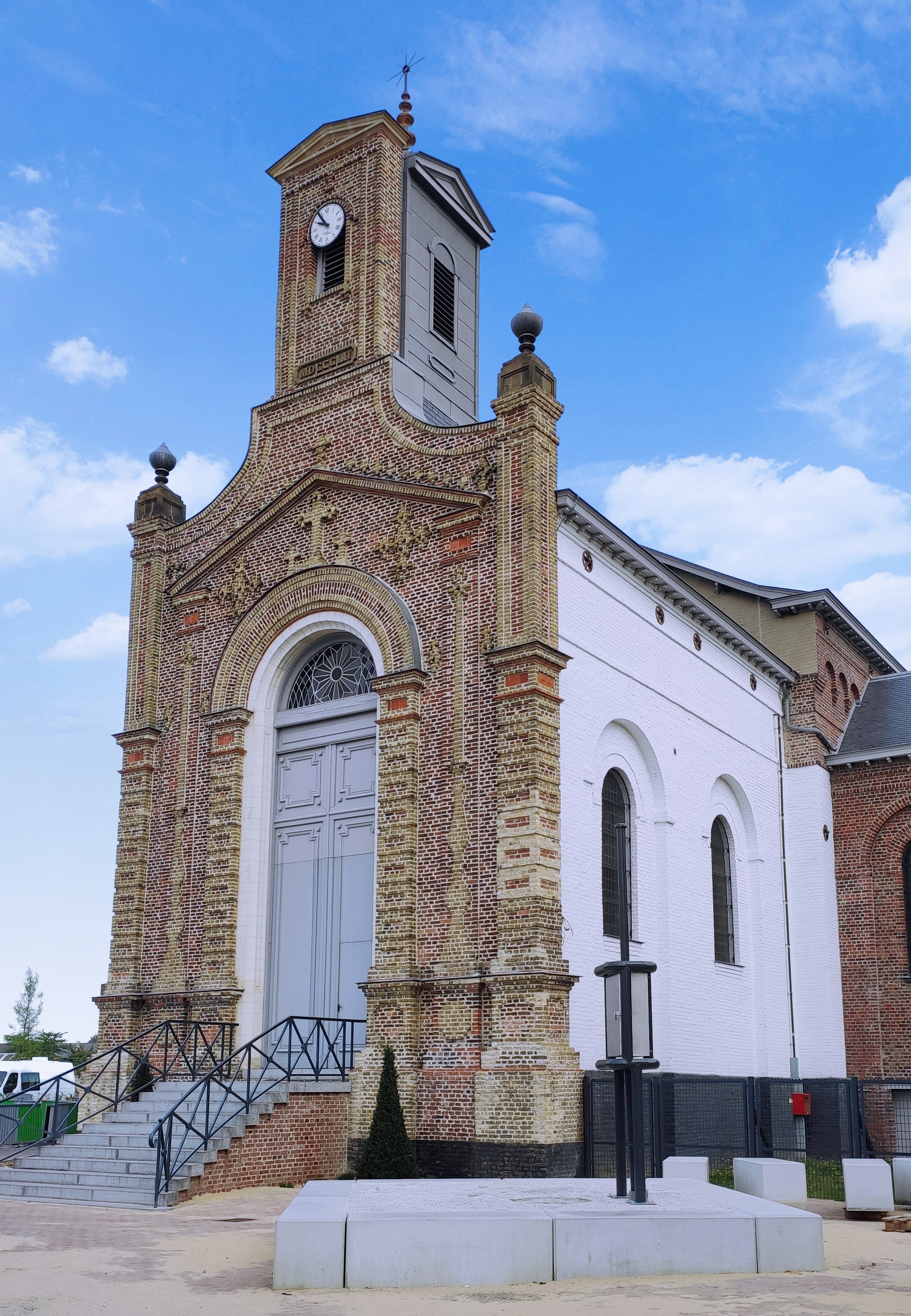 Très belle église en briques qui ont été peintes en blanc sur les côtés. Elle possède au fond une tourelle. Le clocher en briques quii n'ont pas été peintes. Des motifs géométriques ont été réalisés comme une croix au dessus de la porte. Celle ci est très grande. On y accède par des escaliers entourés de rampes métalliques. Le clocher se termine par une croix. L'église est dédicacée à Sainte Barbe. Malheureusement, elle est souvent fermée.