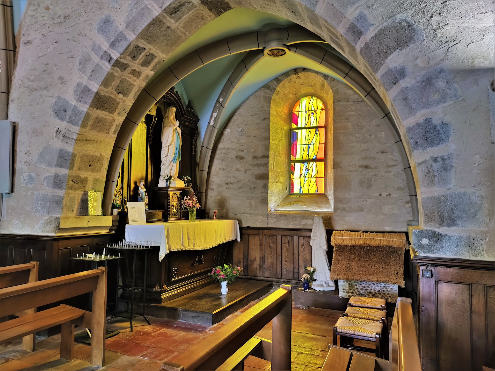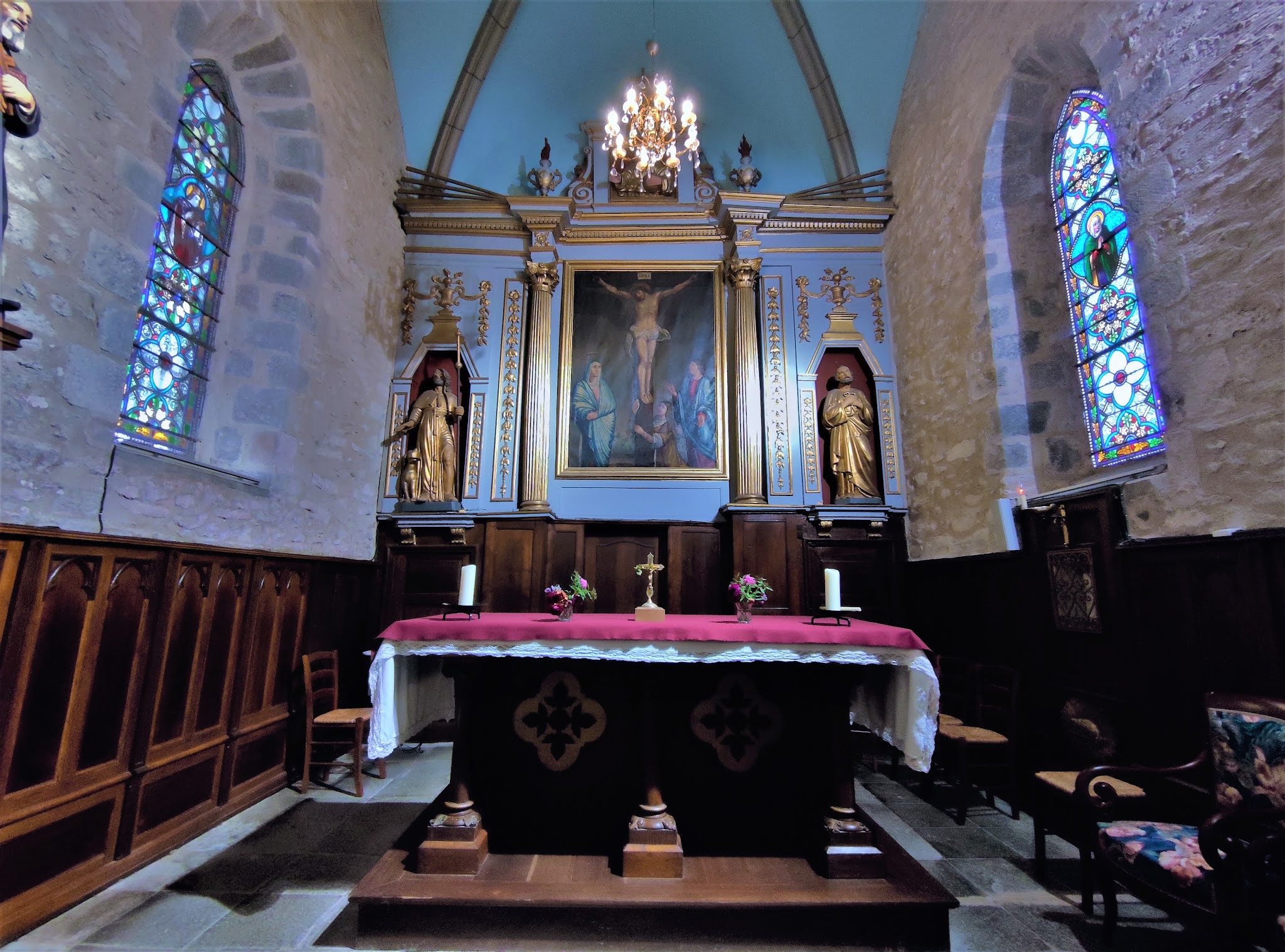 Jolie petite église, avec son clocher à peigne, bien soignée, qui forme le centre du village. Le tableau derrière l´autel est une croûte, mais ça ne nuit pas à l´ensemble.