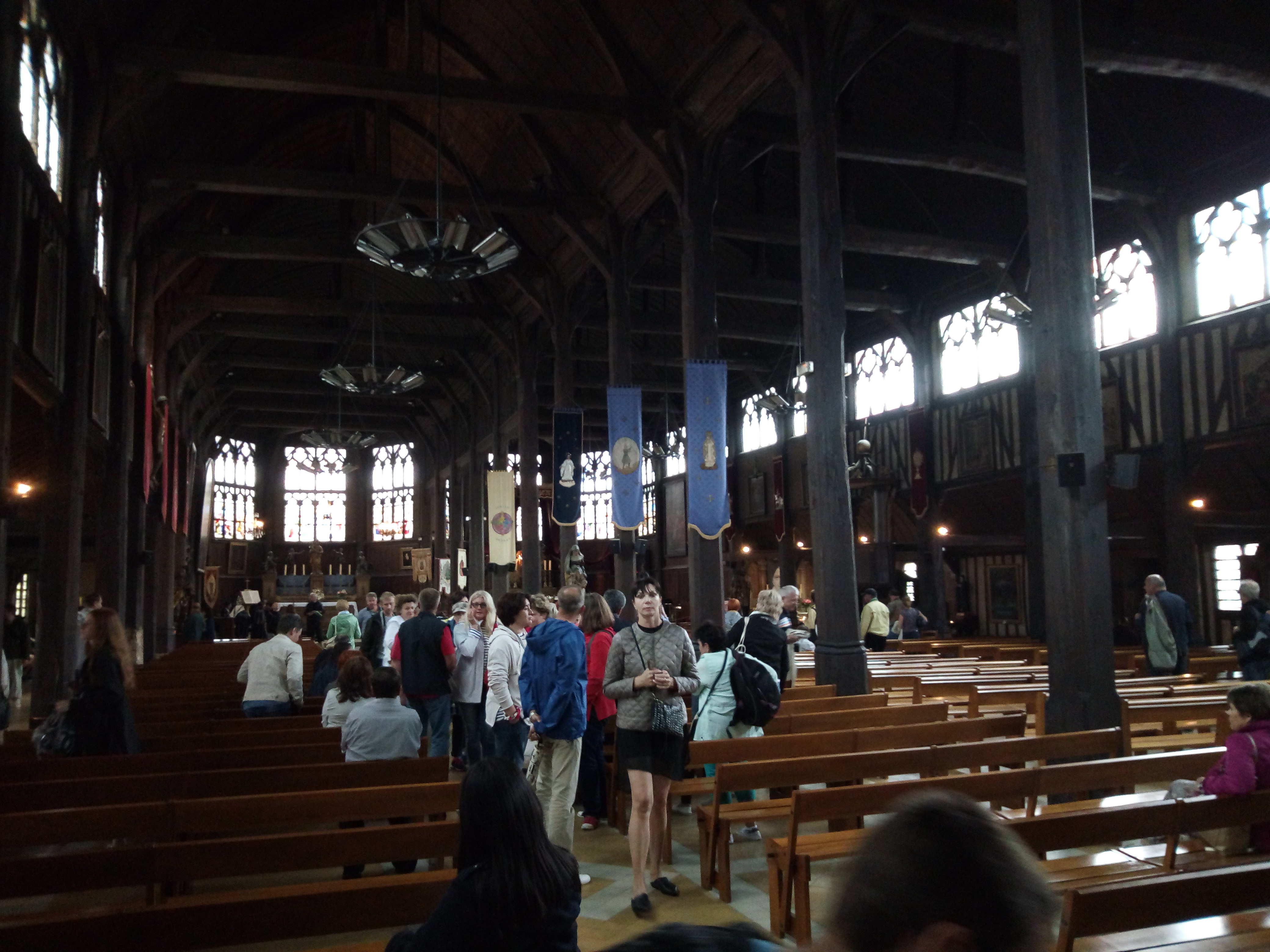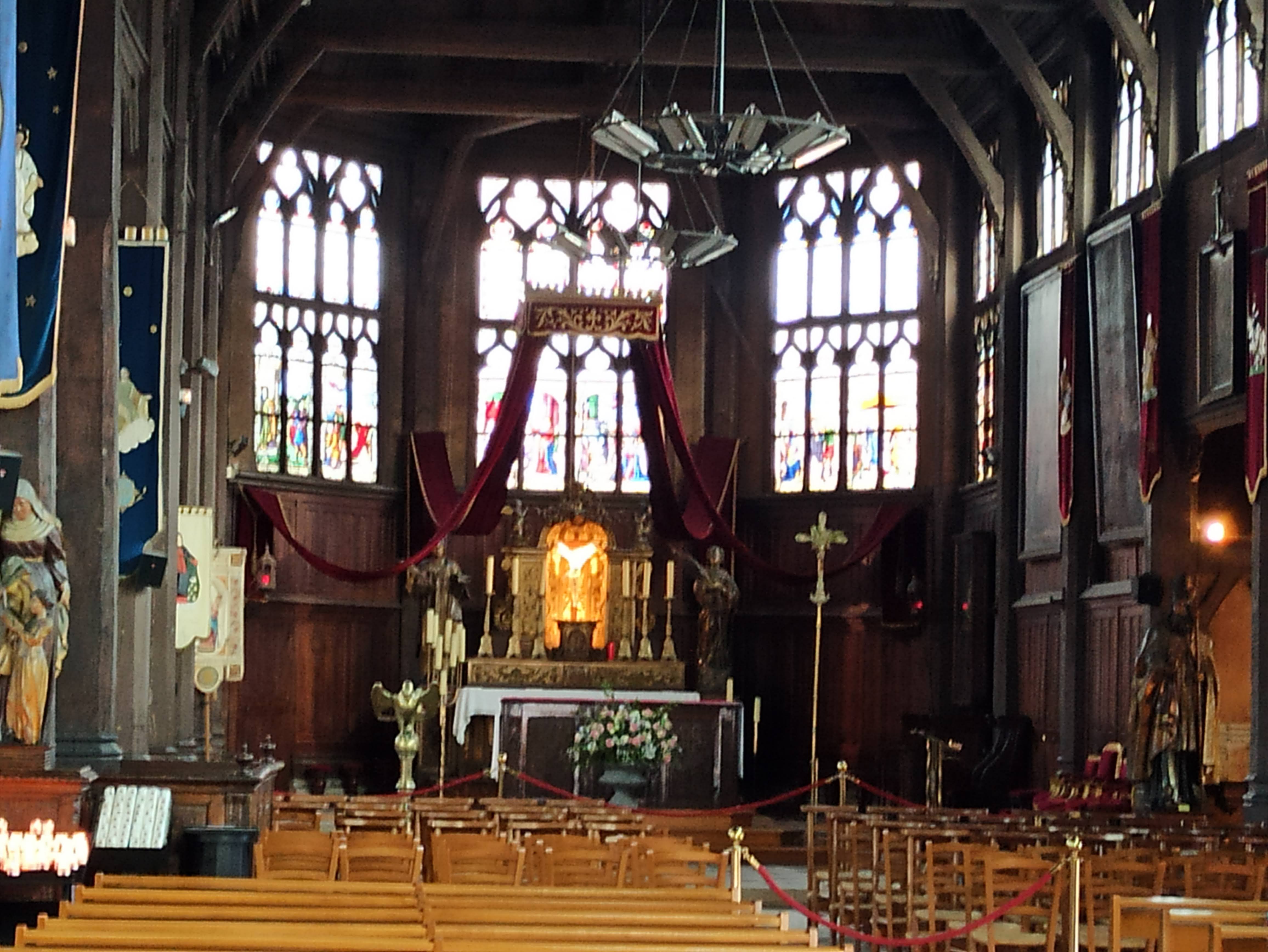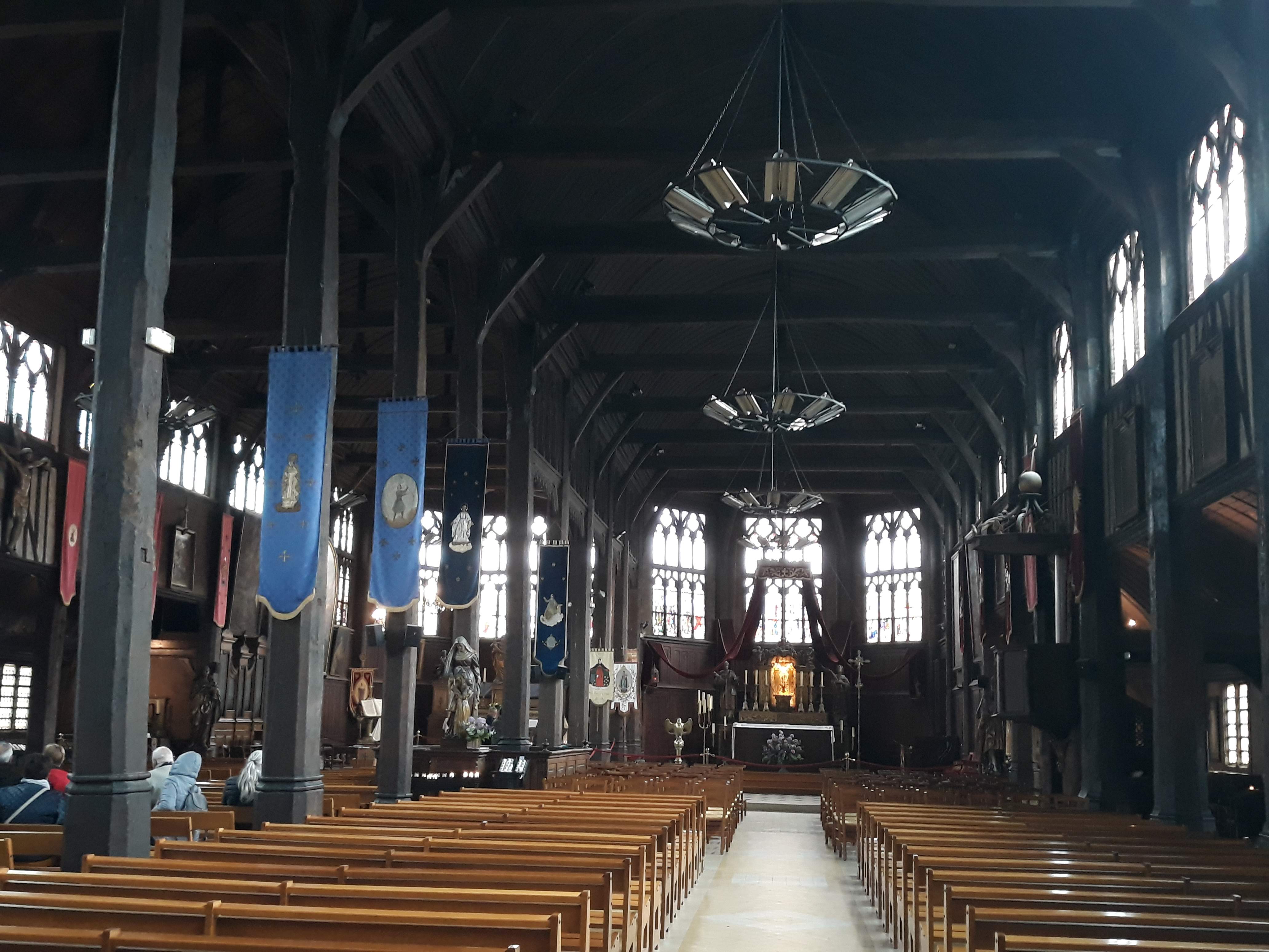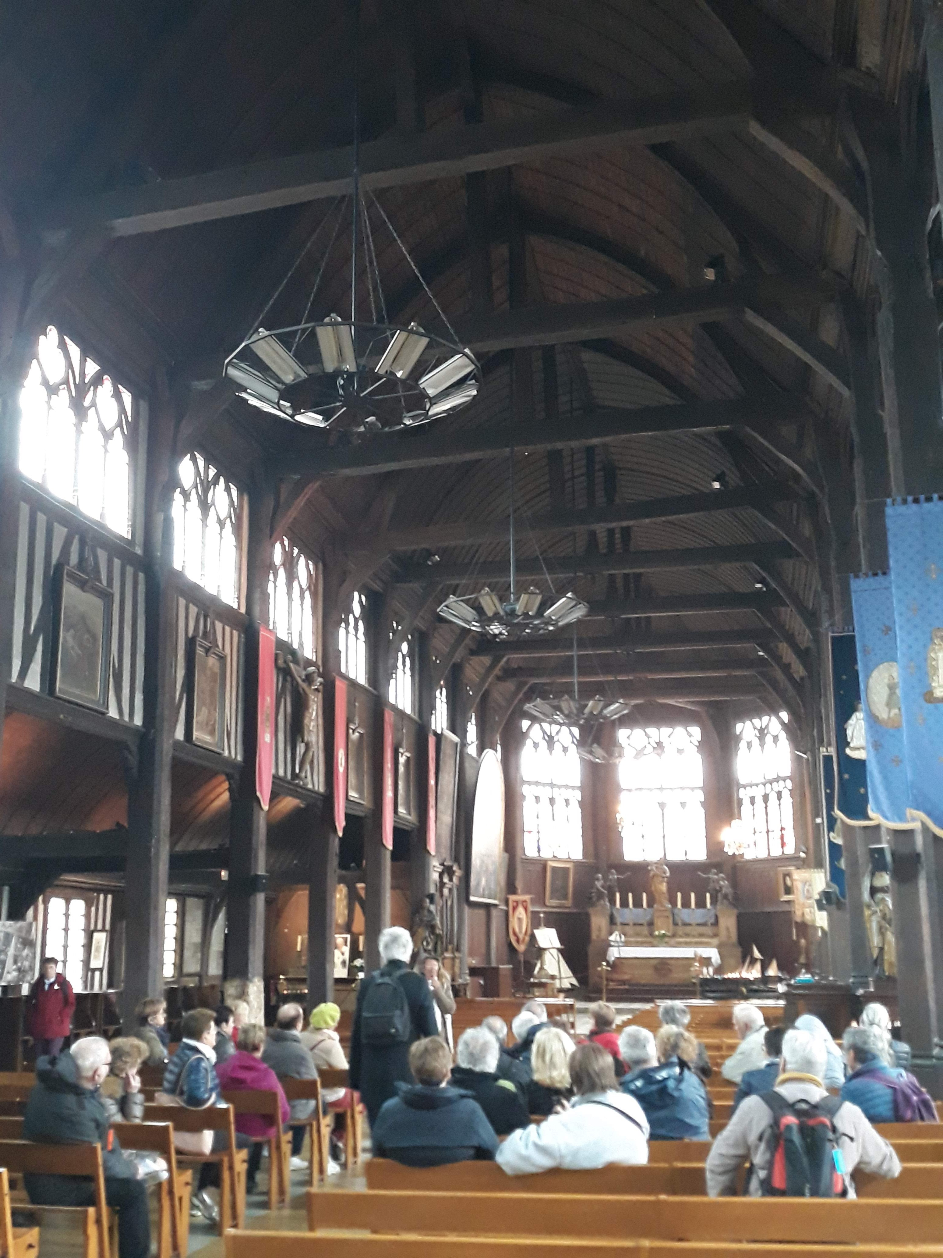Ce lieu est un incontournable d'Honfleur. Son clocher déporté en est la première curiosité. L'intérieur est spectaculaire. Posée sur des murets de silex, la charpente et l'ossature est entièrement réalisée en bois. Construite par des charpentiers de marine, la structure reprend celle d'un bateau retourné. Un lieu à découvrir dans le respect et la sérénité.