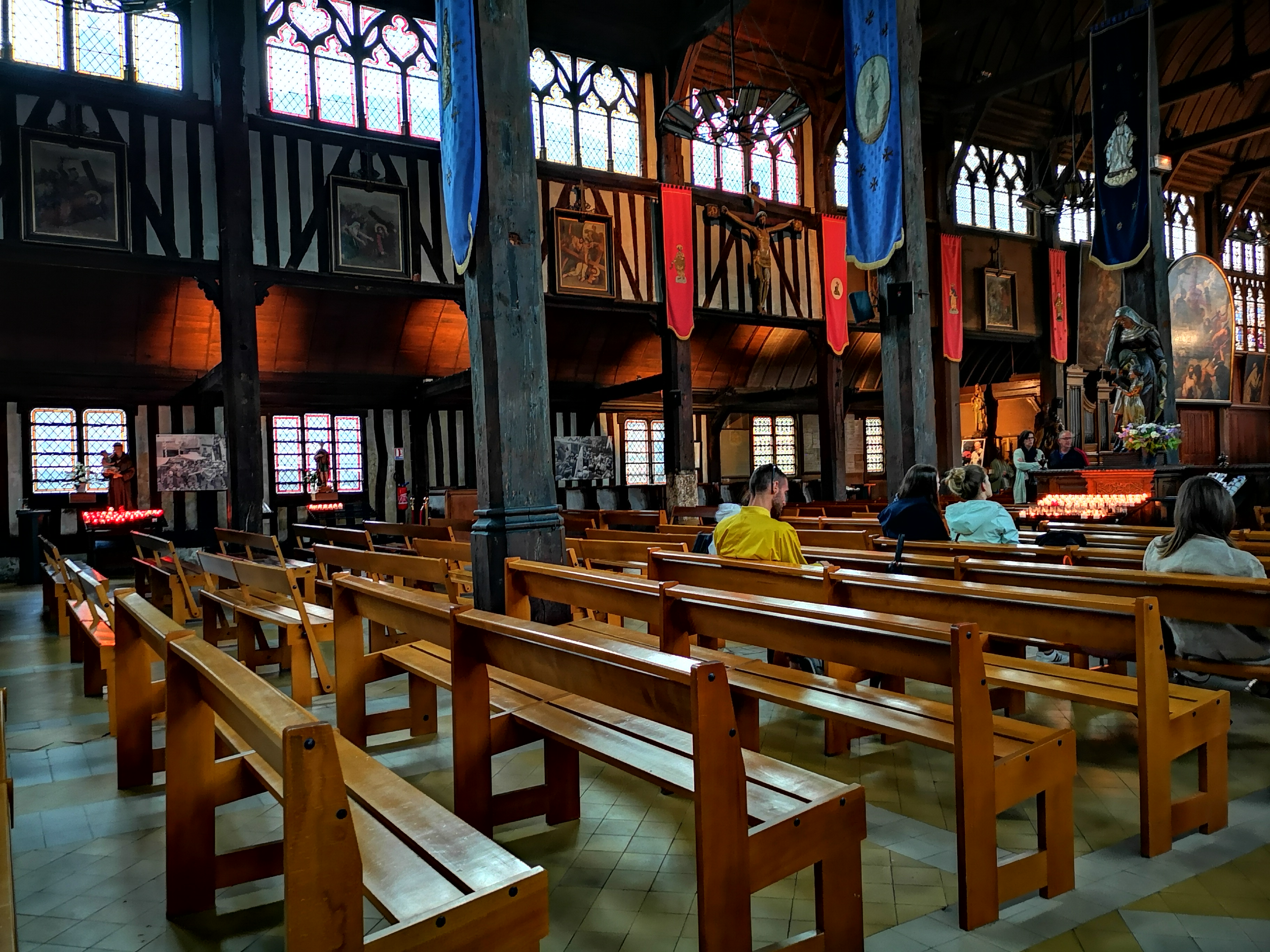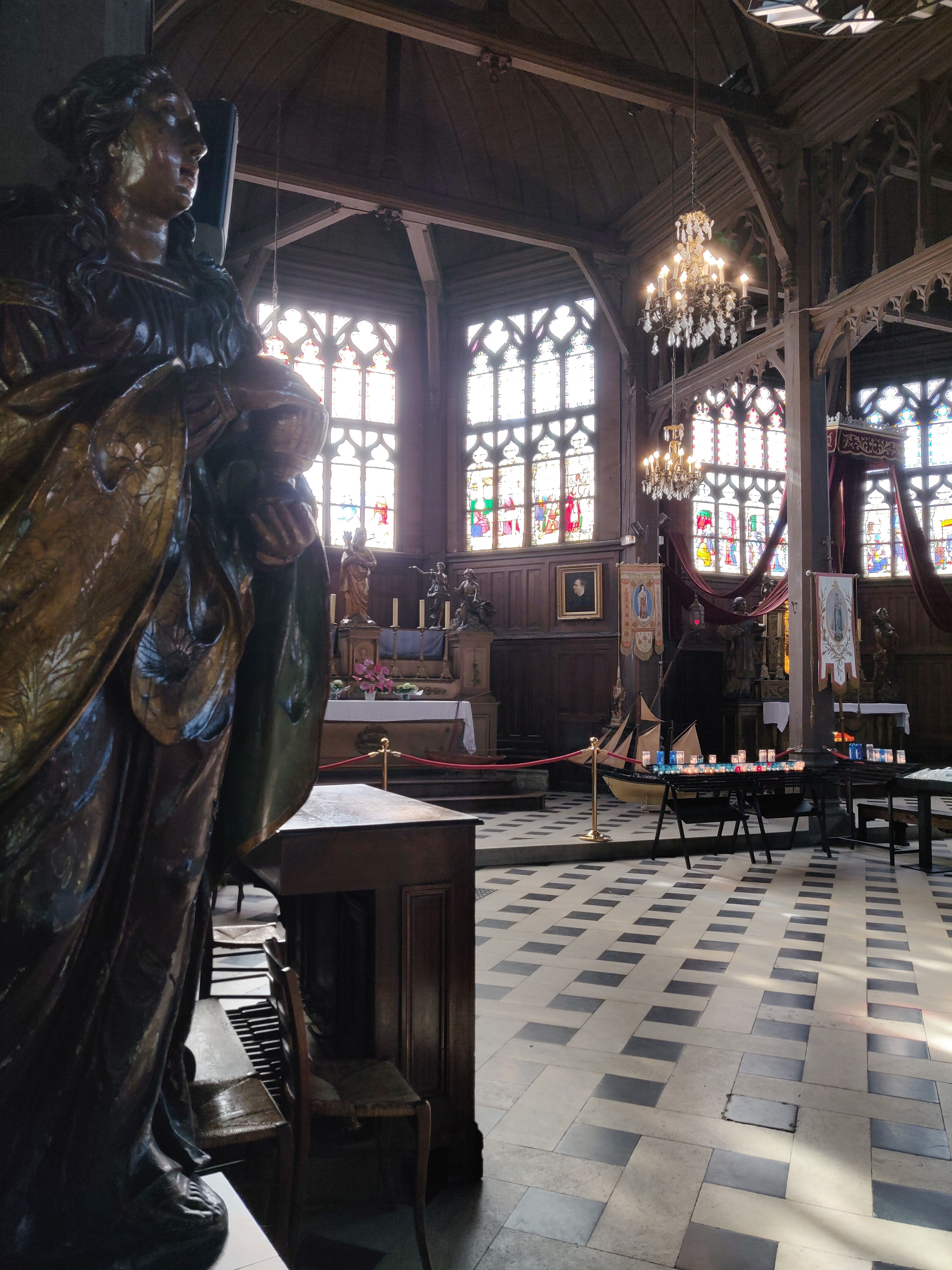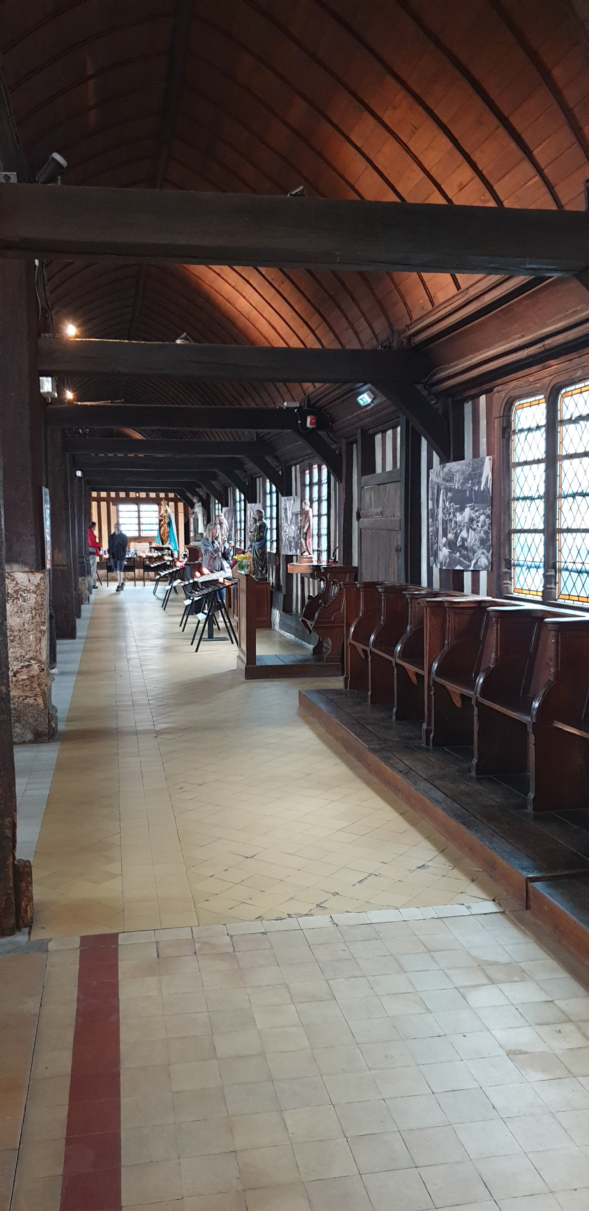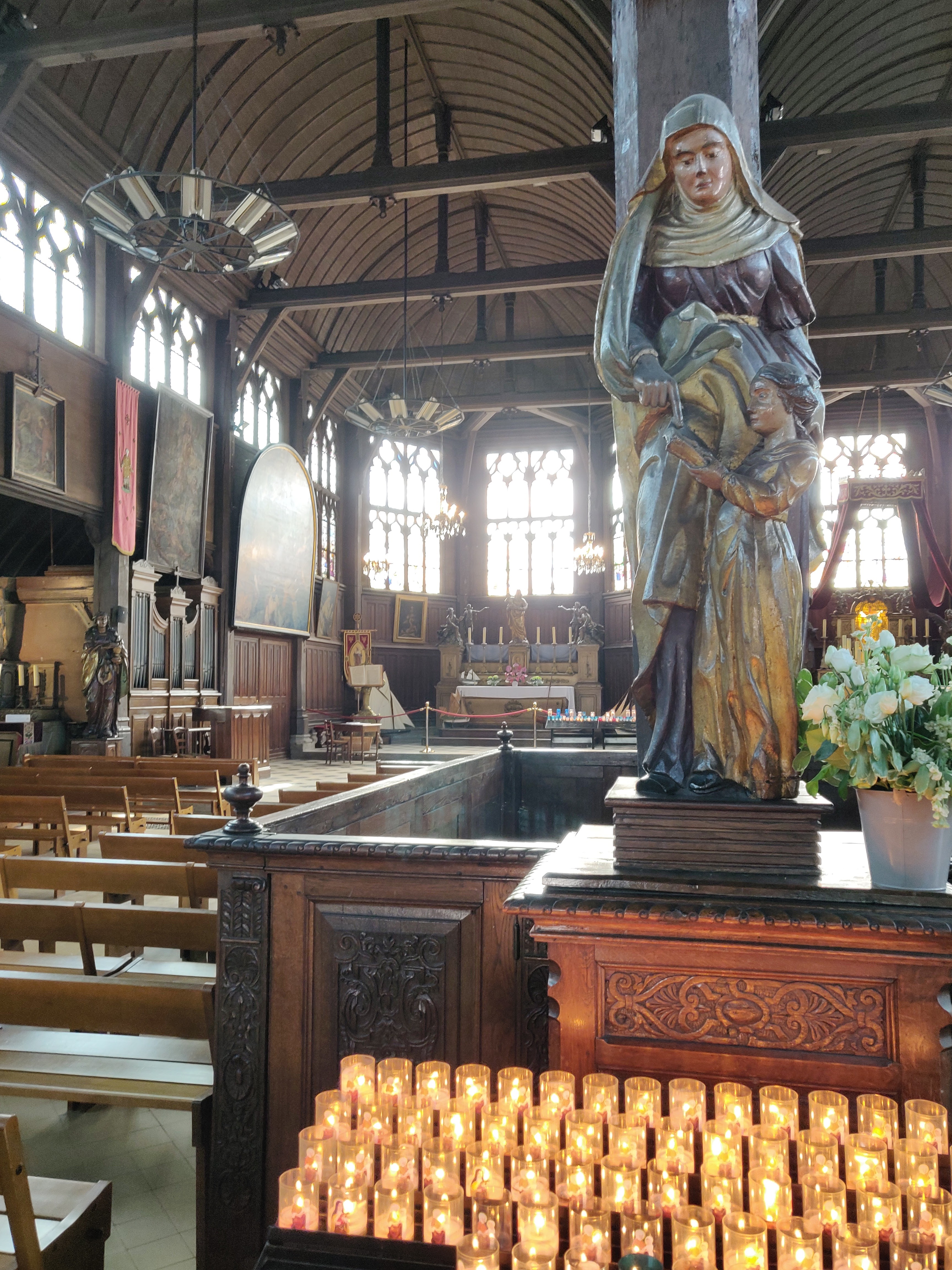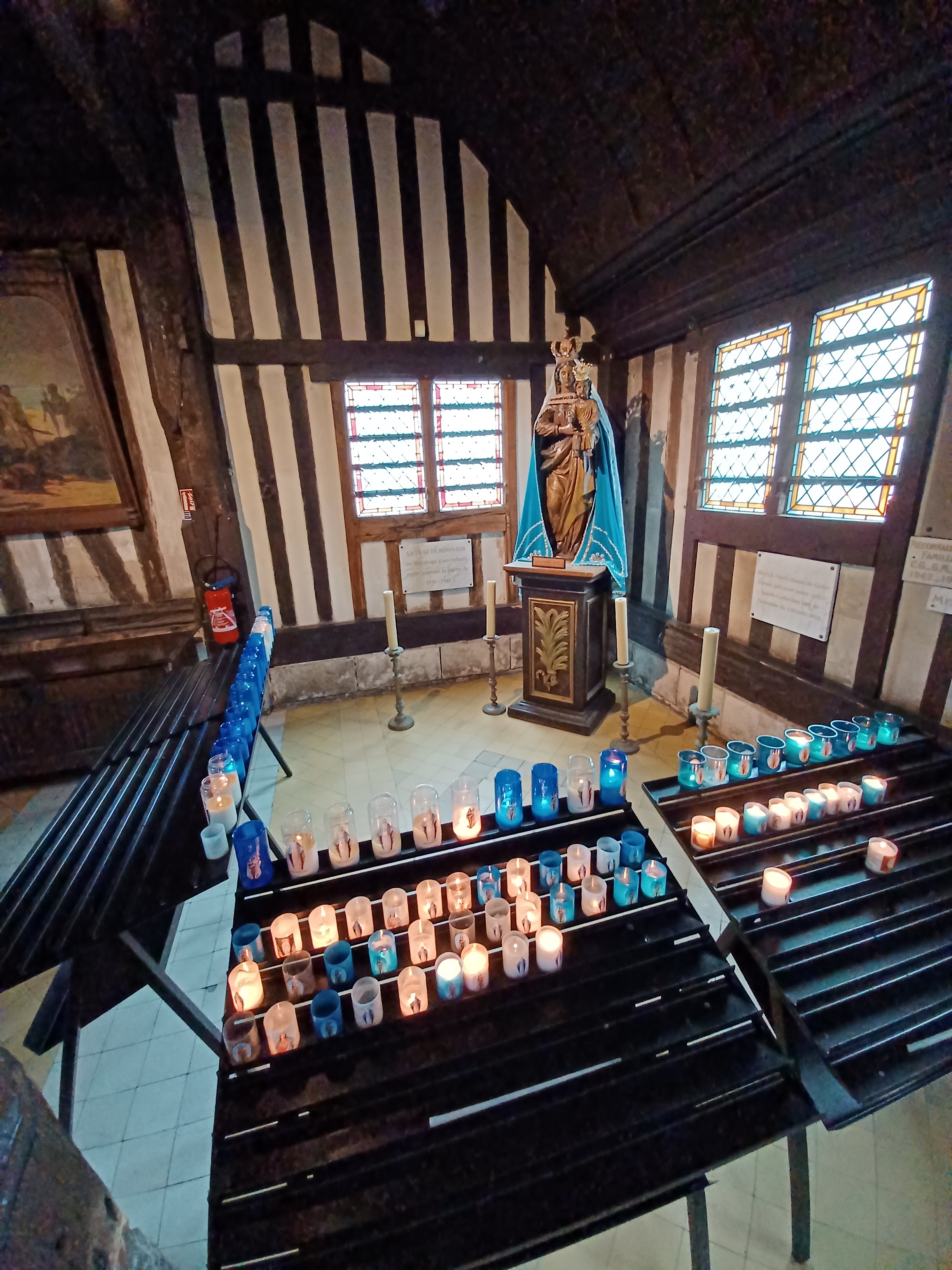 Mon Dieu quelle beauté d architecture,de spiritualité,j ai été soufflée par toute cette magnificence qui a été créer dans cet endroit c est la 1 ère fois que je vois autant de représentations en bois de saints et saintes ainsi que de merveilleux tableaux en chemins de croix.enfin je ne peux tout décrire juste n hésitez pas c est absolument incontournable à Honfleur prendre la beauté de notre patrimoine là où il existe encore.