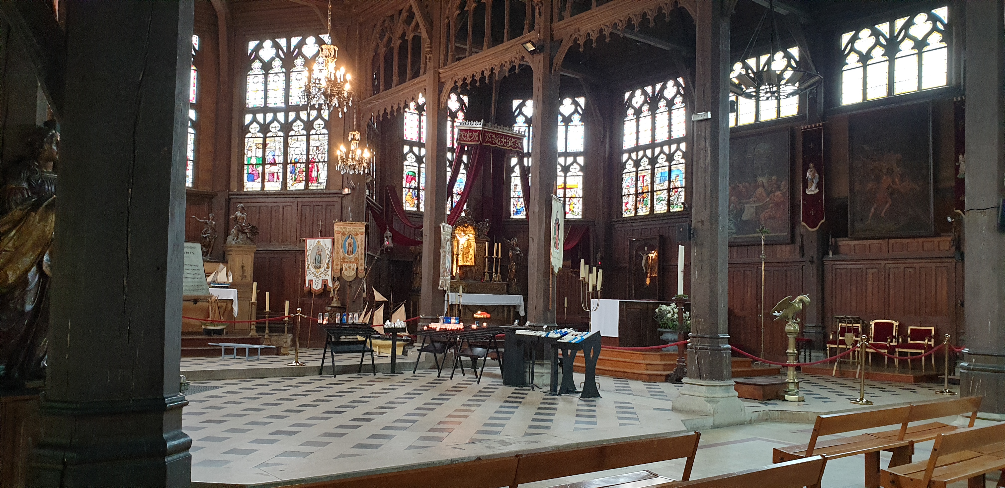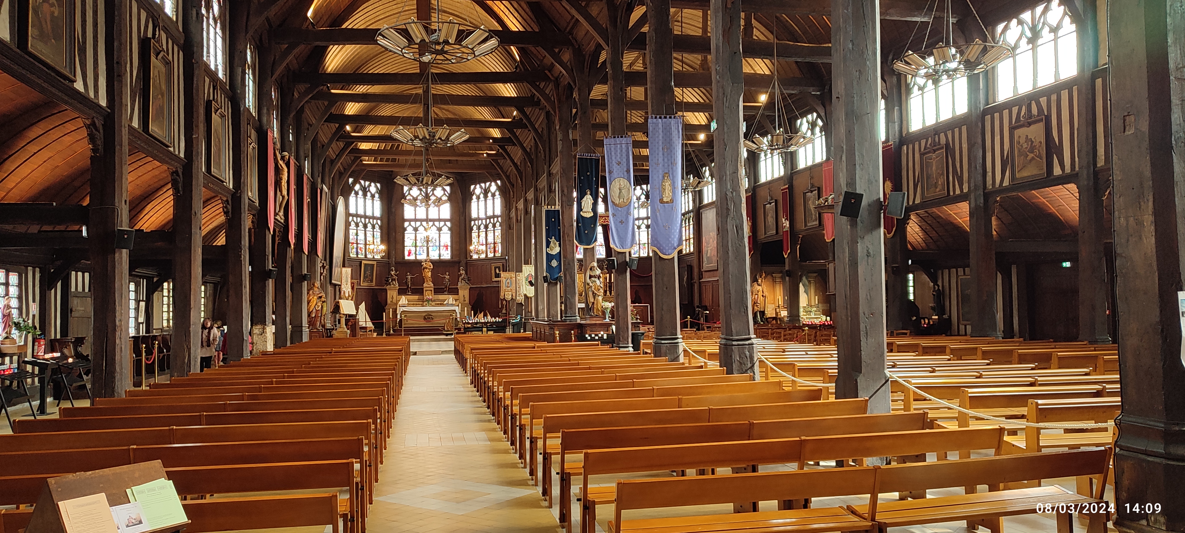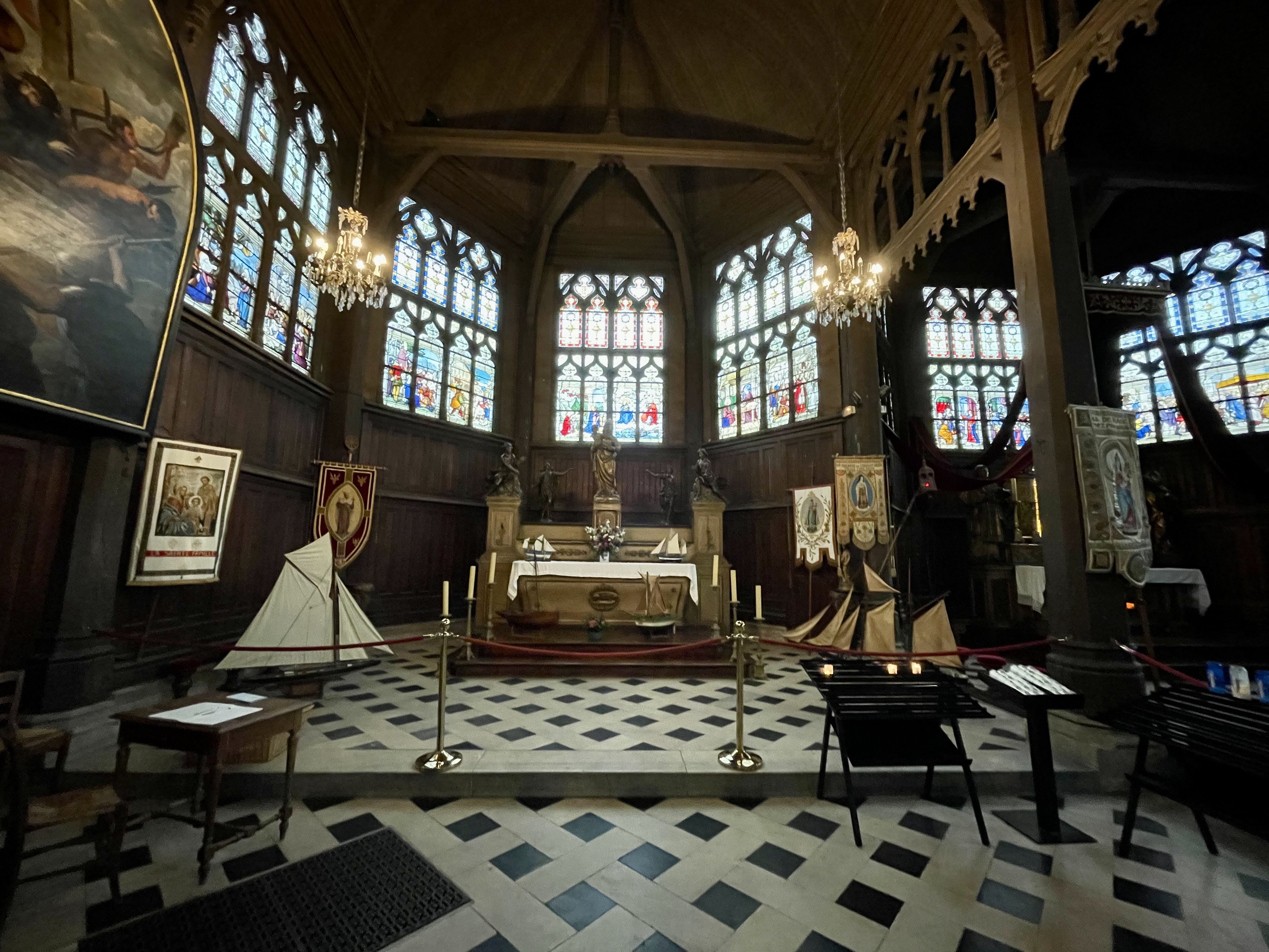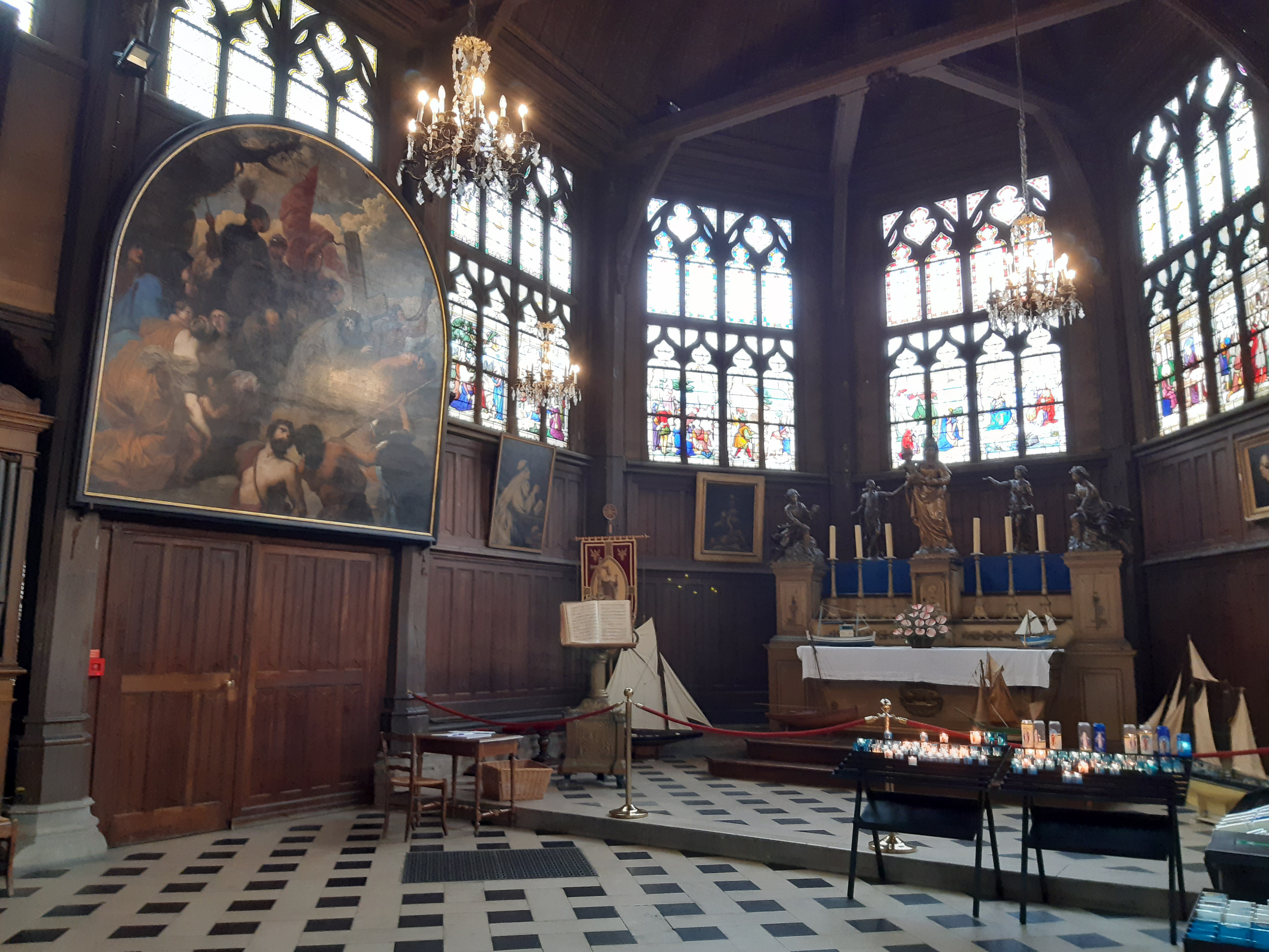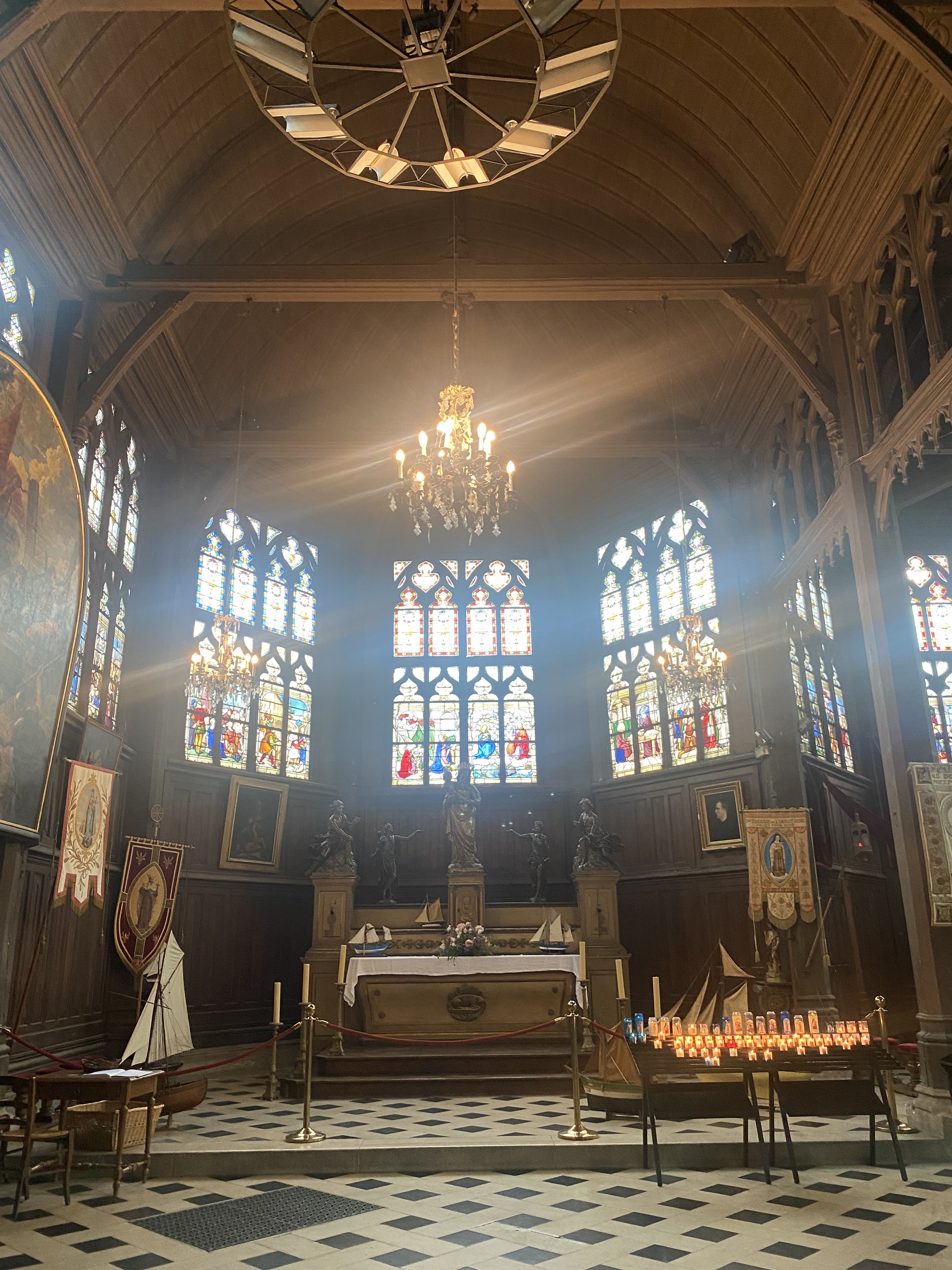 Mon Dieu quelle beauté d architecture,de spiritualité,j ai été soufflée par toute cette magnificence qui a été créer dans cet endroit c est la 1 ère fois que je vois autant de représentations en bois de saints et saintes ainsi que de merveilleux tableaux en chemins de croix.enfin je ne peux tout décrire juste n hésitez pas c est absolument incontournable à Honfleur prendre la beauté de notre patrimoine là où il existe encore.