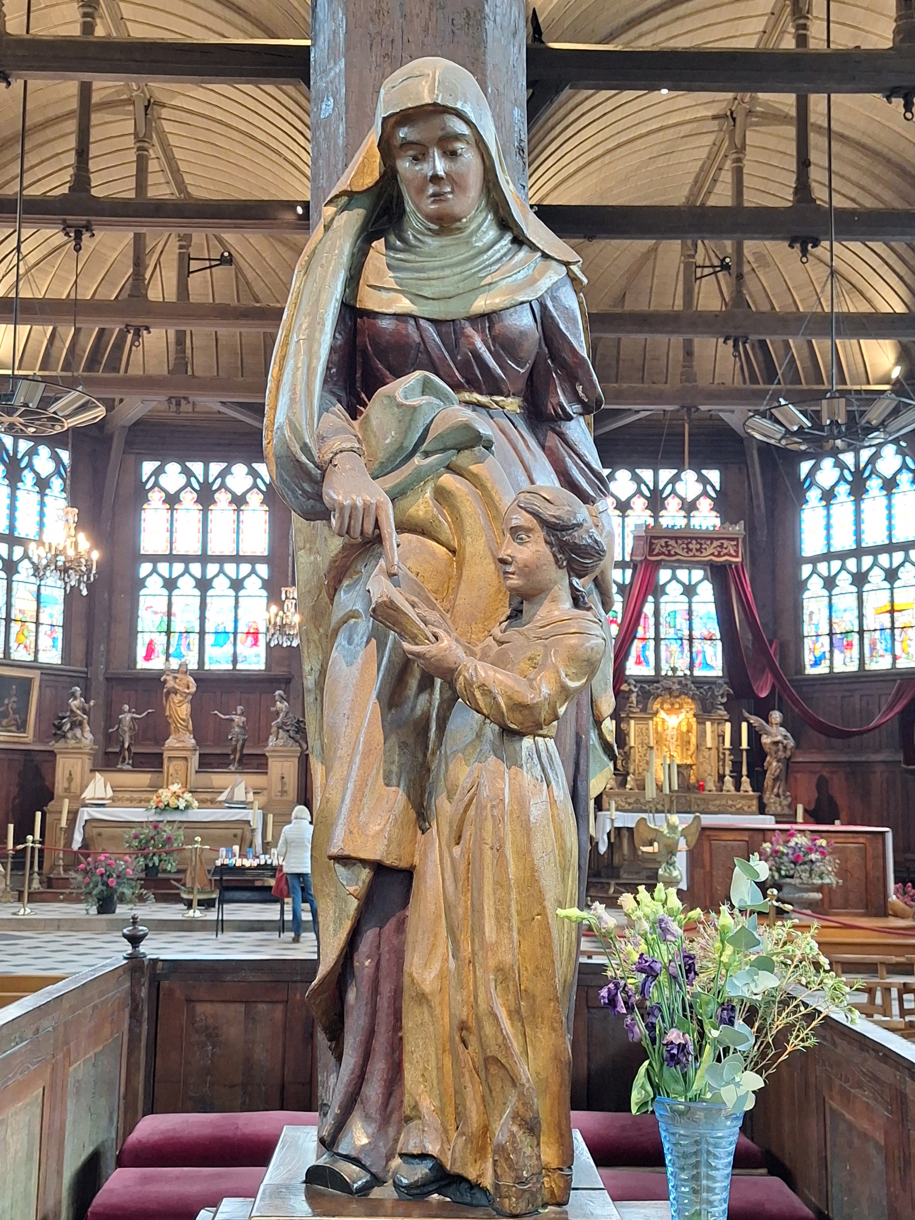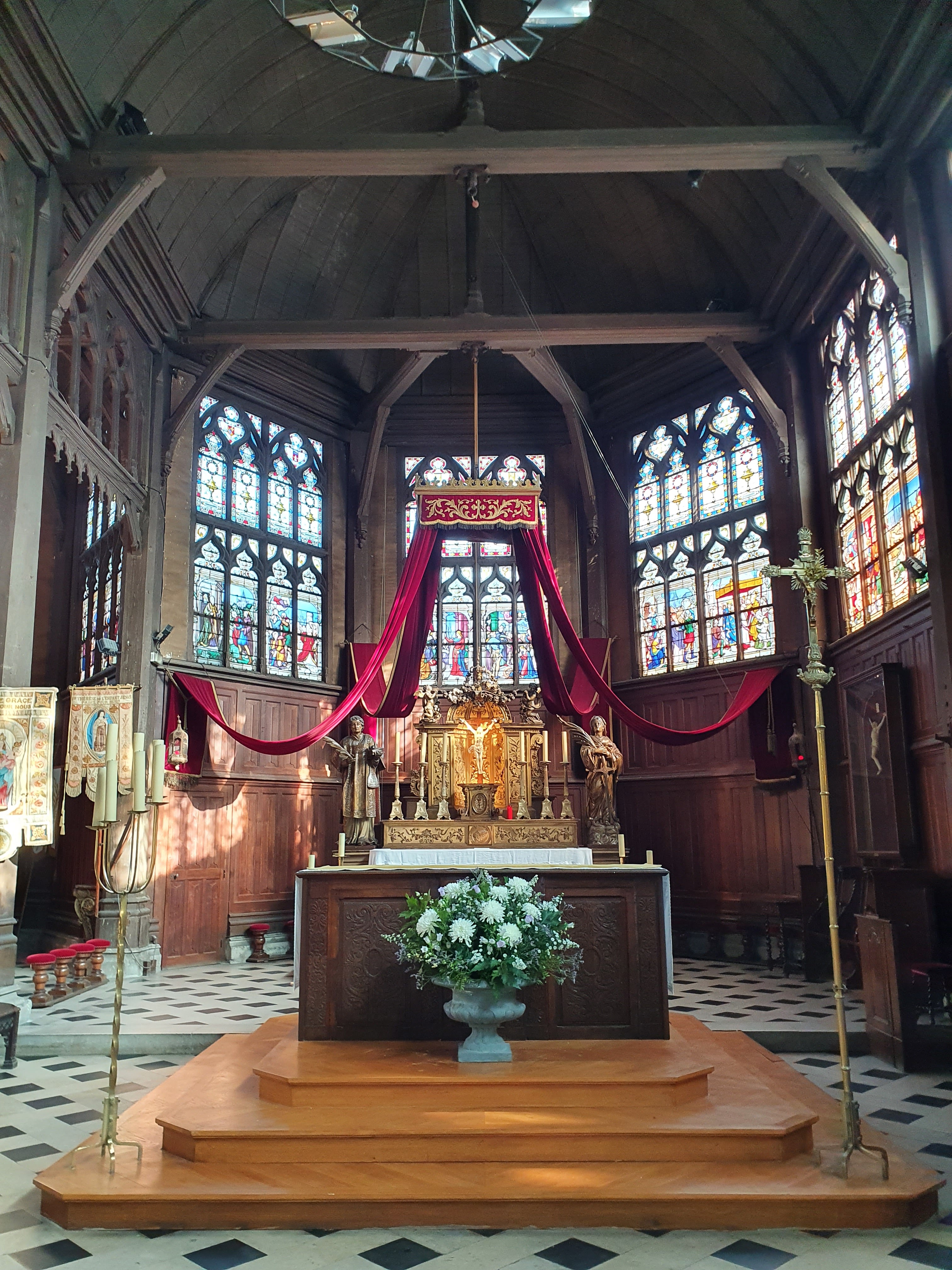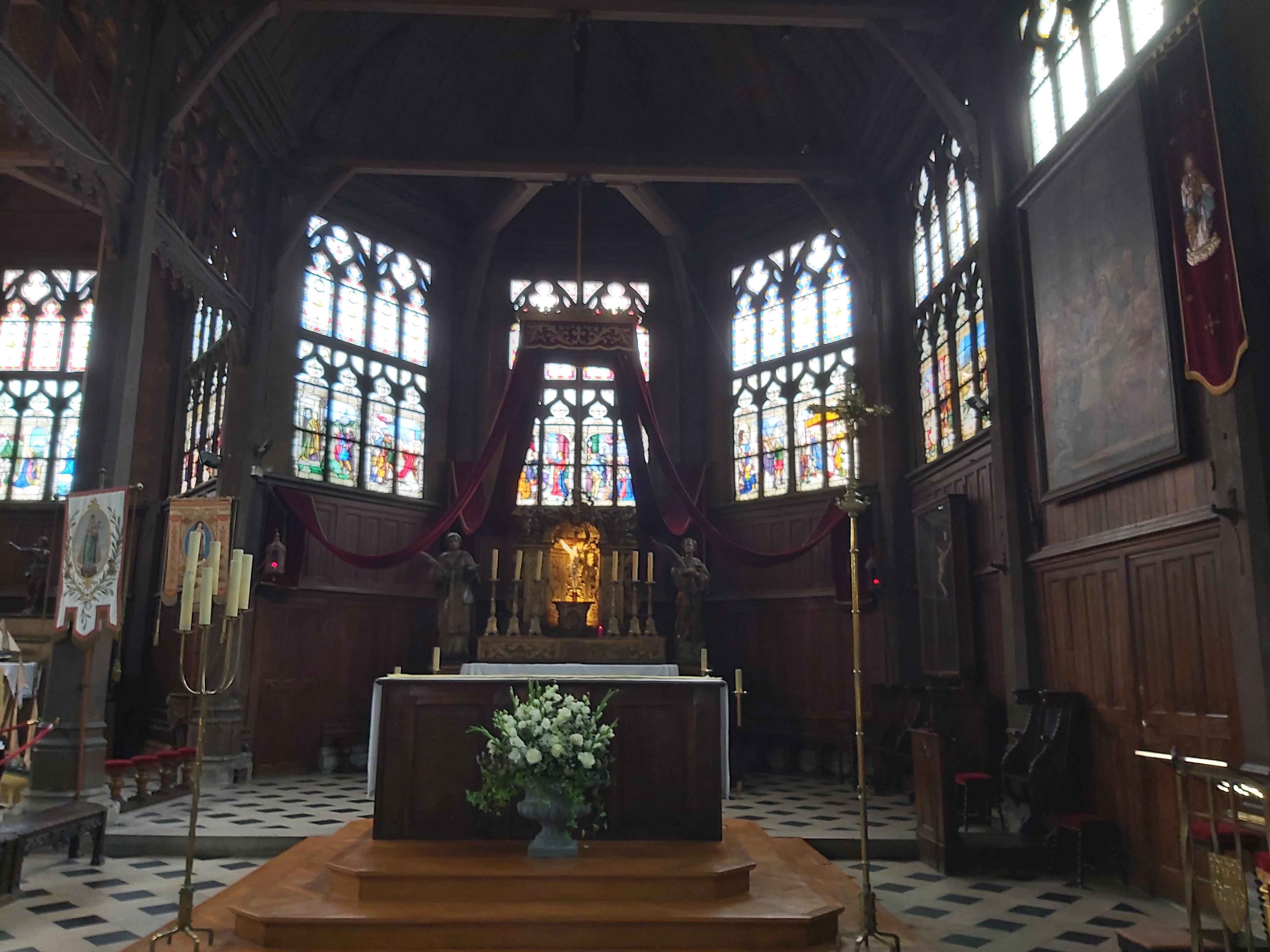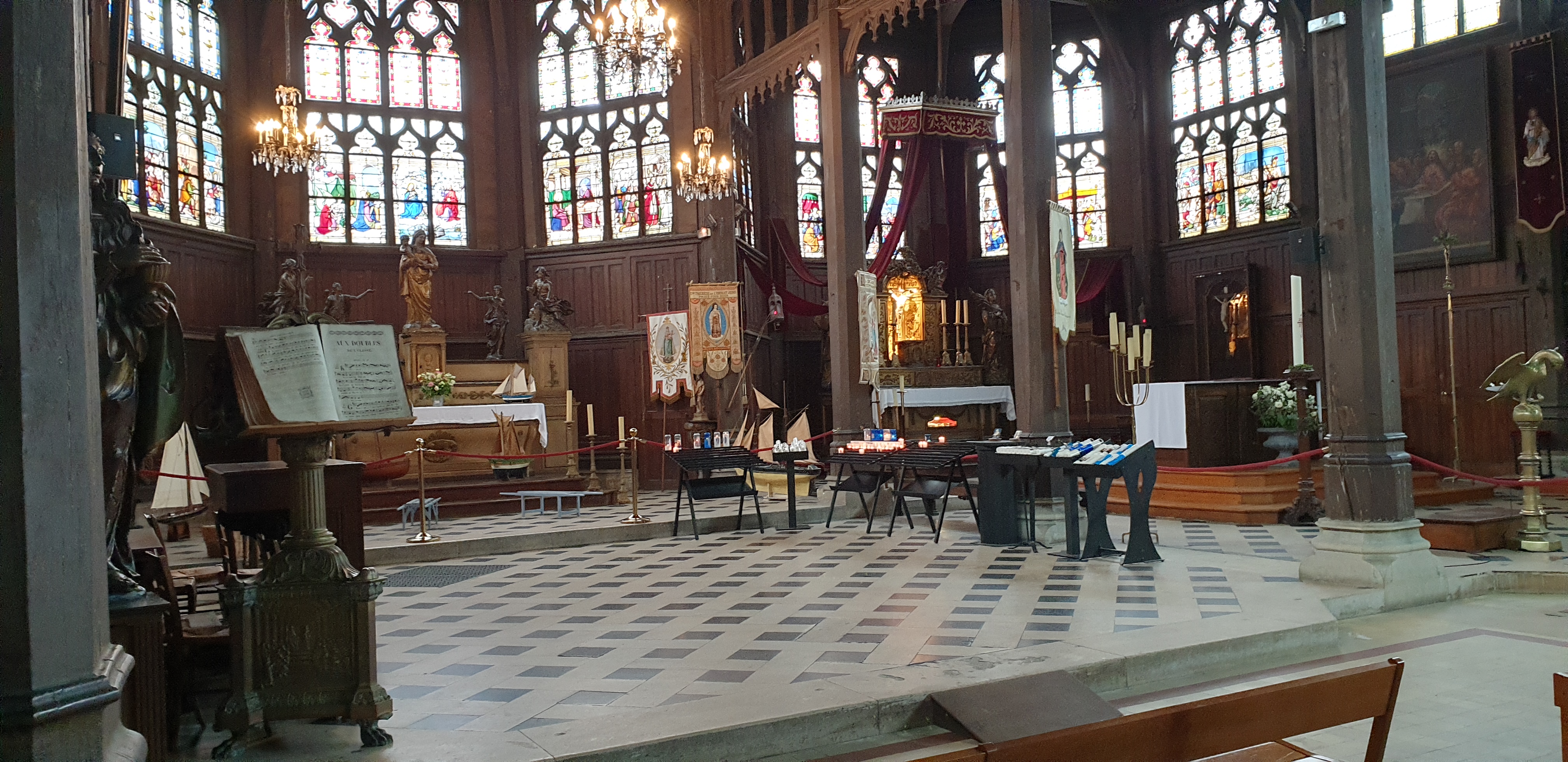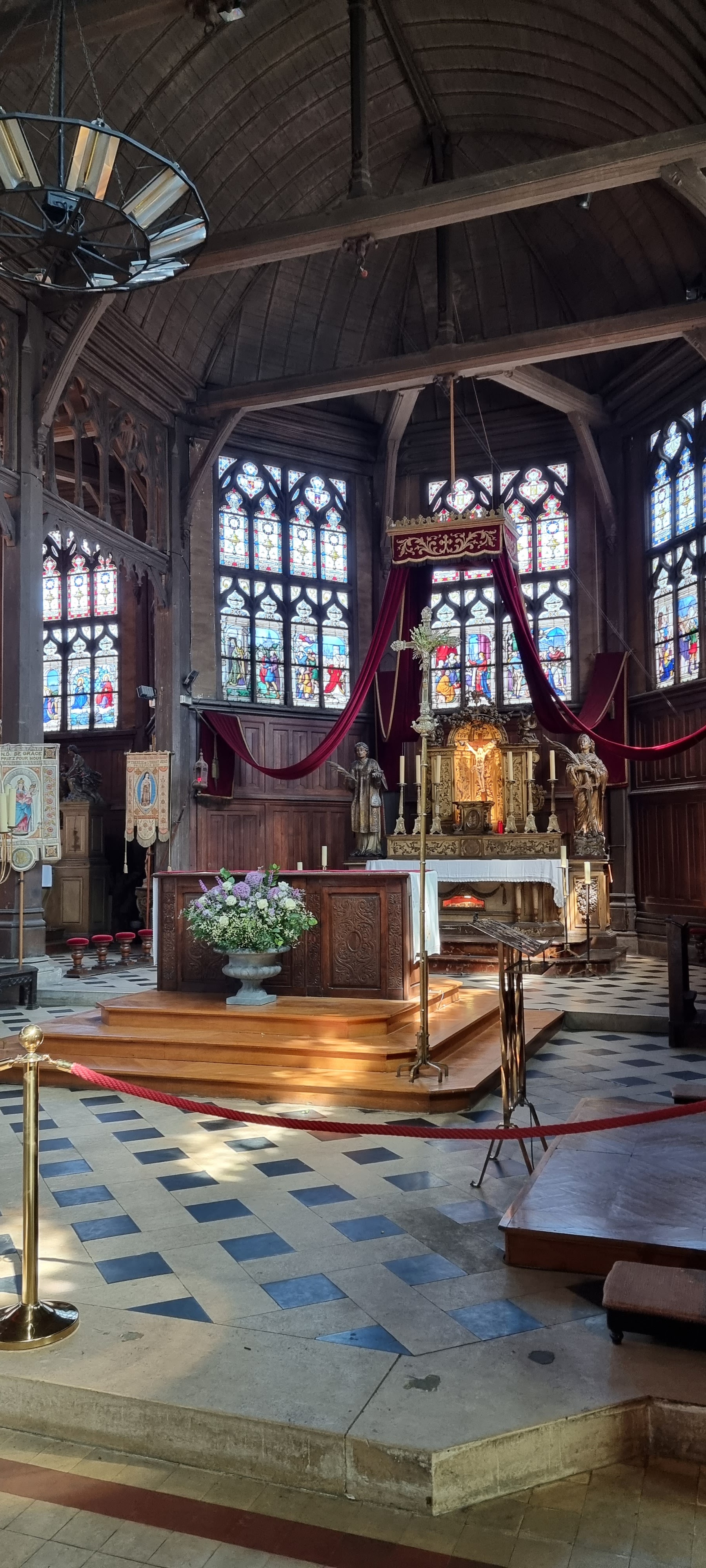 Mon Dieu quelle beauté d architecture,de spiritualité,j ai été soufflée par toute cette magnificence qui a été créer dans cet endroit c est la 1 ère fois que je vois autant de représentations en bois de saints et saintes ainsi que de merveilleux tableaux en chemins de croix.enfin je ne peux tout décrire juste n hésitez pas c est absolument incontournable à Honfleur prendre la beauté de notre patrimoine là où il existe encore.