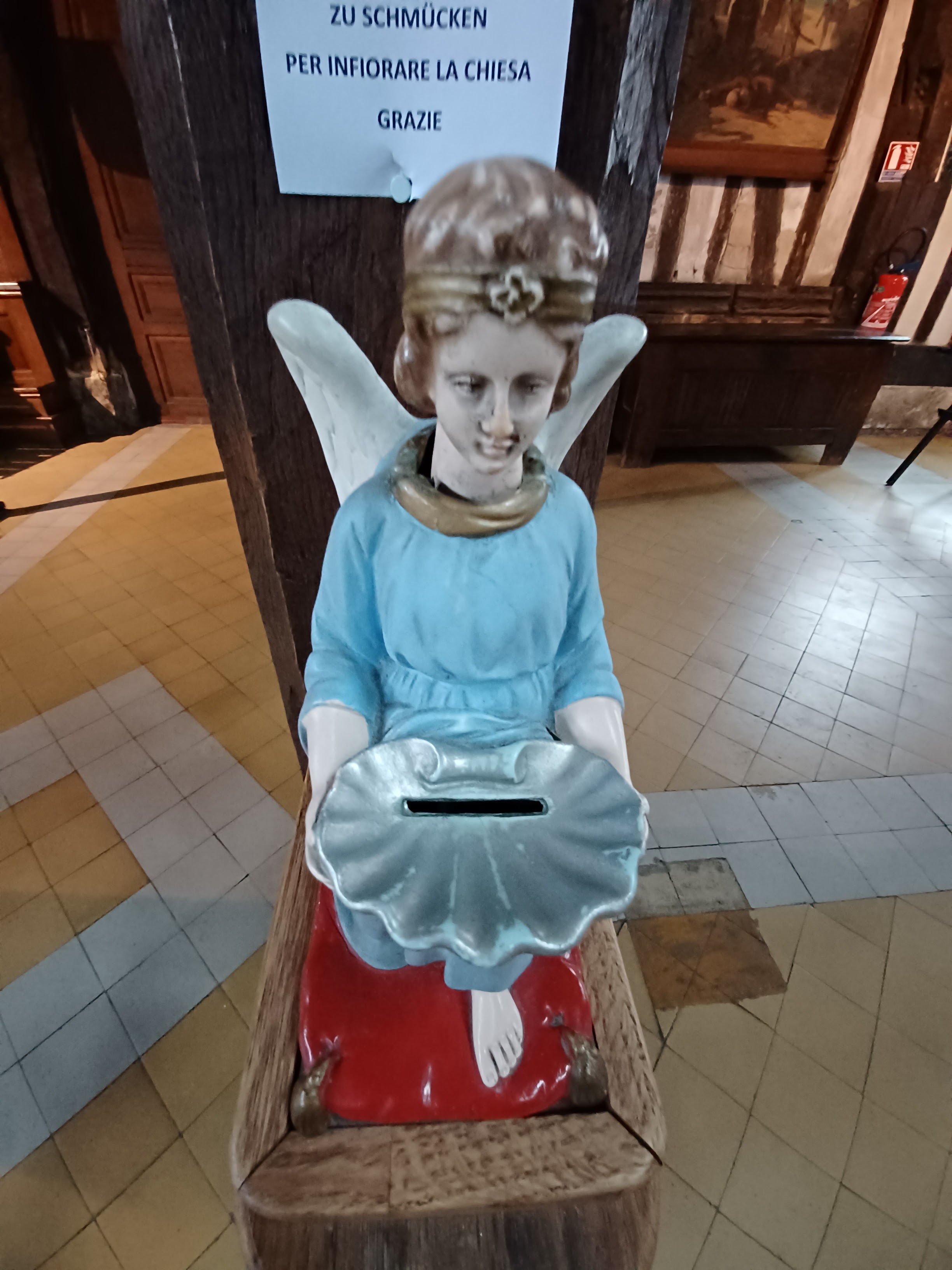 C'est une église étonnante qui merrite bien votre visite où vous serez étonnés toute en bois, son clocher construit à part pour des risques d'incendie éventuels, afin de protéger le fidèles. Dommage pour faire de belles photos, ils installaient les structures pour les marchés.. beaucoup de monde, aussi à l'intérieur pas facile nonplus pour les photos ! Et se recueillir dans le silence, il y a différentes bougies de plusieurs Saintes & Saints, et des cierges également, c'est mieux que d'autres églises qui ne peuvent pas en mettre de 'trop' voir pas du tout car ils se font voler !!! Surtout ne manquez pas cette très jolie Église.
