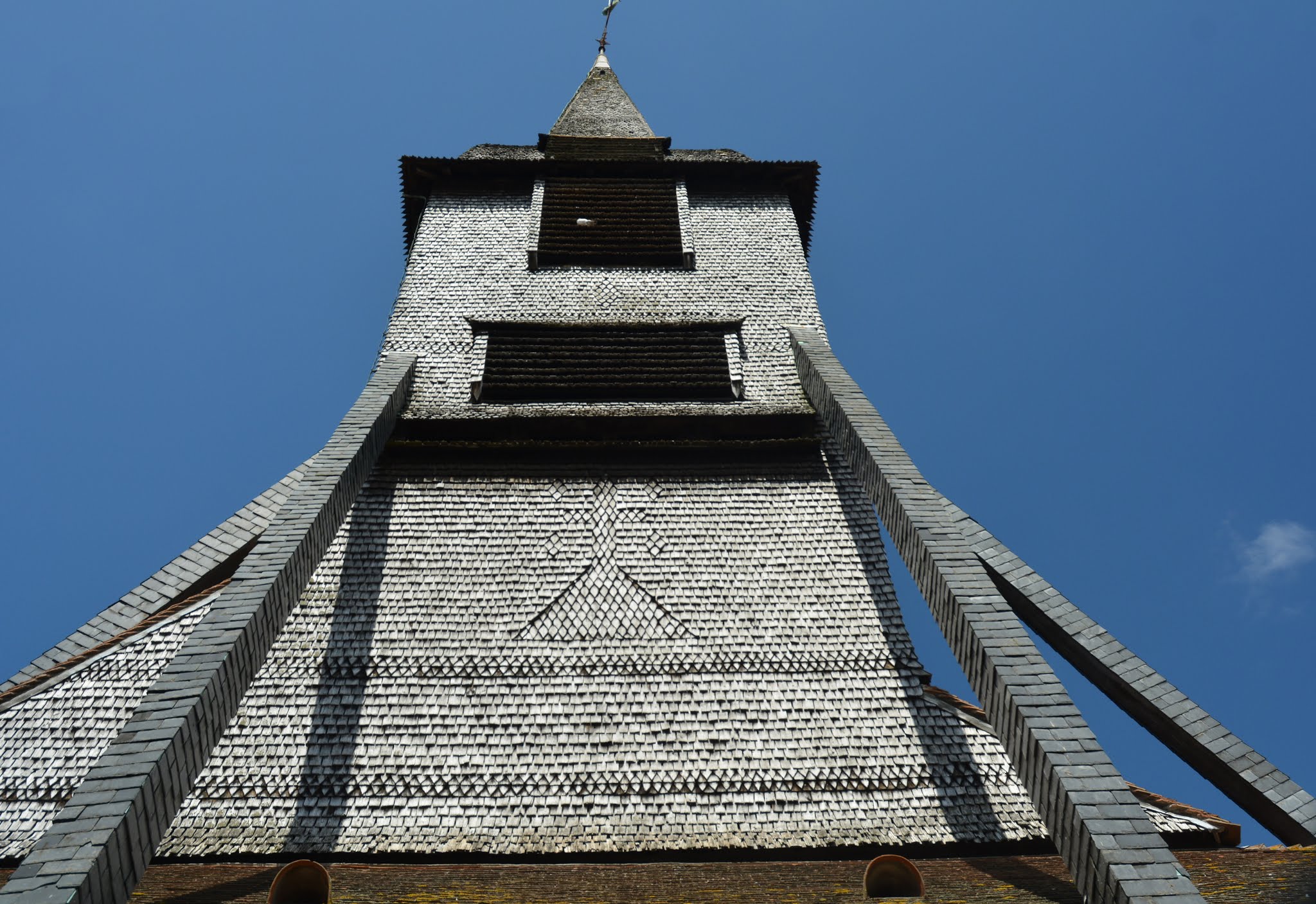 ❝ Plus grande église en bois de France, construite au XVe siècle, recouverte de bardeaux en bois de châtaignier. ❞