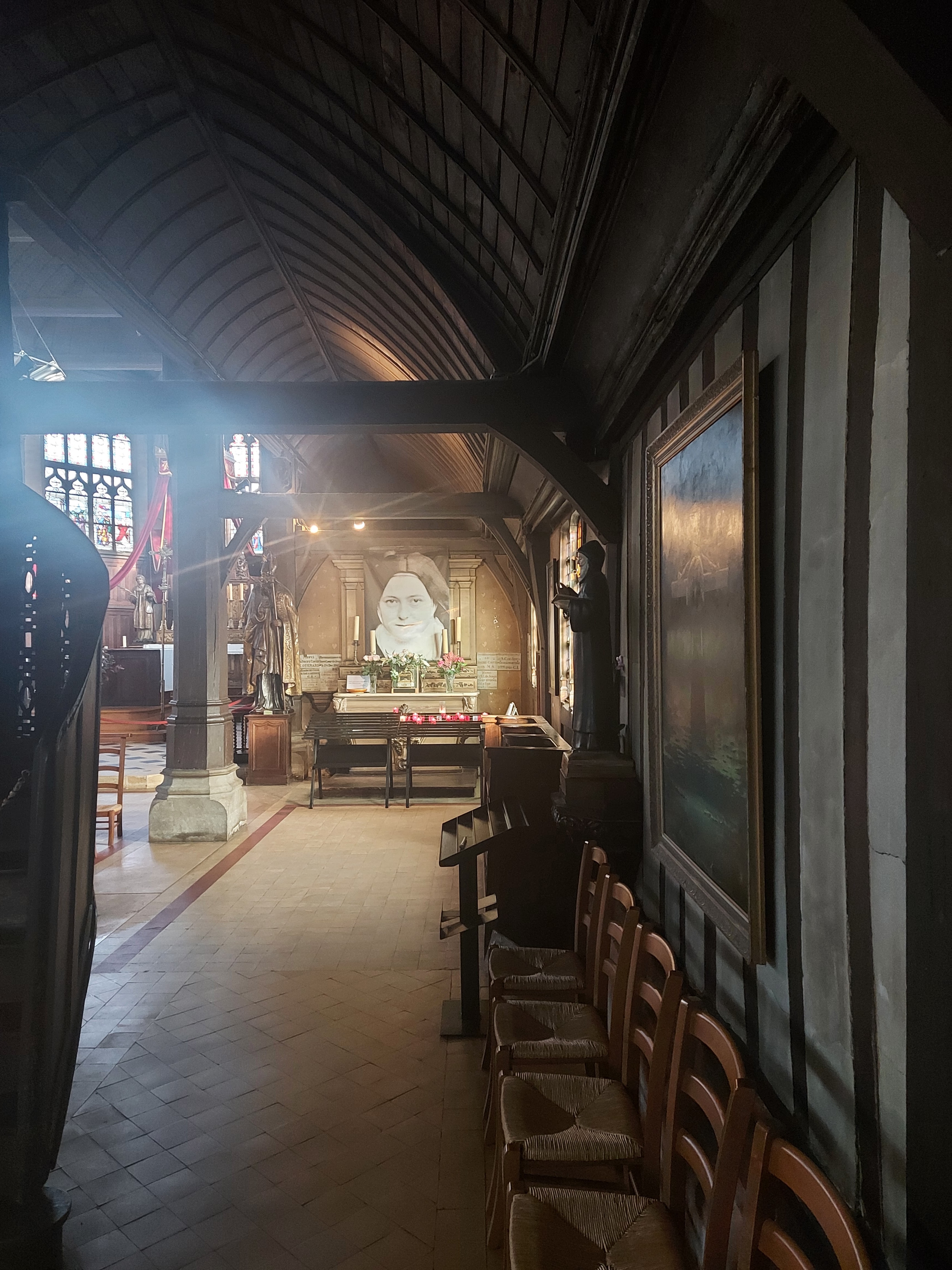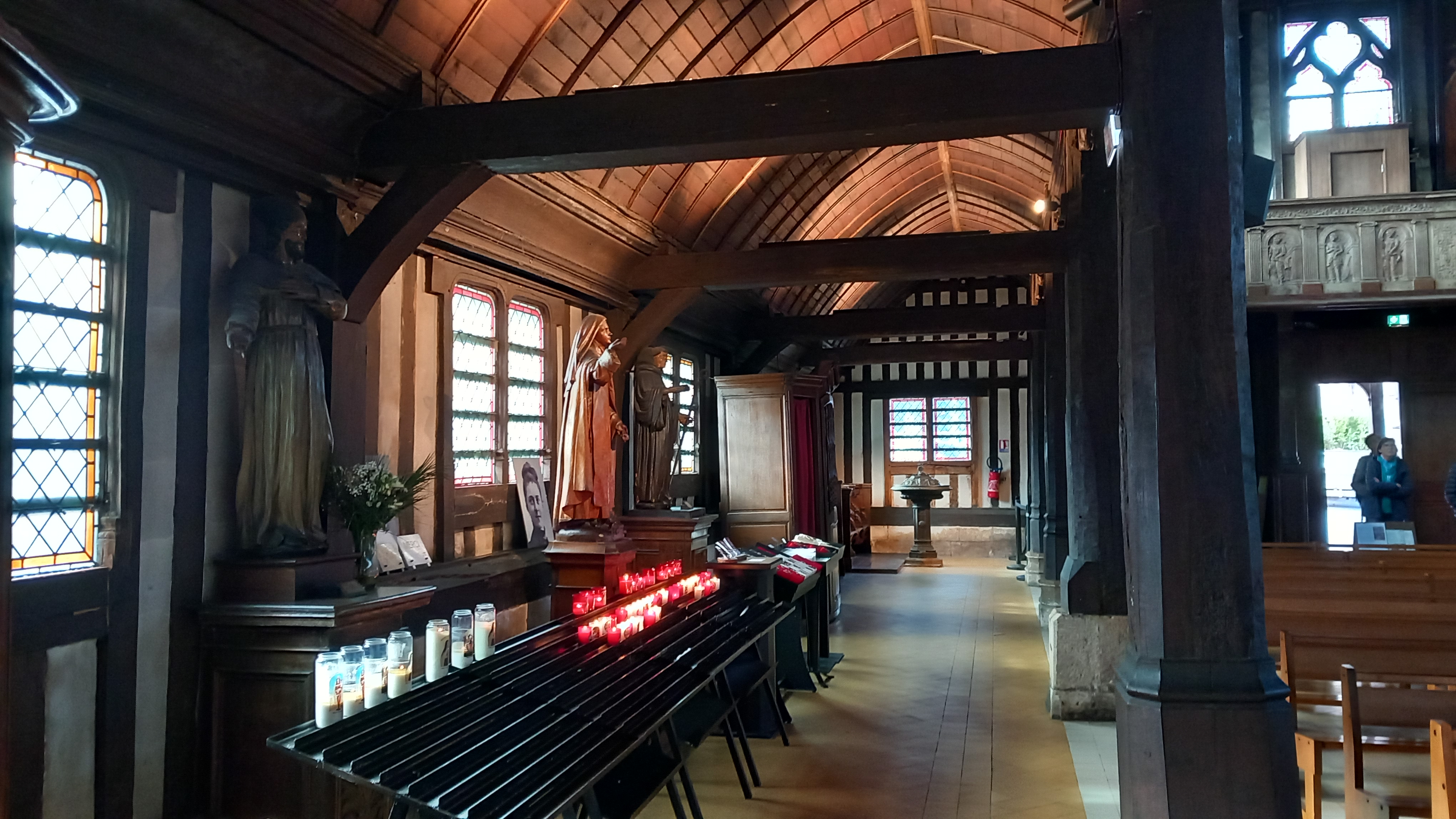 Visite de cette belle église qui possède de beaux vitraux et de très jolies statues. Un tableau de Sainte-Thérèse de Lisieux et son regard bienveillant. À voir si vous passez par Honfleur.