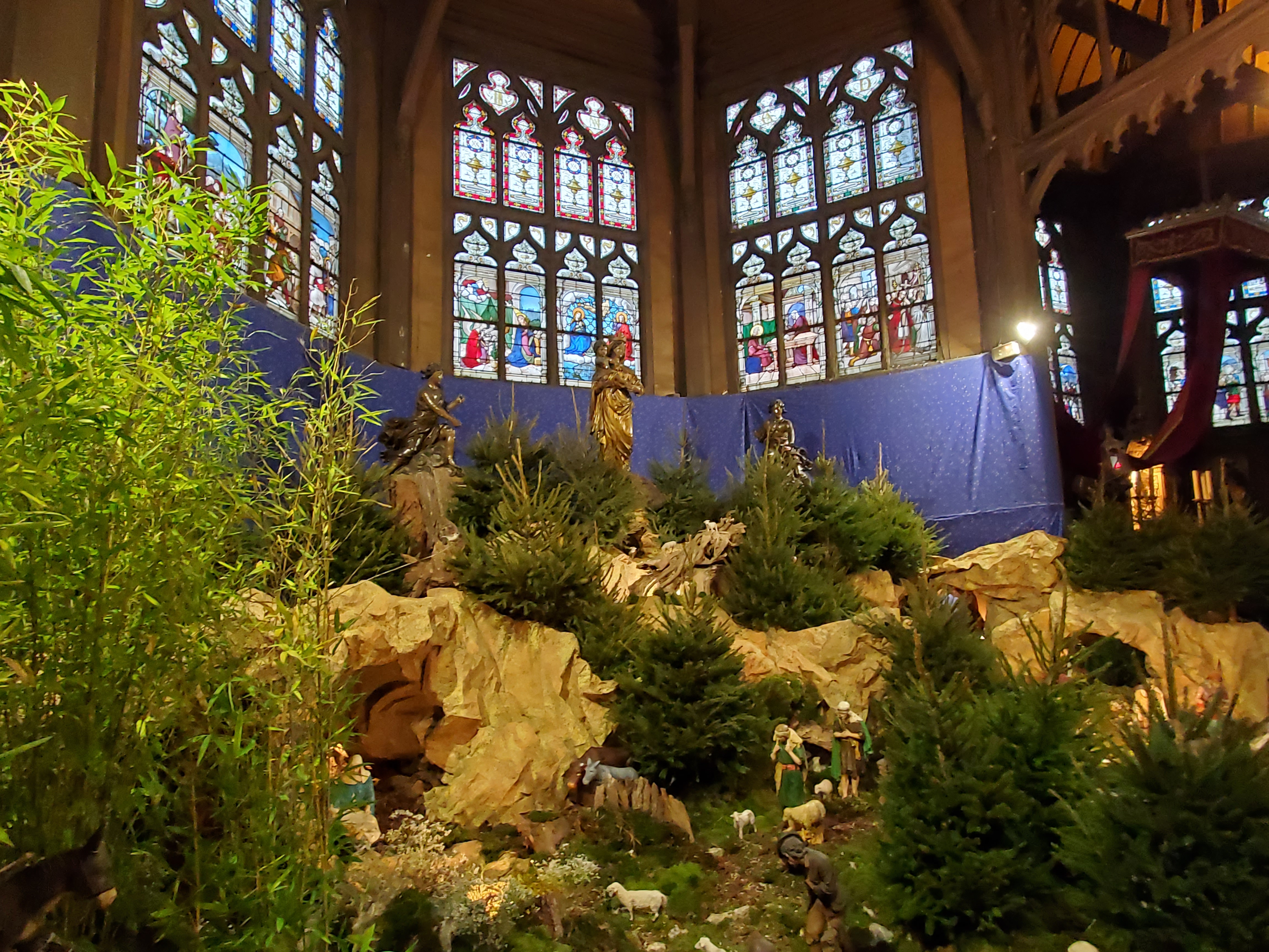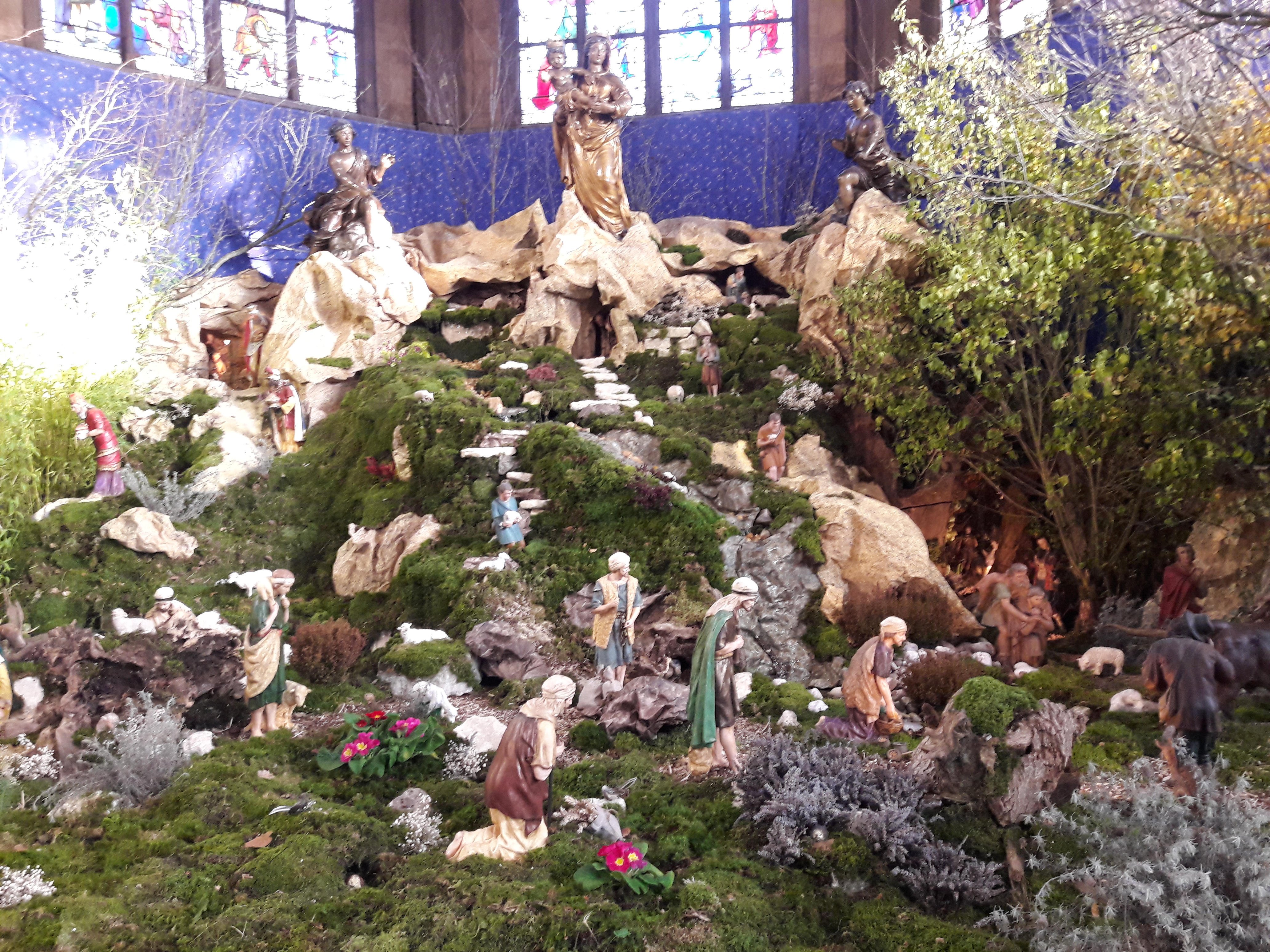 Après avoir visité l'église, n'oubliez pas de découvrir la superbe crèche installée tout le mois de décembre. Rarement je n'en ai vu une si belle. Pratiquement en 3 dimensions puisque le décor amène à un autre décor. Certainement des heures de travail. Croyants ou pas le plaisir des yeux est garanti.