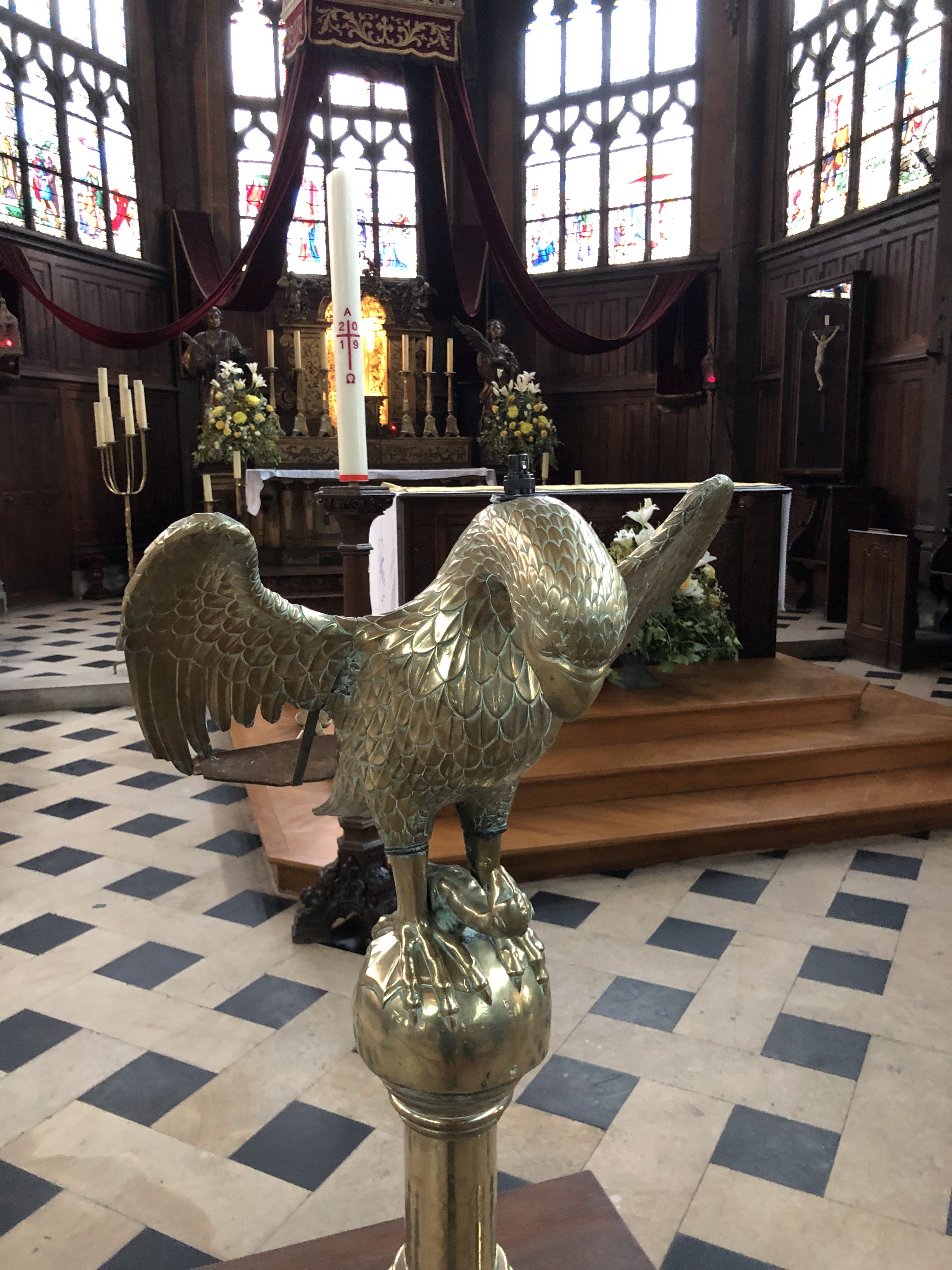 Magnifique église, les vitraux et surtout l'atmrchitecture faisant penser a la coque d'un navire c'était beau
