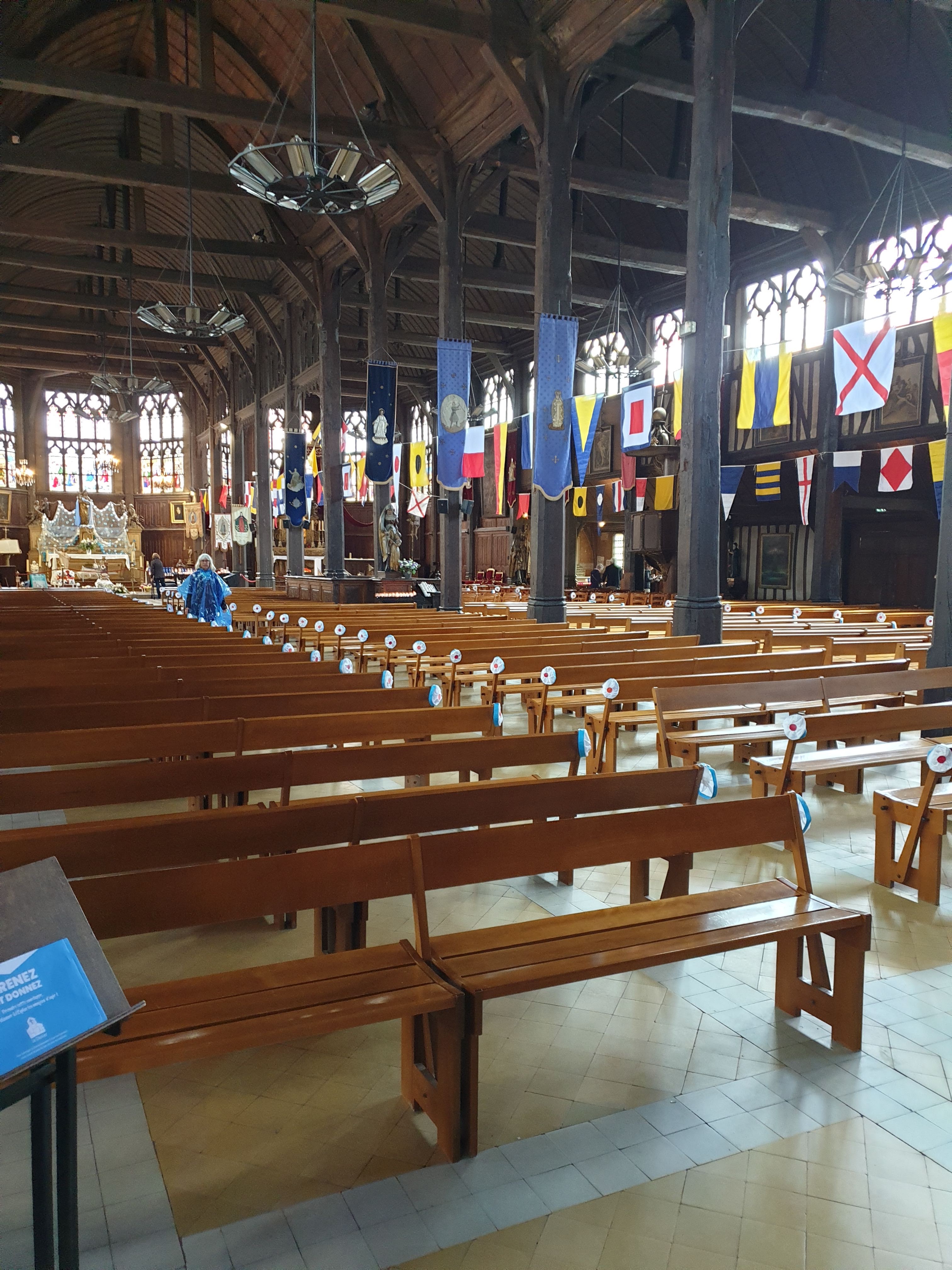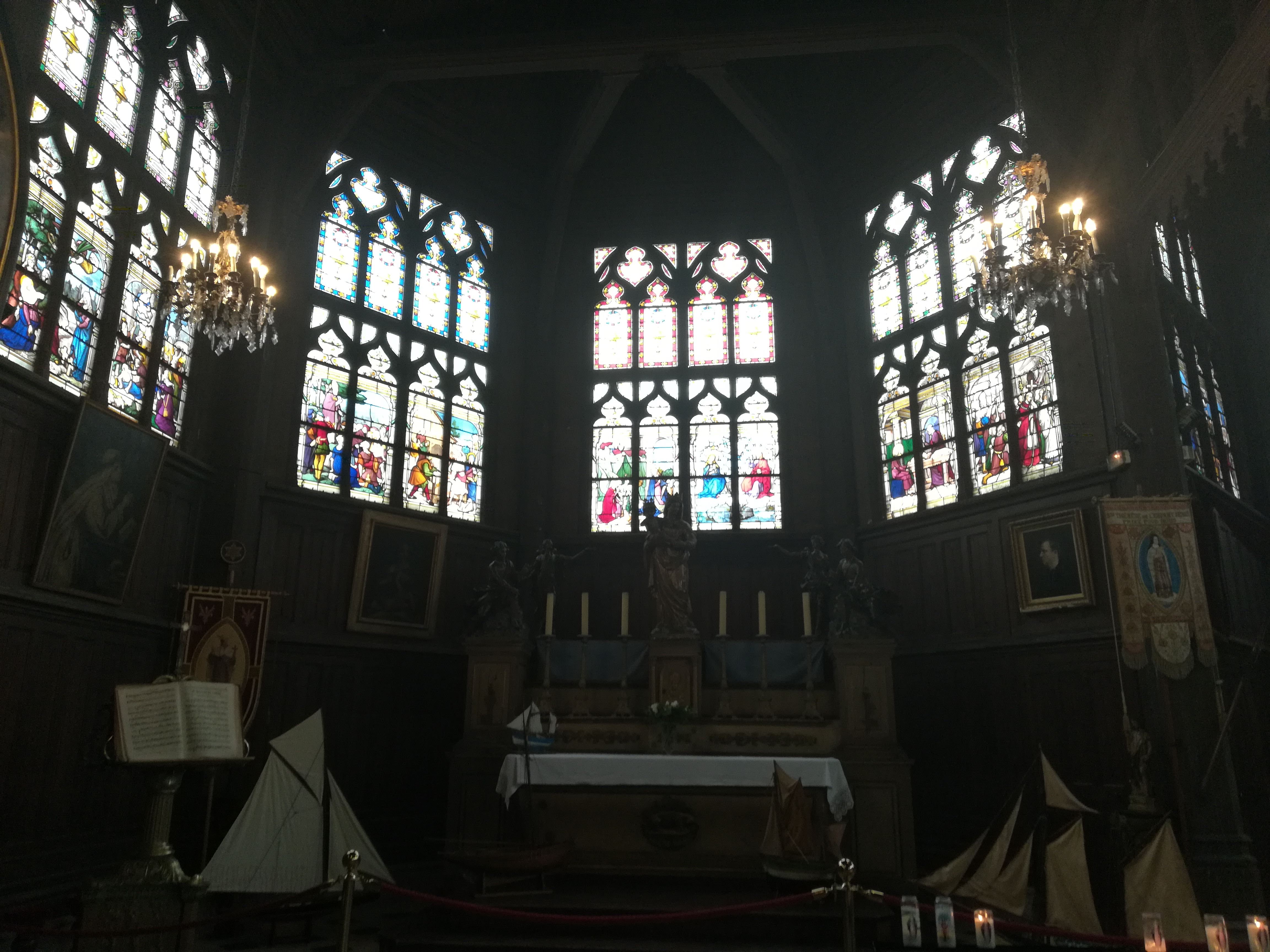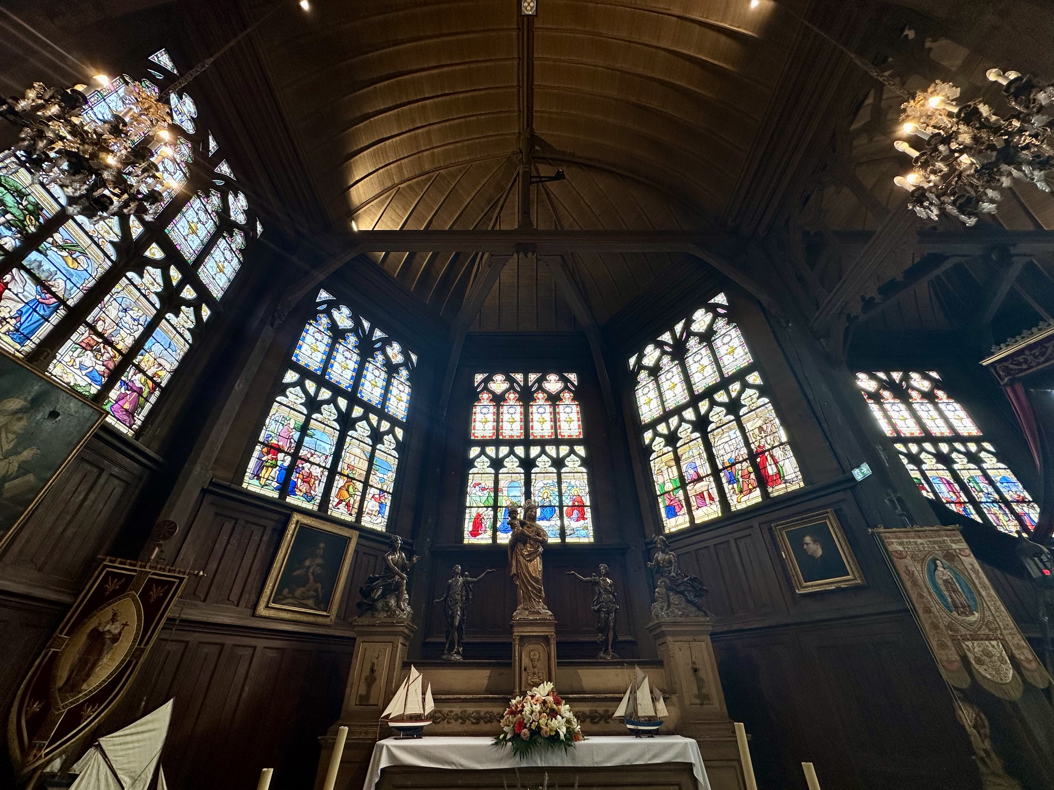 Je ne suis pas croyante, mais j'aime les églises pour leur architecture. Celle-ci a l'aspect très authentique de l'extérieur oppose son côté convivial et accueillant de l'intérieur, effet apporté par le bois qui recouvre tous les murs. On s'y sent bien, c'est chaleureux ! Prenez le temps de faire le tour et de lire son histoire avec Honfleur