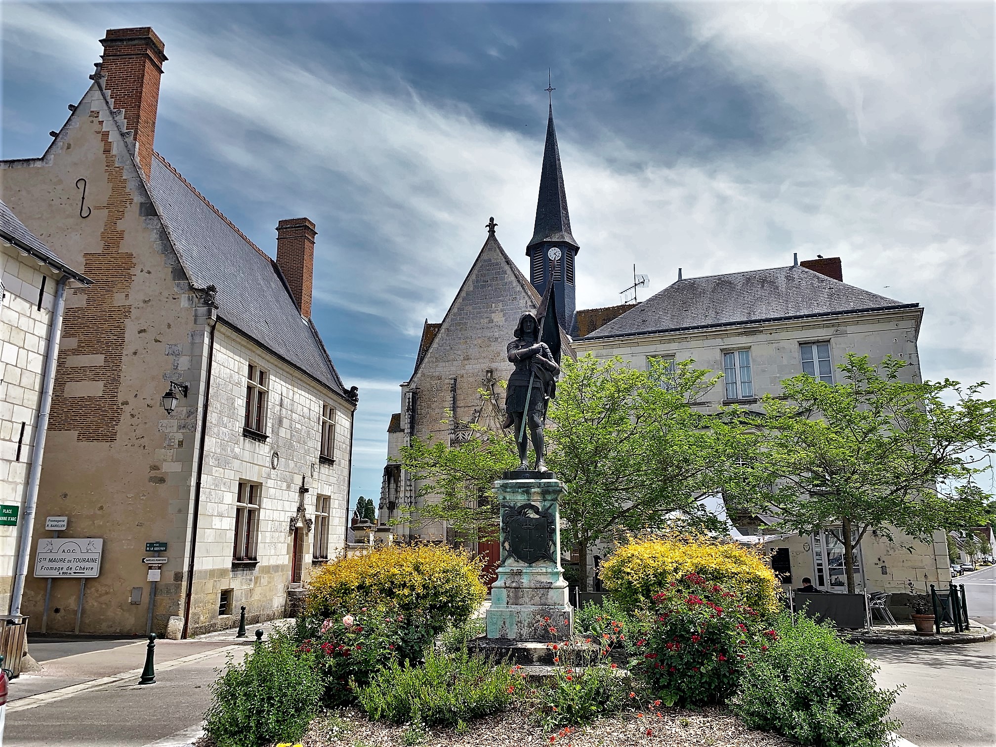 Légendes et histoire se mêlent étroitement en cette église. Une chapelle fut dressée au 8ème siècle par Charles Martel, dédiée à sainte Catherine d'Alexandrie, patronne des soldats, pour la remercier de sa victoire sur les Sarrasins. Il aurait déposé son épée sous l'autel. 7 siècles plus tard, Jeanne d'Arc, partie de Vaucouleurs en Lorraine, fit une pause à Sainte-Catherine-de-Fierbois et pria dans cette chapelle avant de rejoindre Chinon. Des voix lui indiquent alors que l'épée qui guidera ses succès militaires se trouve dans cette chapelle Sainte-Catherine-de-Fierbois. Récupérée par des émissaires, cette épée l'accompagnera presque jusqu'à la fin de son périple. De très jolie choses sont à découvrir dans cette église de style gothique flamboyant et le village lui-même est charmant.