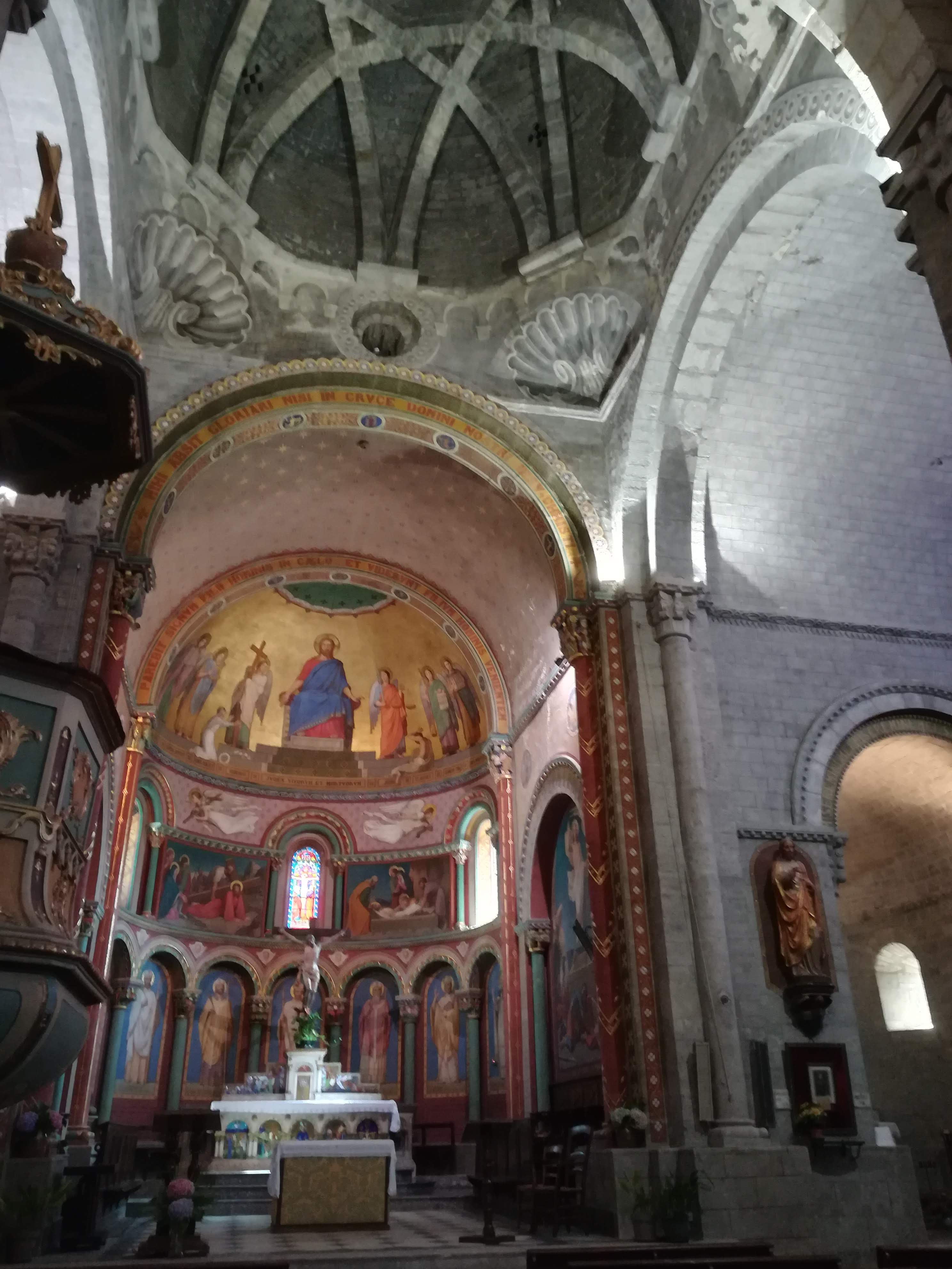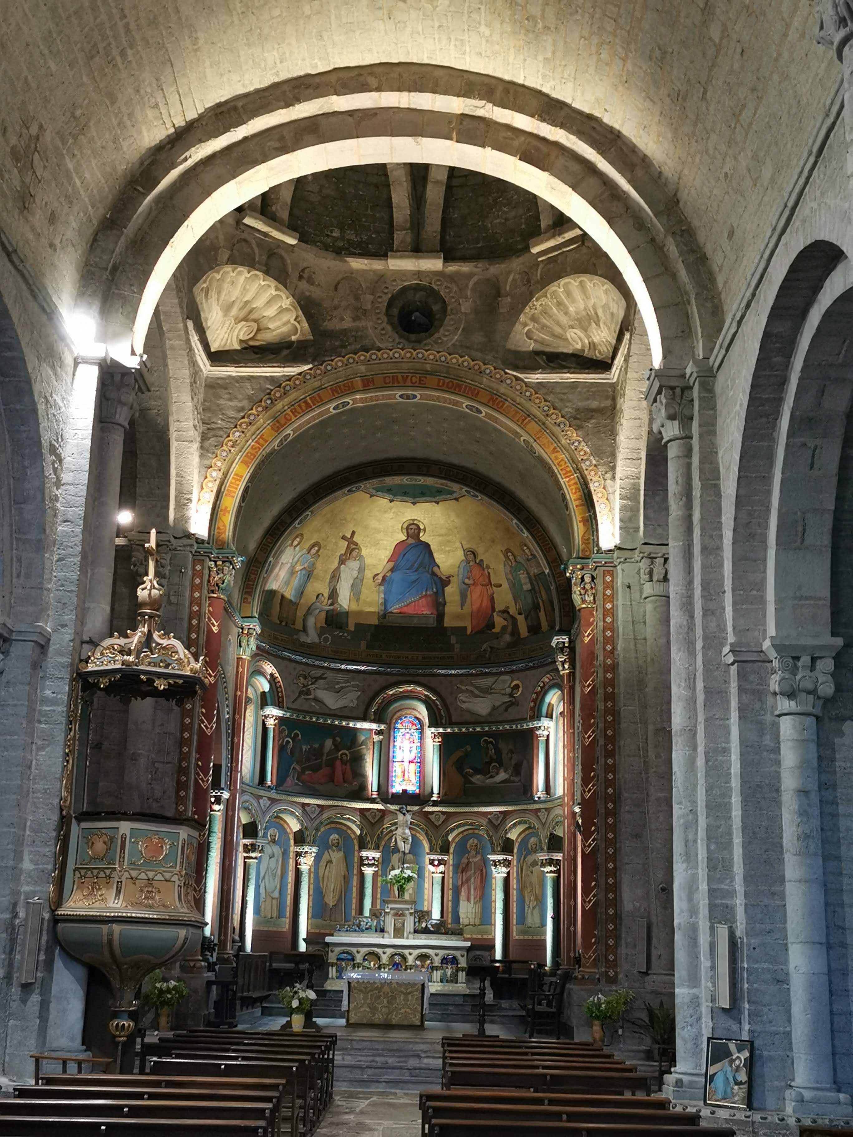 Magnifique église romane, la porte semble fermée mais elle ne l'est pas; il faut bien appuyé sur la bobinette et la chevillette se soulève. Il y a u éclairage automatique des premières marches, malheureusement ke reste de l’église reste dans la pénombre.