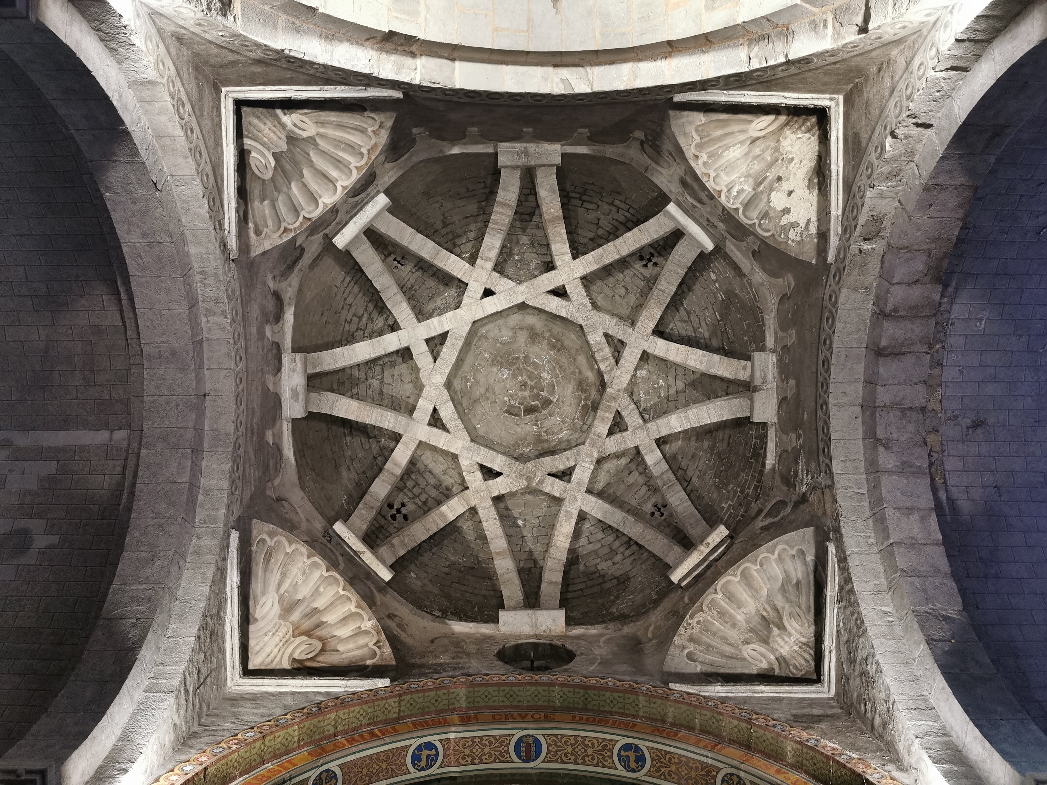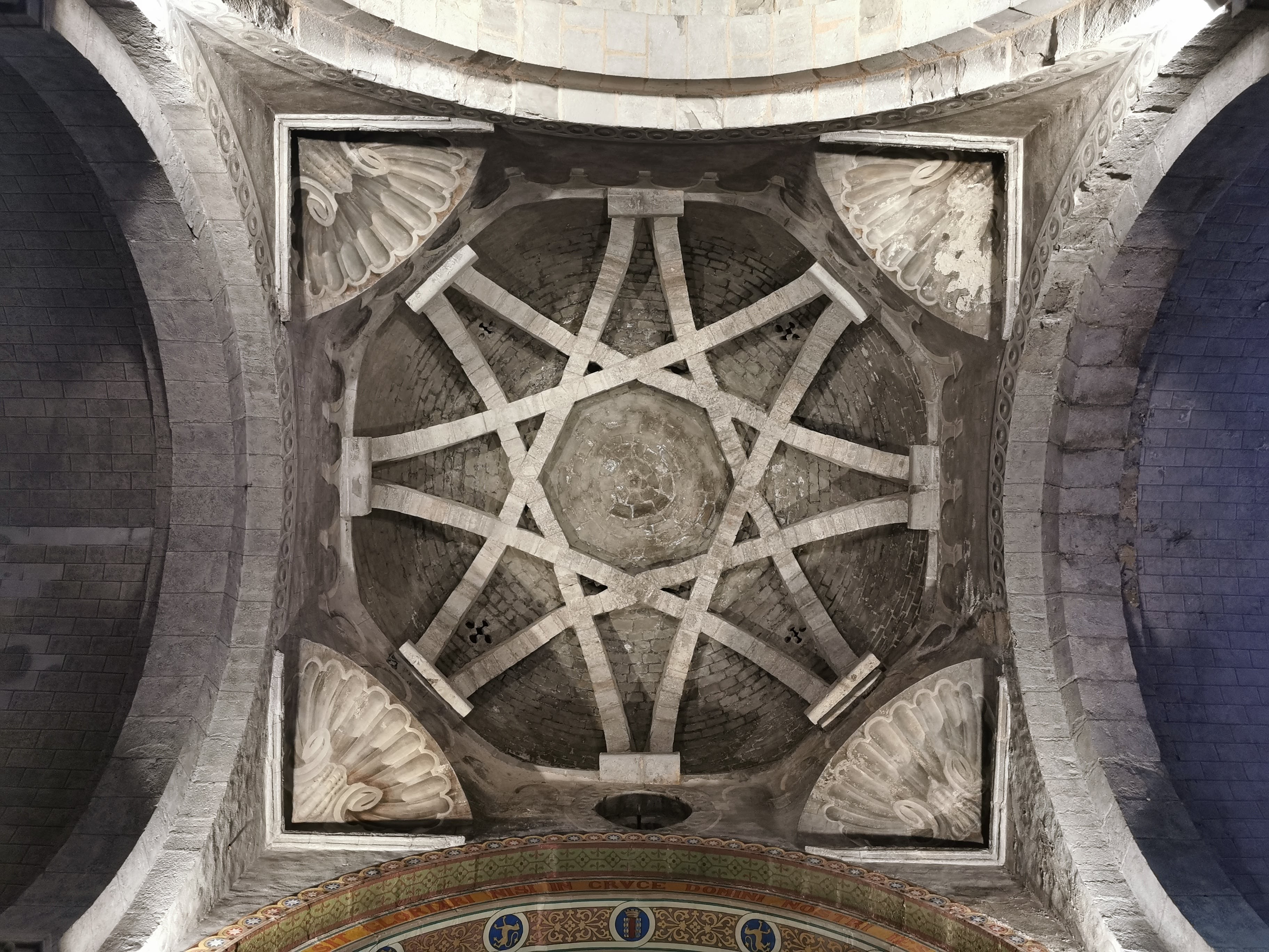 Dôme peut-être inspiré de l'Aljafería de Saragosse. Très curieux chapiteaux romans.