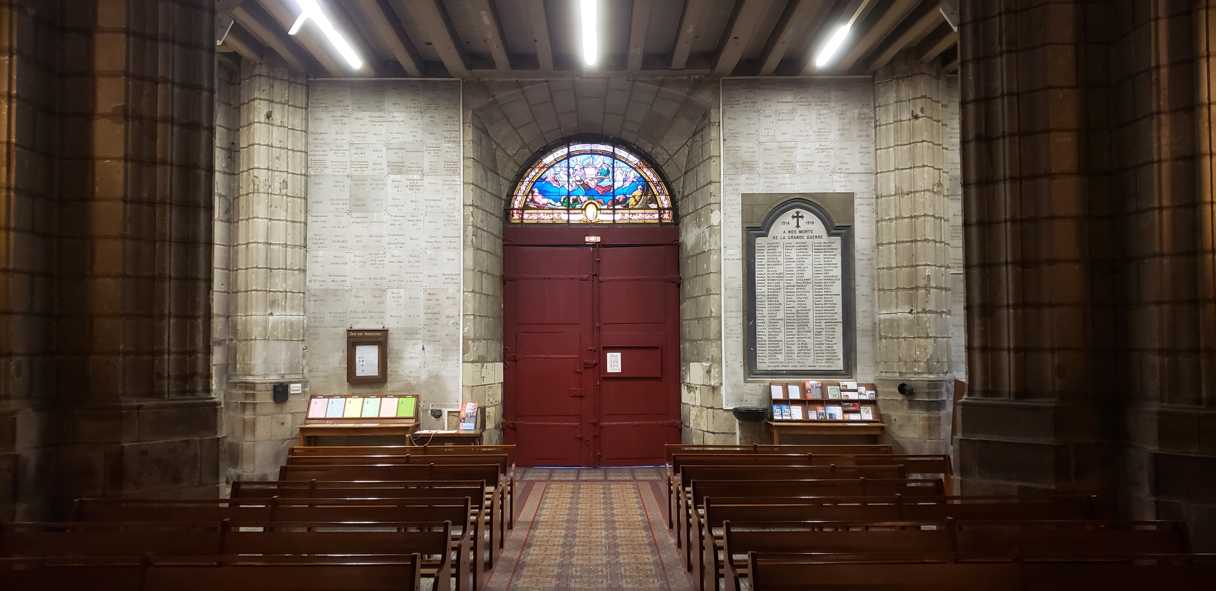 Très belle église en centre ville Agréablement surpris par tout les panneaux de remerciements accroché au paroi de l édifice