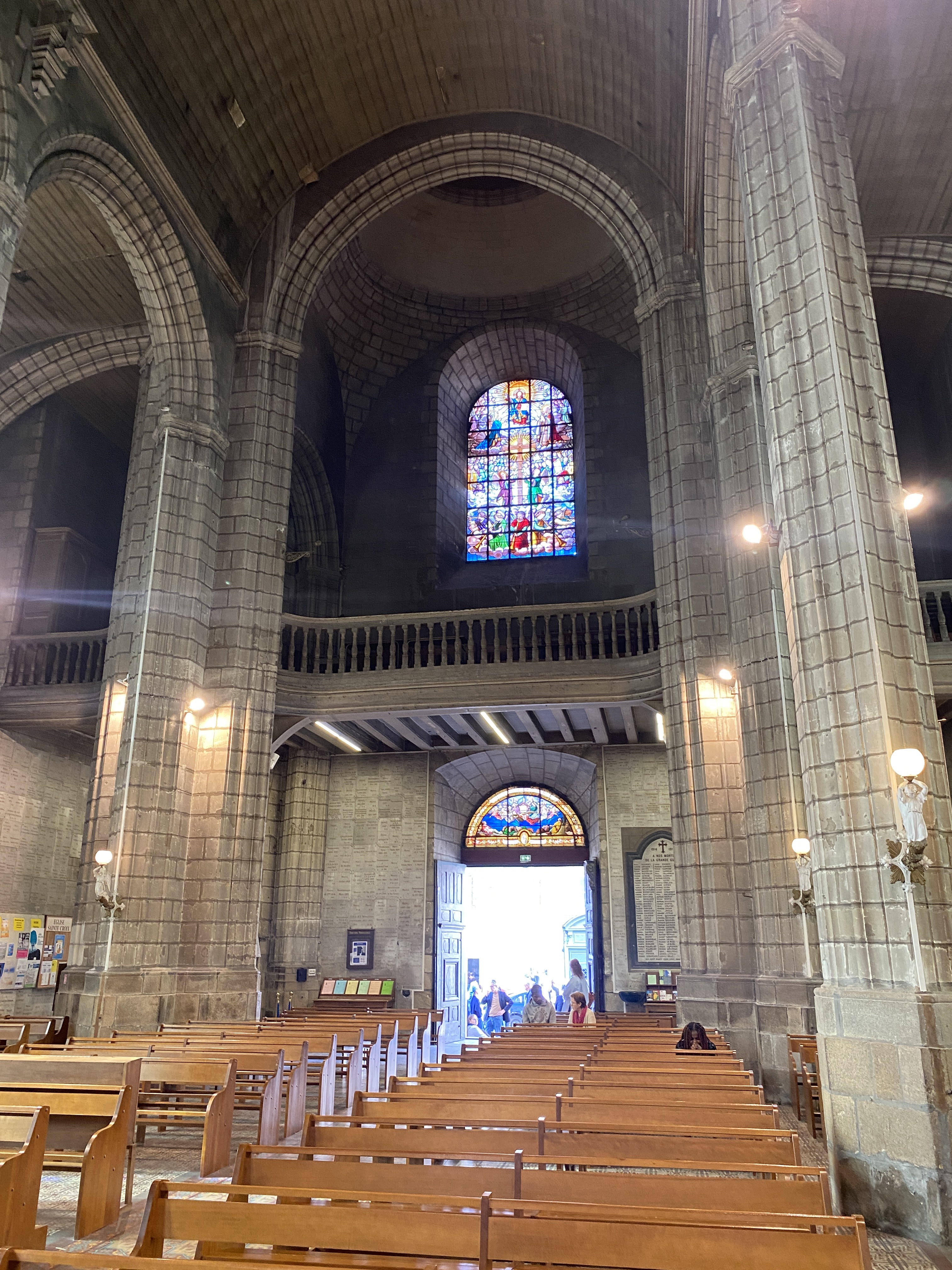Cette magnifique église Sainte Croix de Nantes est une belle église d'architecture de style classique avec une nef de style gothique très flamboyant. J'ai été frappé par l'obscurité étrange de l'intérieur et par l'ambiance pourtant très paisible. De l'extérieur, j'ai été fasciné par le beffroi et la façade classique et l'intérieur est encore plus impressionnant ! J'ai appris et vu le seul autel survivant (l'autel latéral droit du maître-autel principal) du septième siècle ! L'orgue d'origine, bien que modifié, est d'une beauté. Les vitraux sont spectaculairement gothiques et confèrent à l'intérieur une atmosphère d'une beauté envoûtante. Ça vaut vraiment le détour. Accueillant pour tous les âges et tous les horizons.