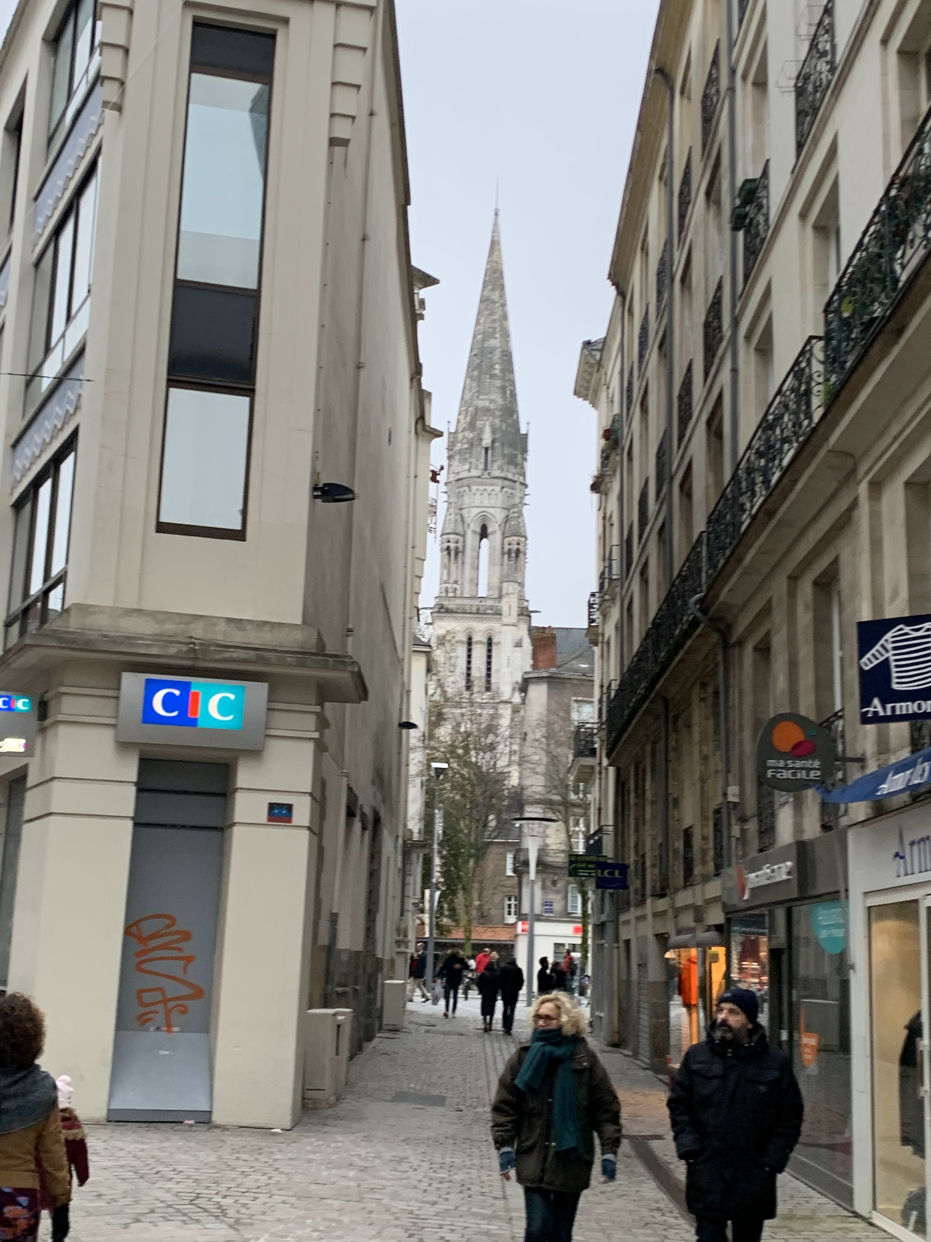 Campanile magnifique de cette église située en plein cœur de Nantes dans les rues piétonne. A découvrir et visiter absolument.