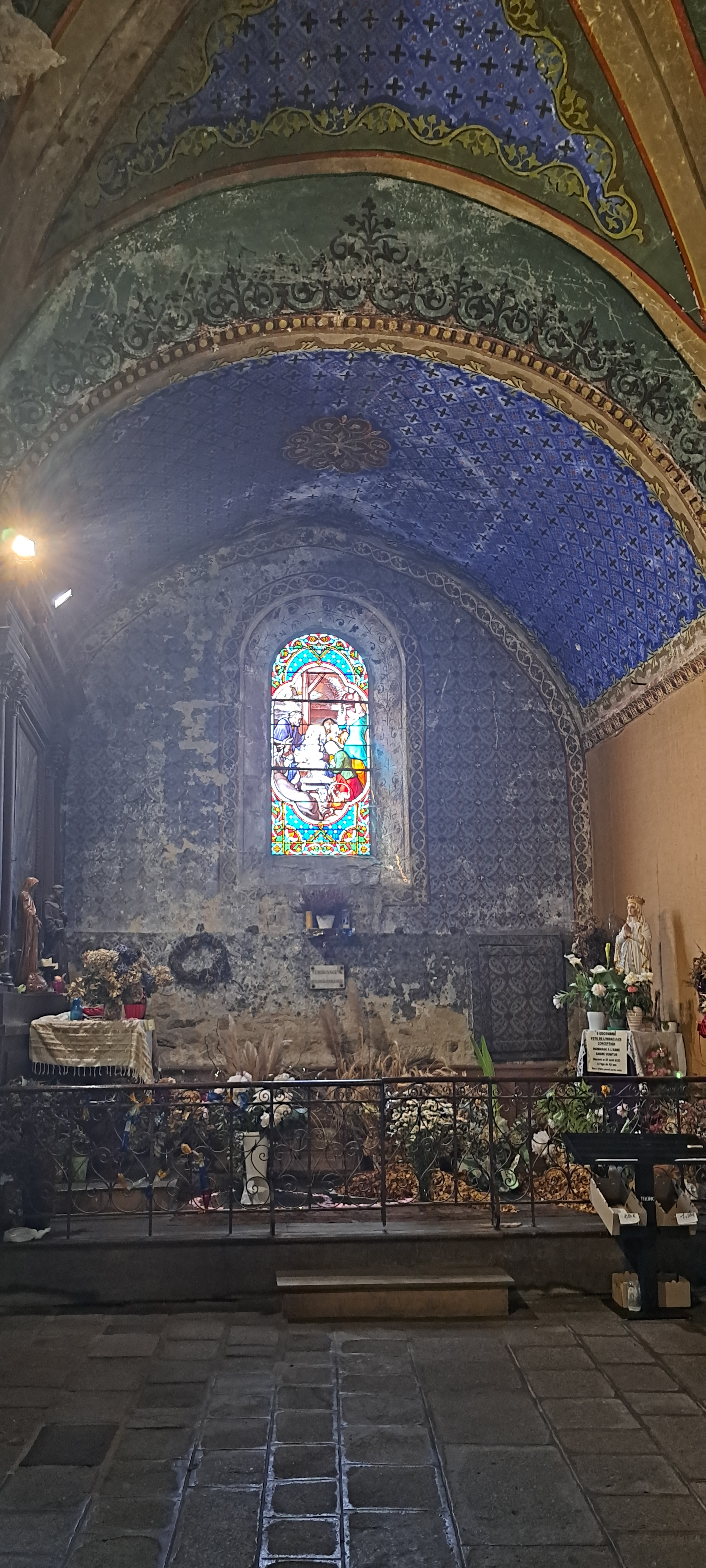 Mes yeux embués de larmes n'ont pu malheureusement voir ces merveilles, un drame pour moi et ma famille nous a frappé ce samedi 20 avril 2019. J'ai ressenti la paix que dégage ce lieu, un livre permet d'y inscrire un message, ce que j'ai fait. J'y suis retournée plusieurs fois y mettre une bougie, à chaque fois je m'y suis sentie apaisée, bien que non catholique. Allez-y, elle est belle et elle apaise le cœur.