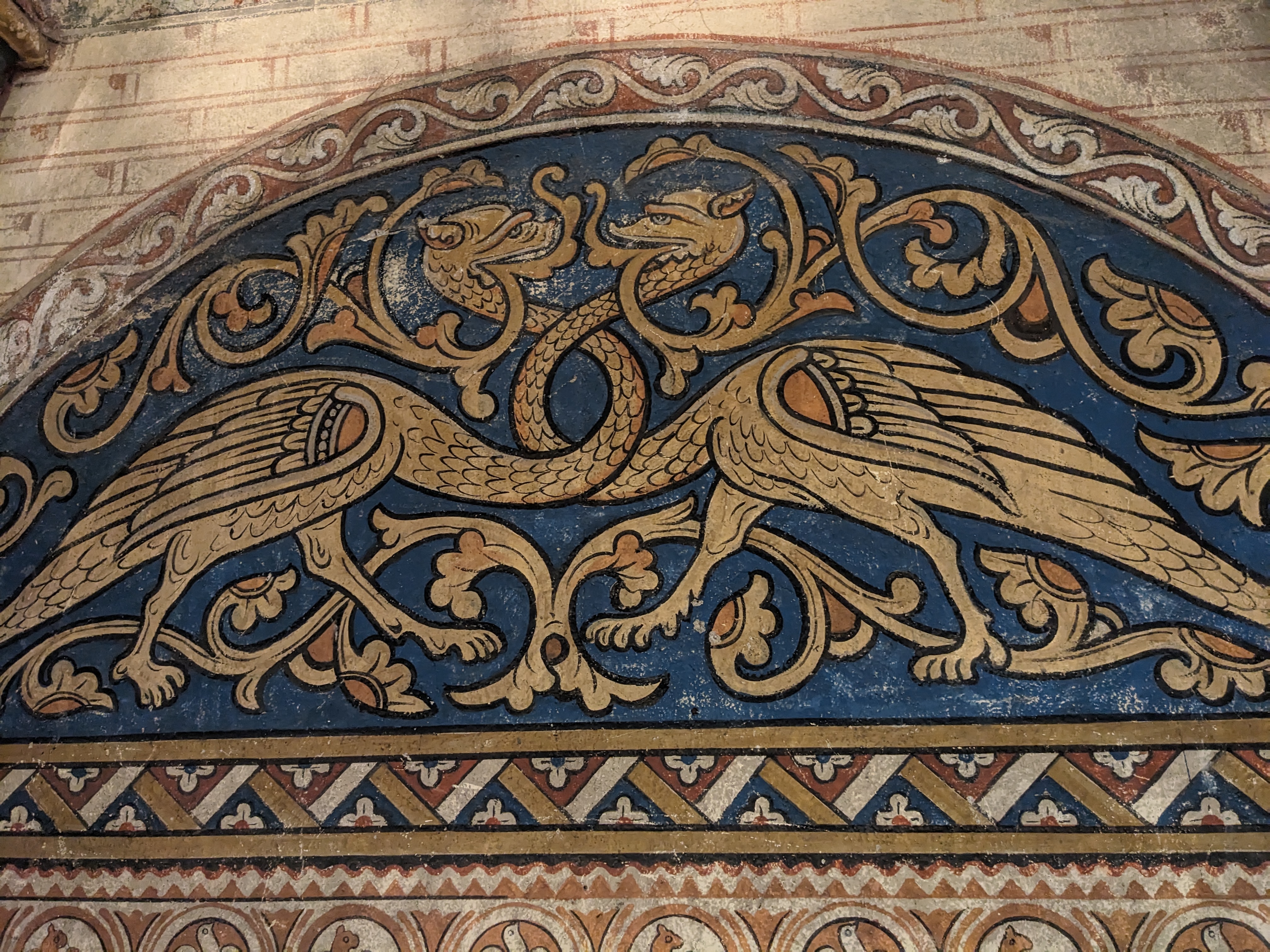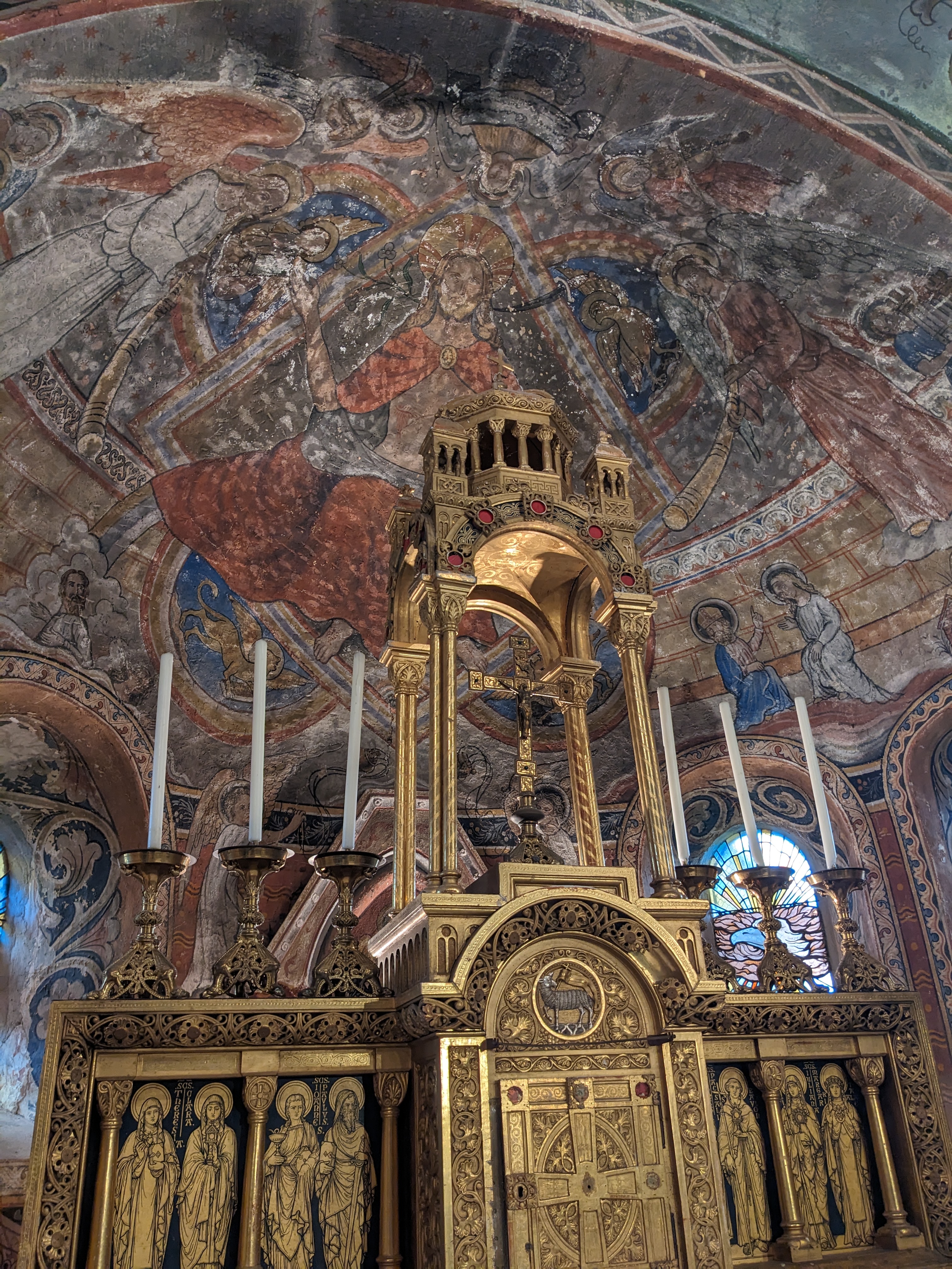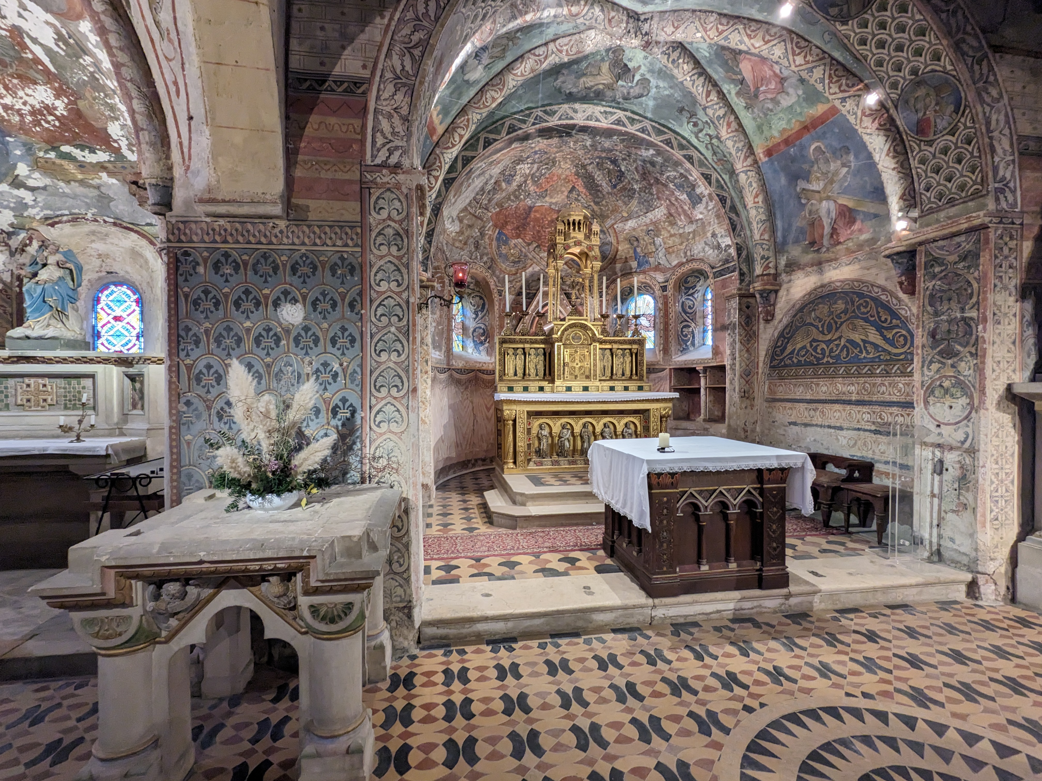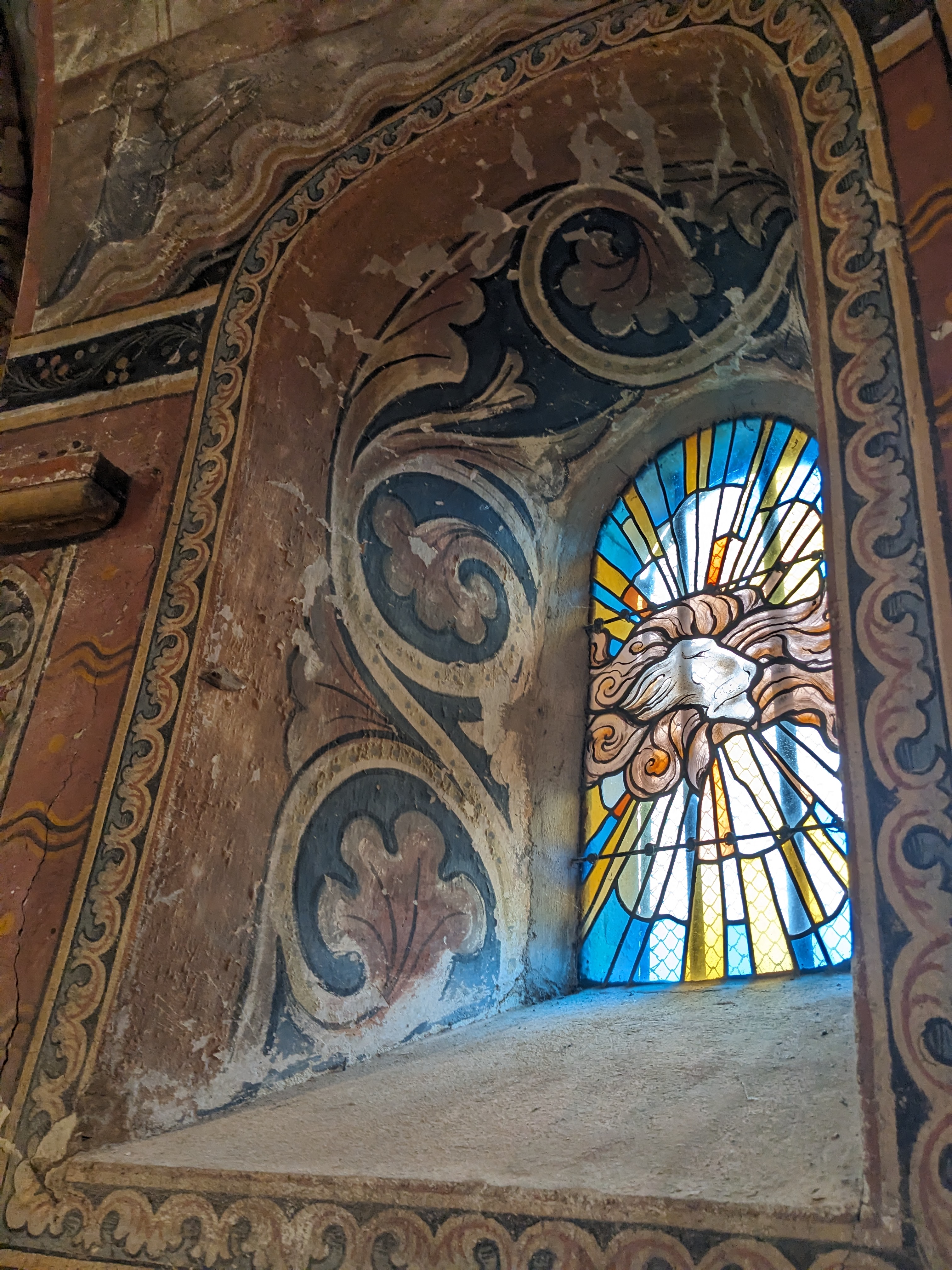 Très belle église fortifiée avec une jolie tour ronde. Les fresques du chœur et des absidioles sont superbes même si ce sont des restaurations du dix neuvième siècle. Elle donne à l'ensemble un petit air byzantin qui ne manque pas de charme. Un grand merci à la mairie qui m'a ouvert l'église pour des photos.