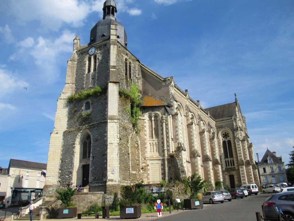 Le clocher encadré de 2 énormes contreforts poussant sur les angles de cette tour s'impose au cœur du village. Ce clocher est un vestige des reconstructions du 16è ayant modifié l'église primitive romane du 11è. Cette dernière fut détruite en 1840 pour permettre la construction d'une nouvelle église. Cet édifice de 1840 fut si mal construit qu'en 1880, son état de délabrement le condamnait à la destruction. Une nouvelle église fut construite, celle que l'on voit aujourd'hui. L'imposante tour du 16è, aujourd'hui clocher-porche de l'église, a été préservée par un heureux hasard, le projet de reconstruction du 18è n'est pas allé à son terme, préservant cette façade Nord par laquelle on entre. La partie basse du clocher abrite l'accès à la salle des cloches et une signalétique simple et pertinente, fenêtre ouverte sur l'histoire de la cité et de l'église. La nef à 3 vaisseaux est lumineuse, de belles élévations conduisent le regard vers le chœur. J'ai beaucoup aimé la découverte de ce chœur, son mobilier et les chapelles rayonnantes. Église ouverte et accueillante, l'élégance de son architecture m'a séduit. Les églises sont de formidables lieux de spiritualité, proches et libres d'accès.
