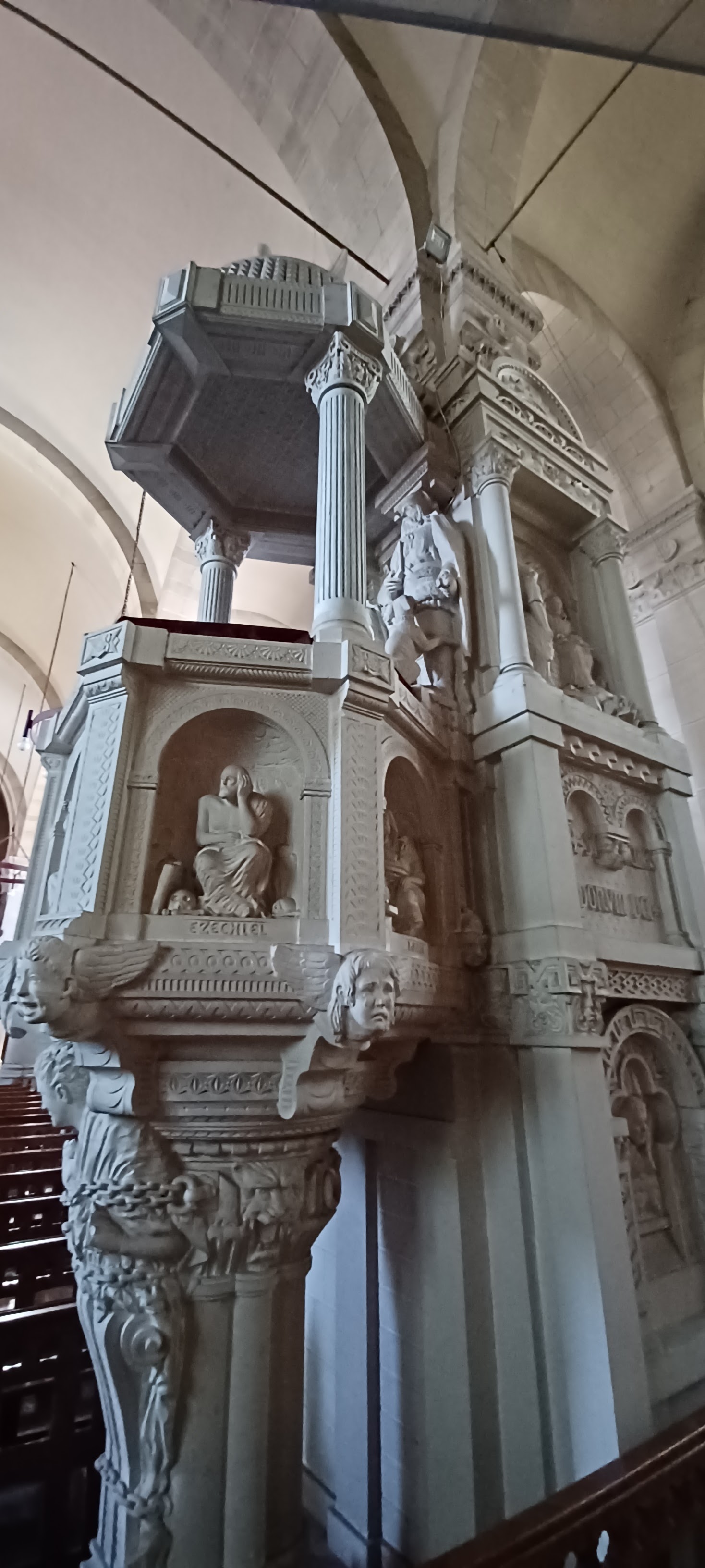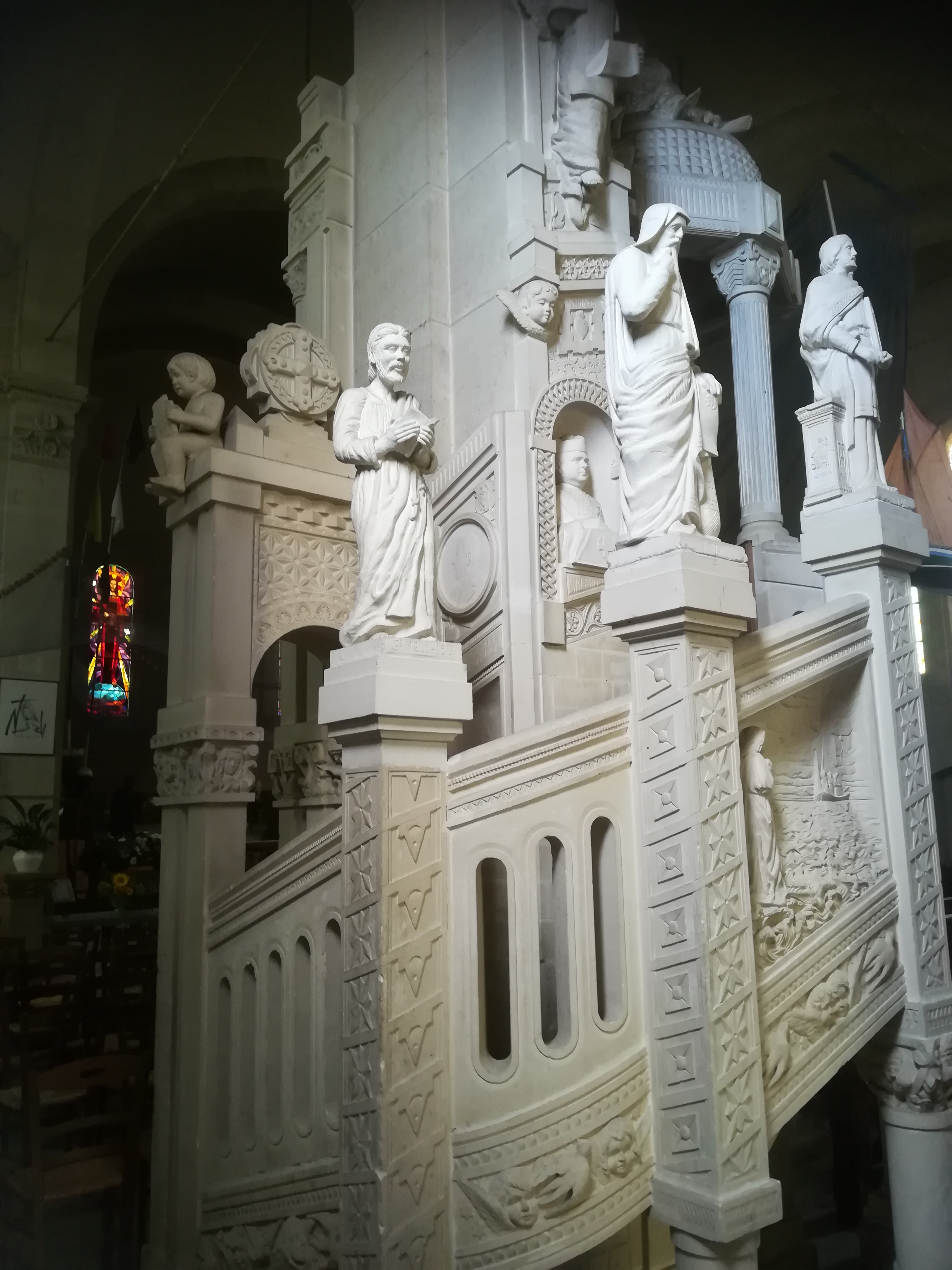 Très belle église église remarquable par son immense chaire en pierre sculptée. Oeuvre réalisée par un artiste local entre 1896 et 1899.