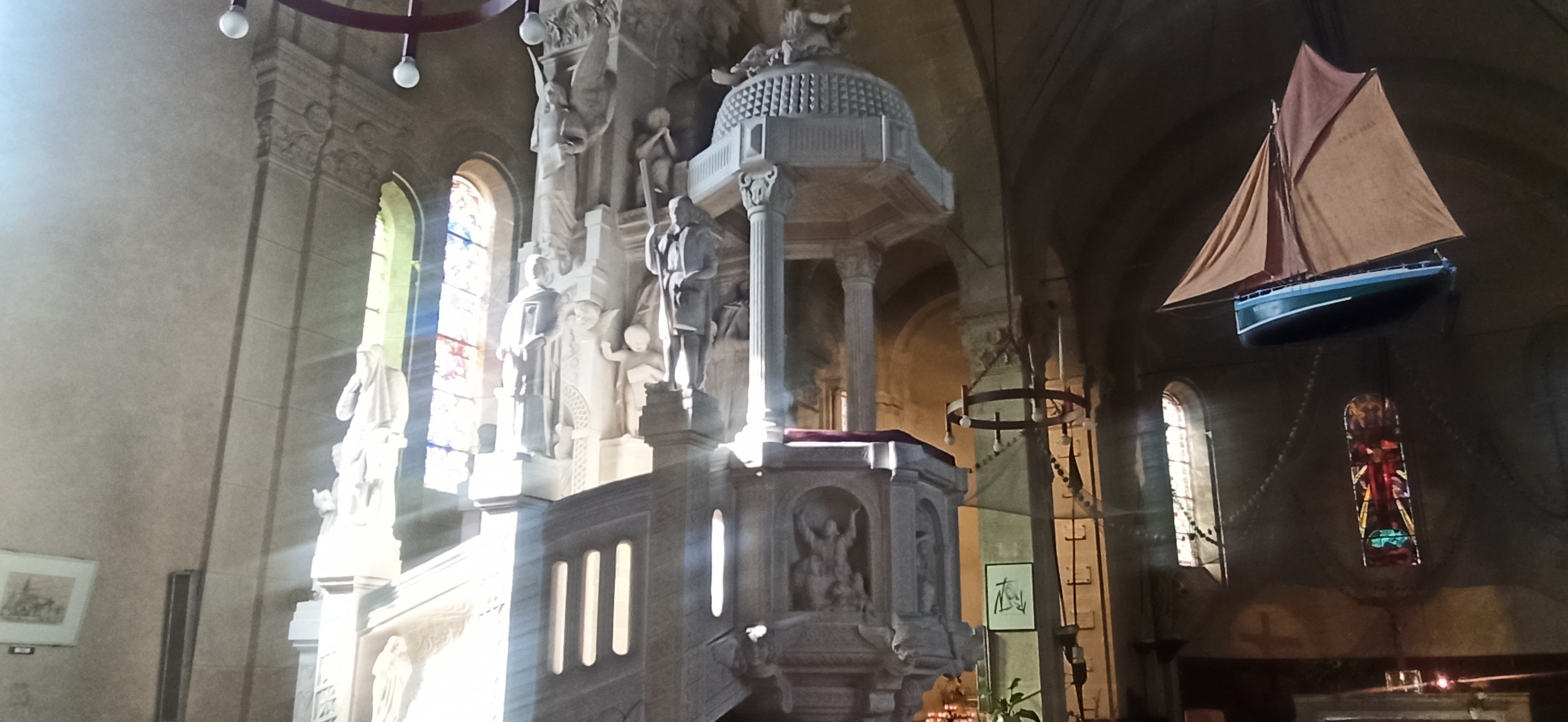 Église des marins, elle dresse en son cœur joli filet et un bateau