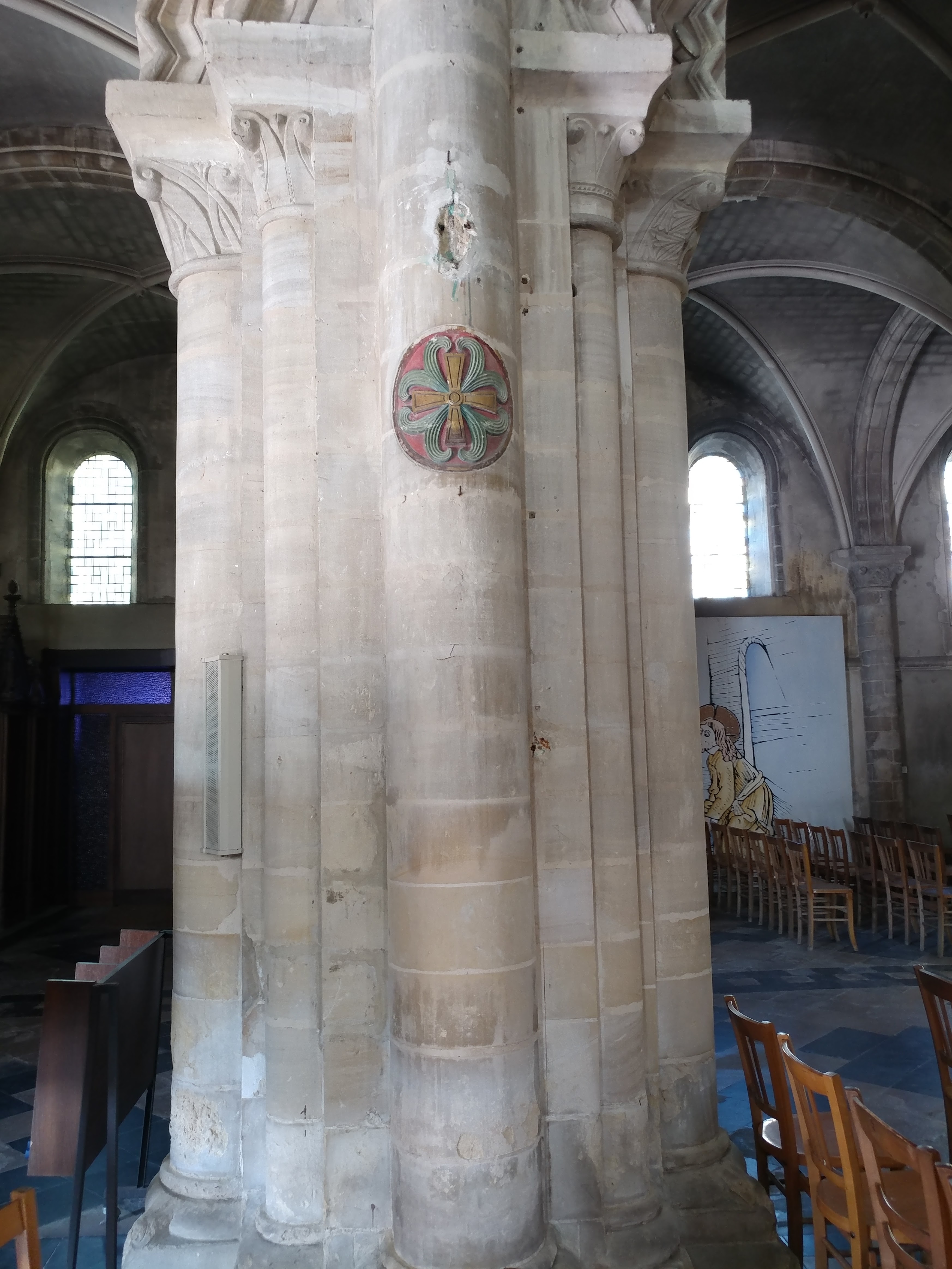 L'Eglise Sainte-Croix est située dans la ville de Saint-Lô qui a été détruite à 95%, réduite en tas de décombres par les intenses bombardements de la ville juste après le Débarquement. La cathédrale a subi des dégâts causés par les bombes mais a survécu au carnage. Il y a encore une vieille douille de bombe (désamorcée) encastrée dans l'église. C'est quelque chose à voir.