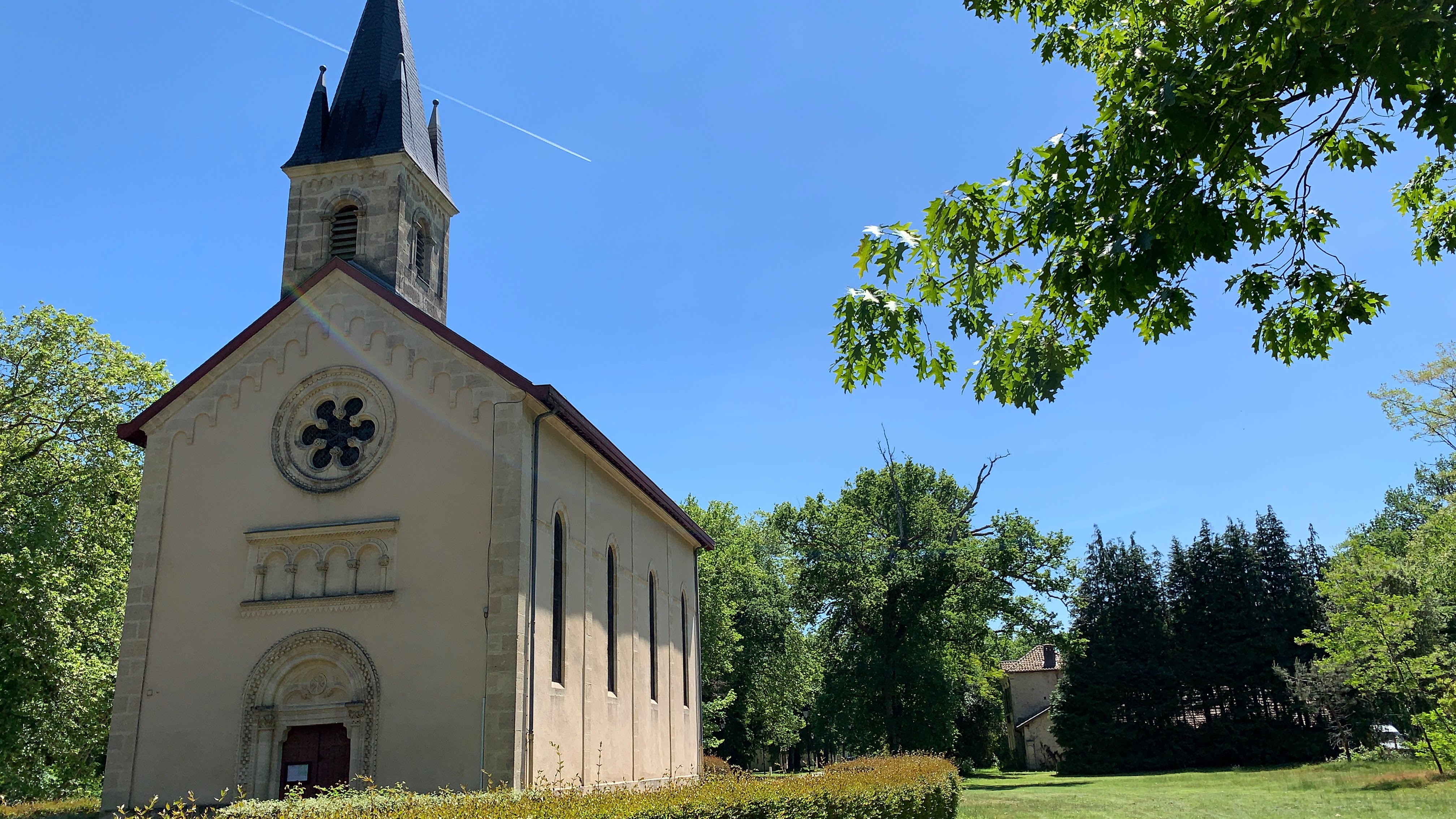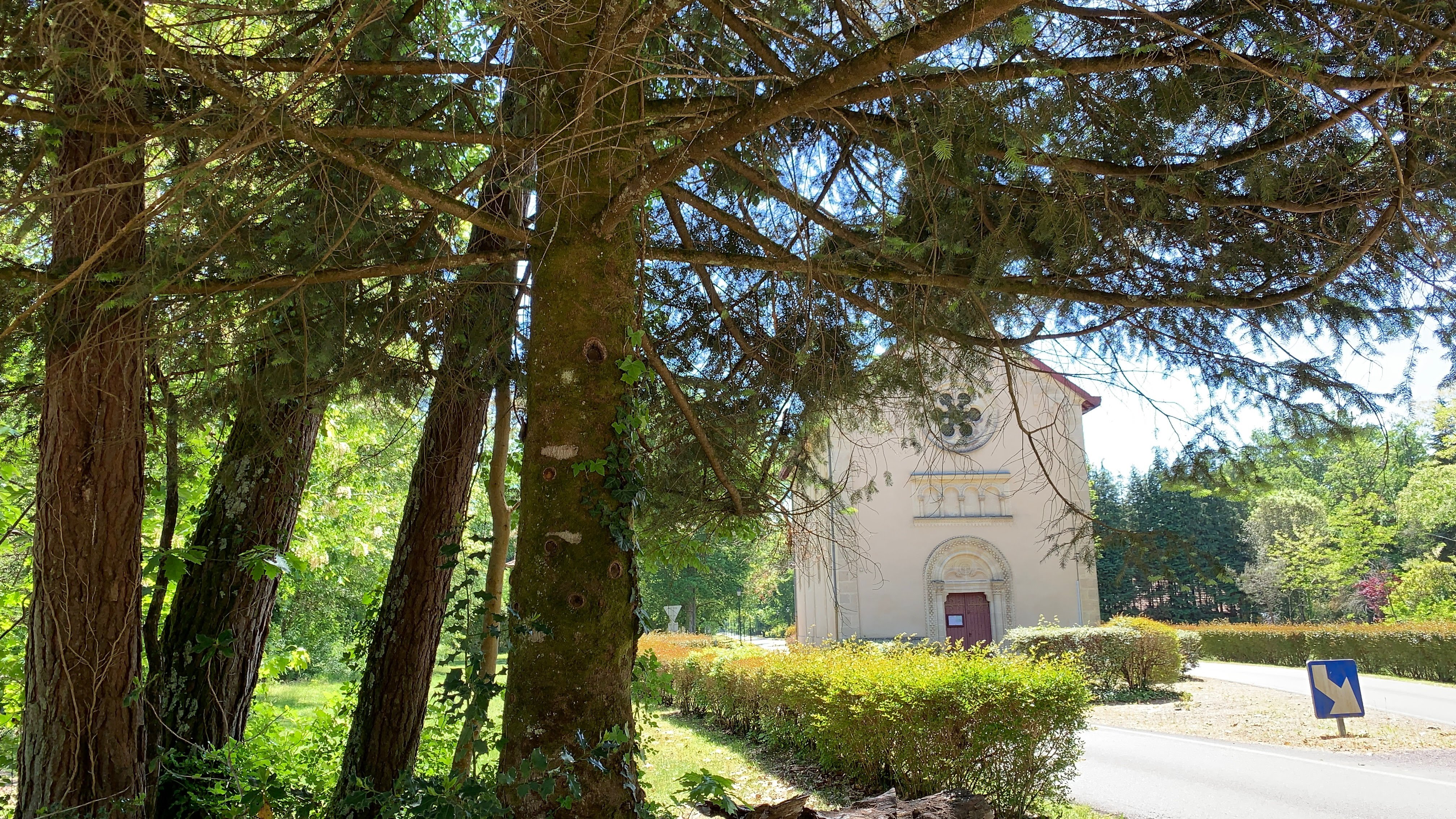 Petite église du village de Solférino, construite dans l’axe de la route.