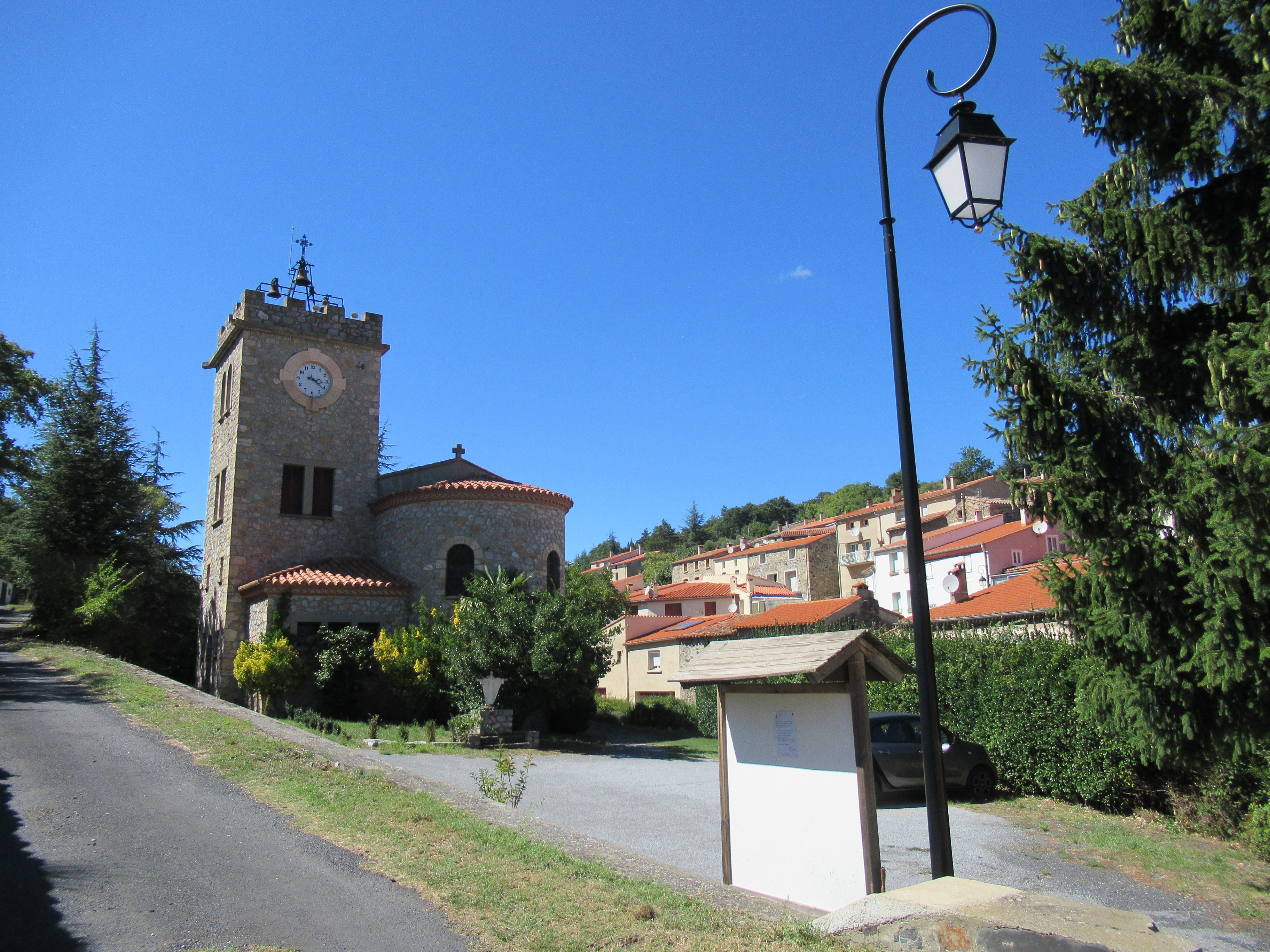 L’église est plutôt récente car apparemment elle aurait été construite en 1954... À vérifier... Quoiqu’il en soit, elle mérite qu’on s’y attarde quelques minutes notamment pour son abside et pour son clocher. On peut se garer juste devant ce qui n’est pas toujours le cas dans ces petits villages.