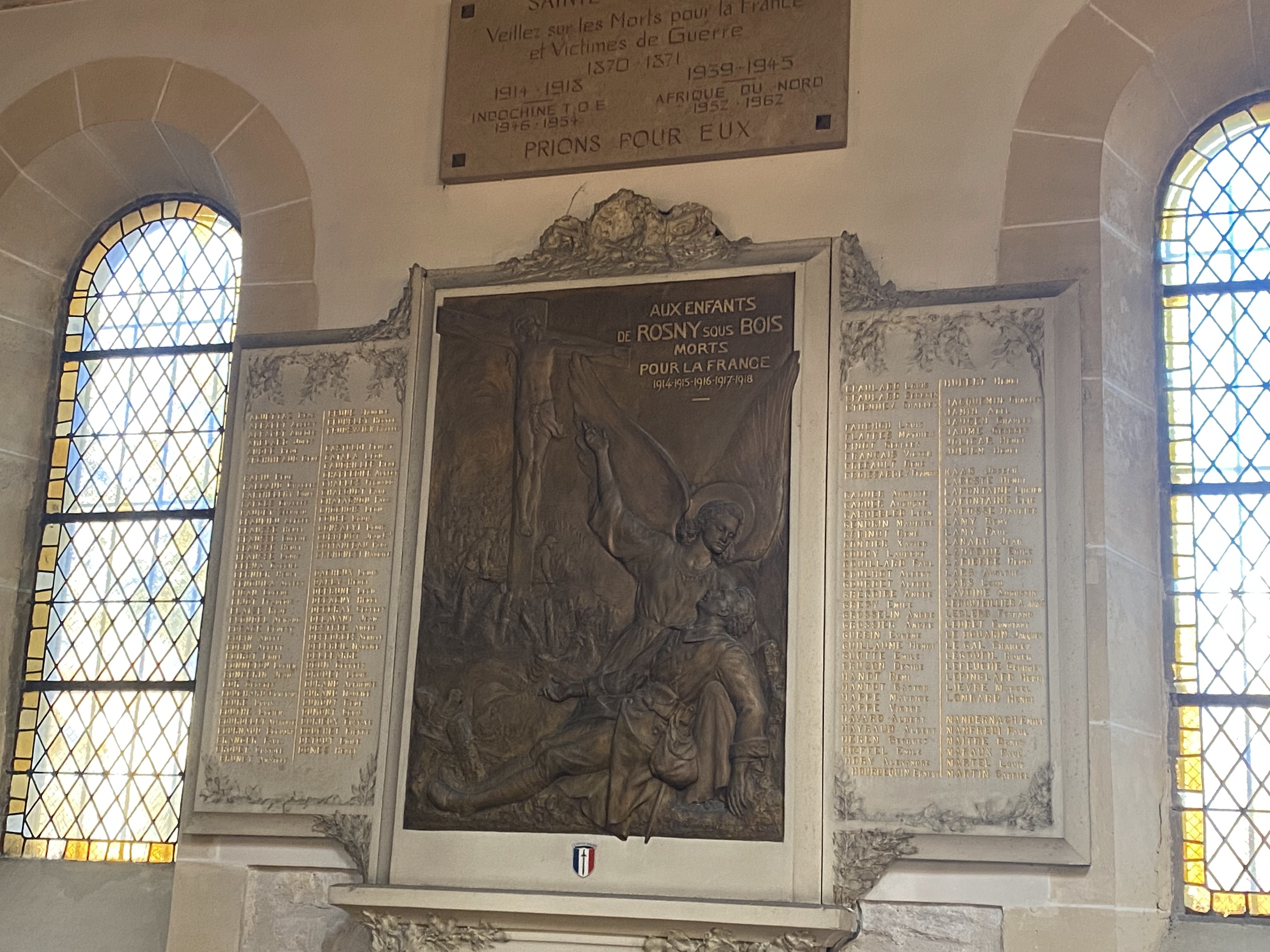 Jolie église simple, haute et lumineuse, au coeur du vieux rosny avec des ex votos et de petites chapelles latérales et ses cloches qui sonnent l'angélus et les offices