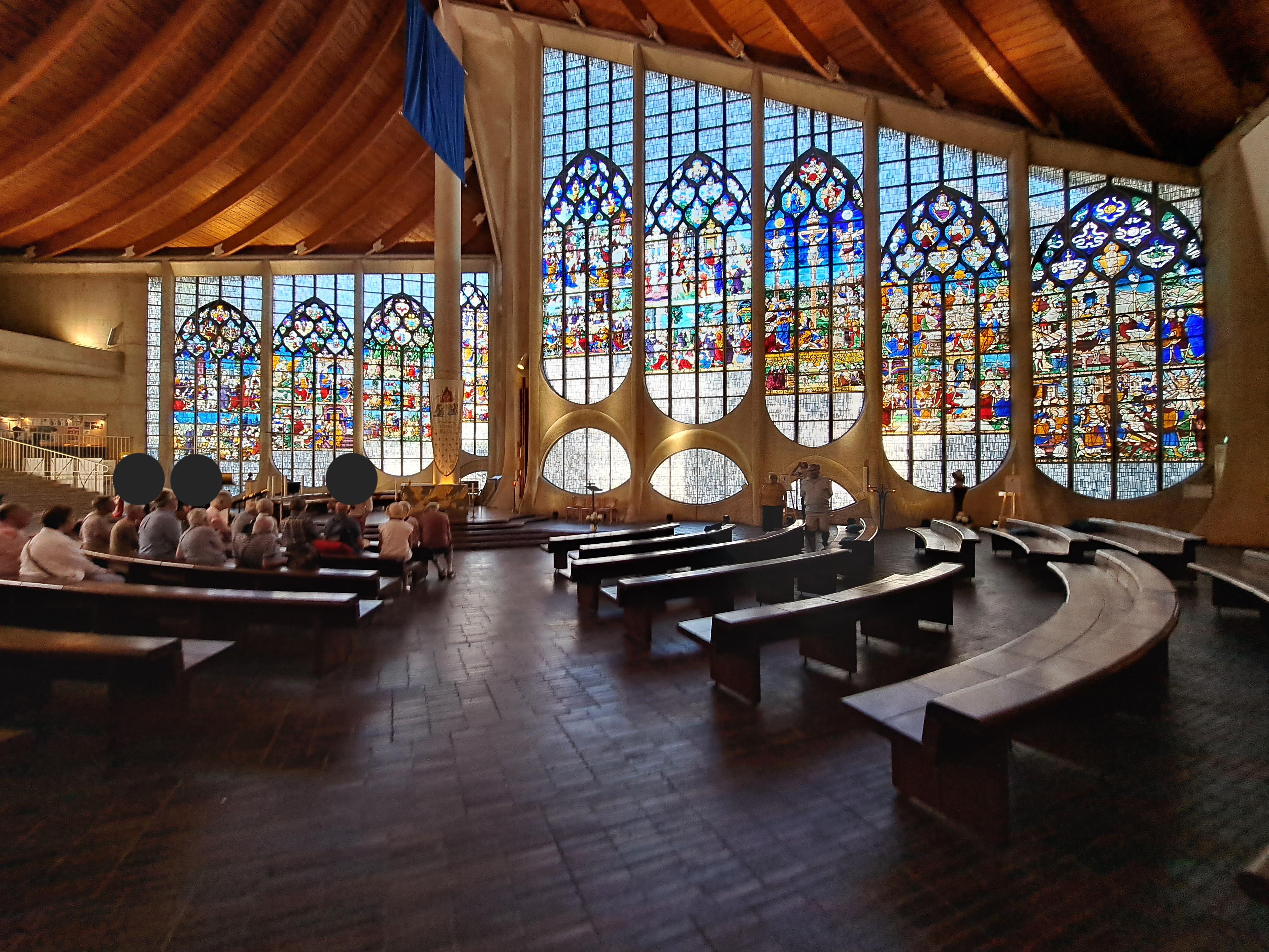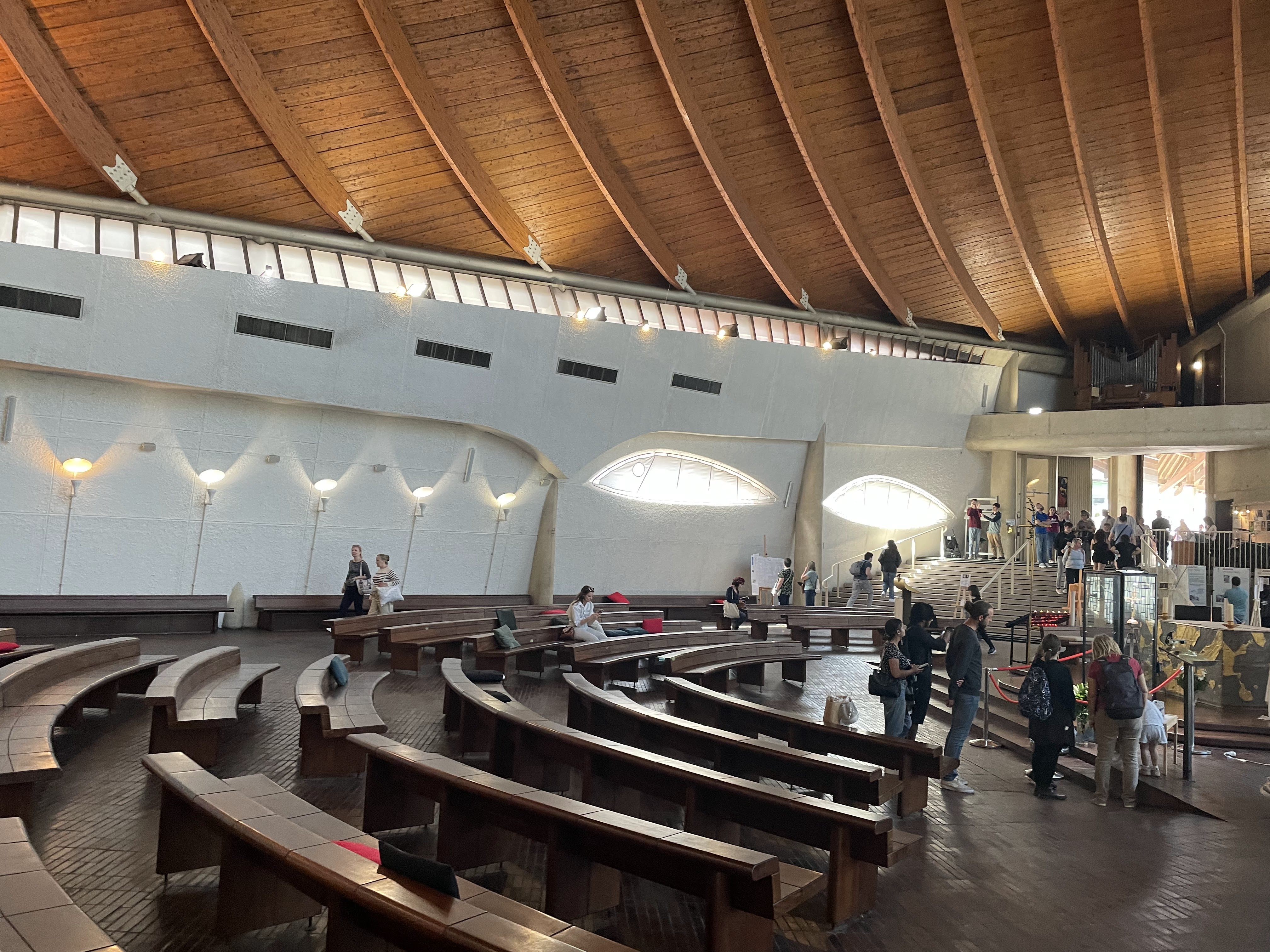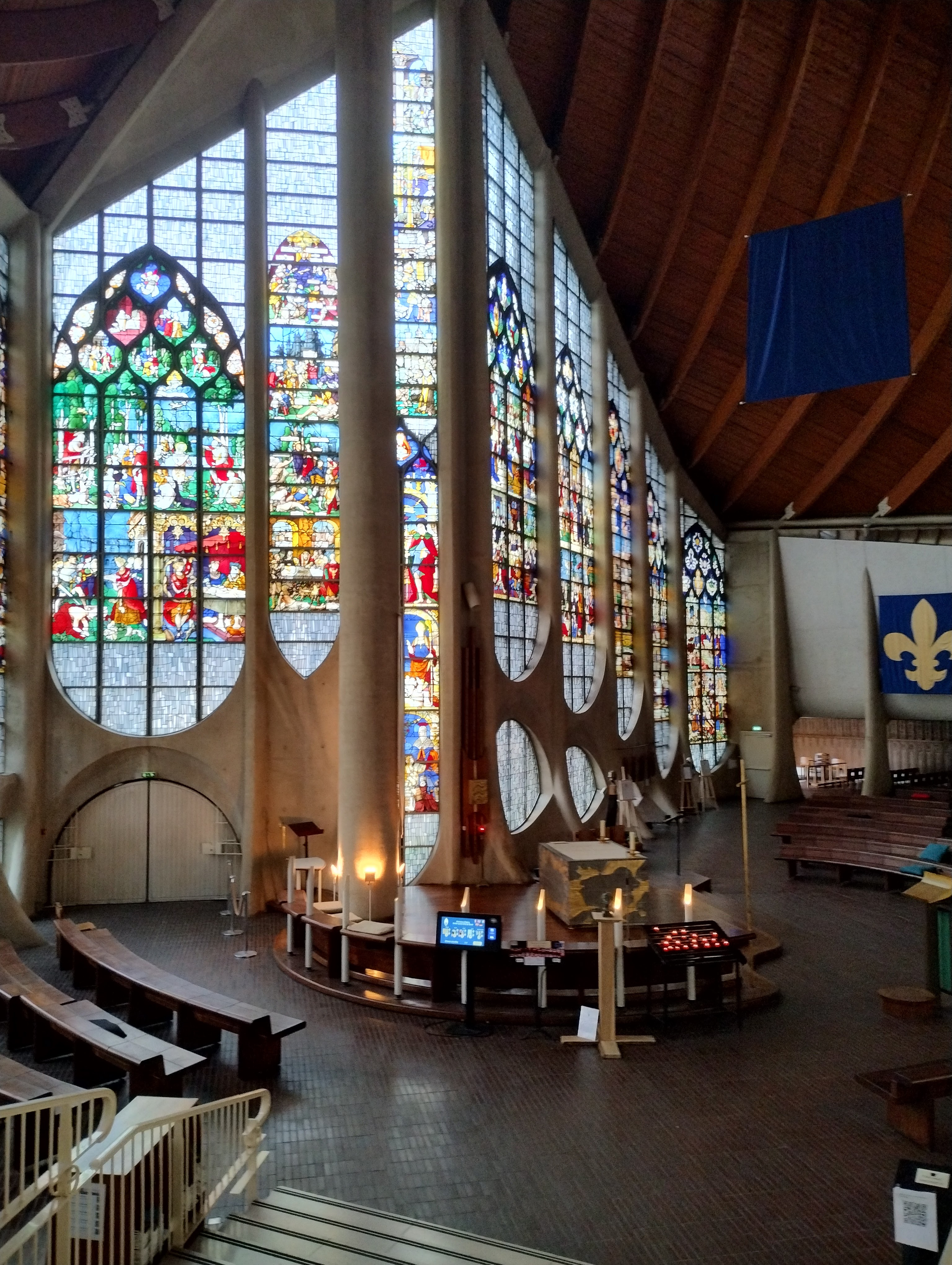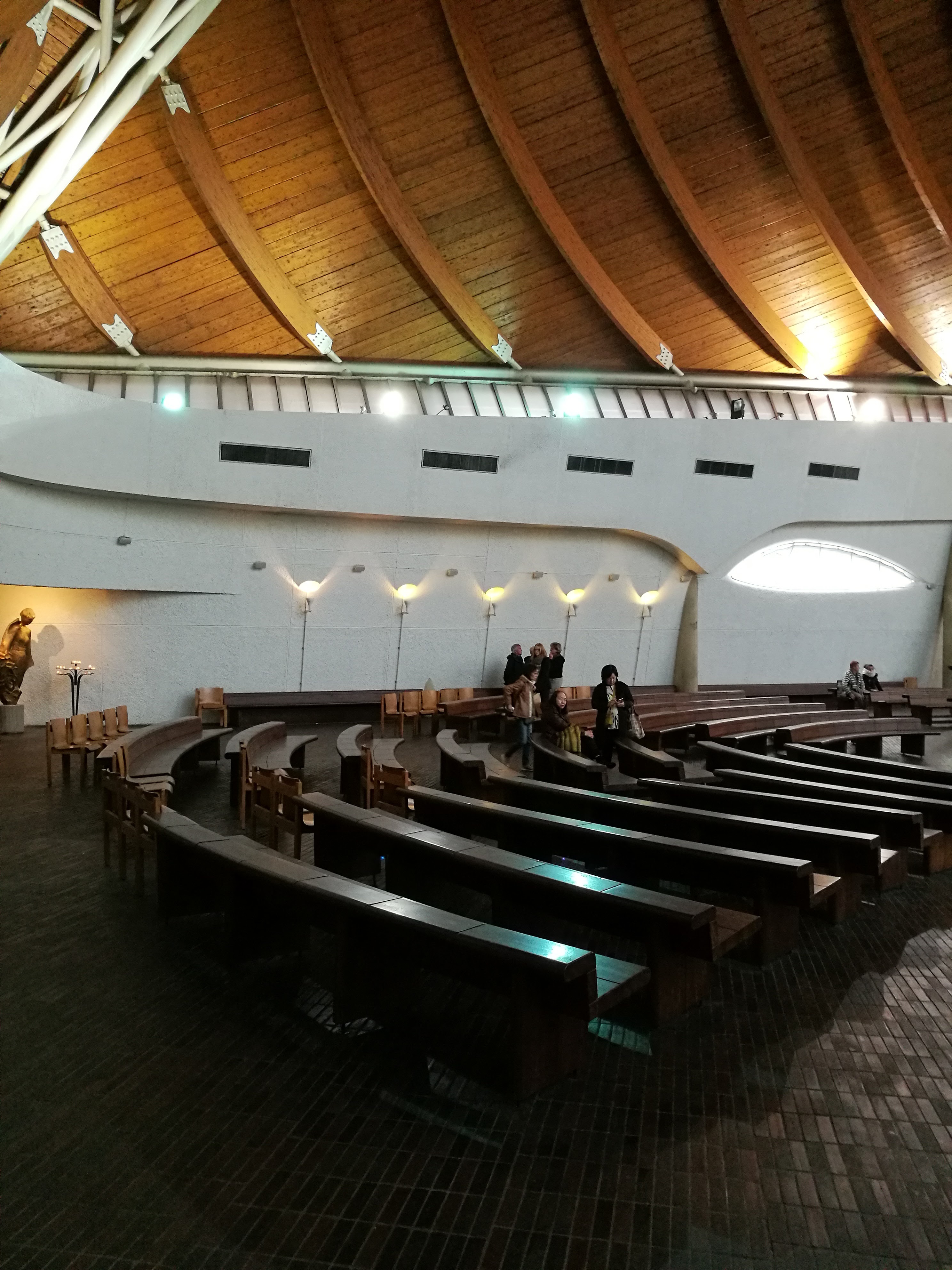 Surprise, car je n'aime pas trop les églises modernes. Celle-là est très belle à l'intérieur, spacieuse et lumineuse. Belle découverte.