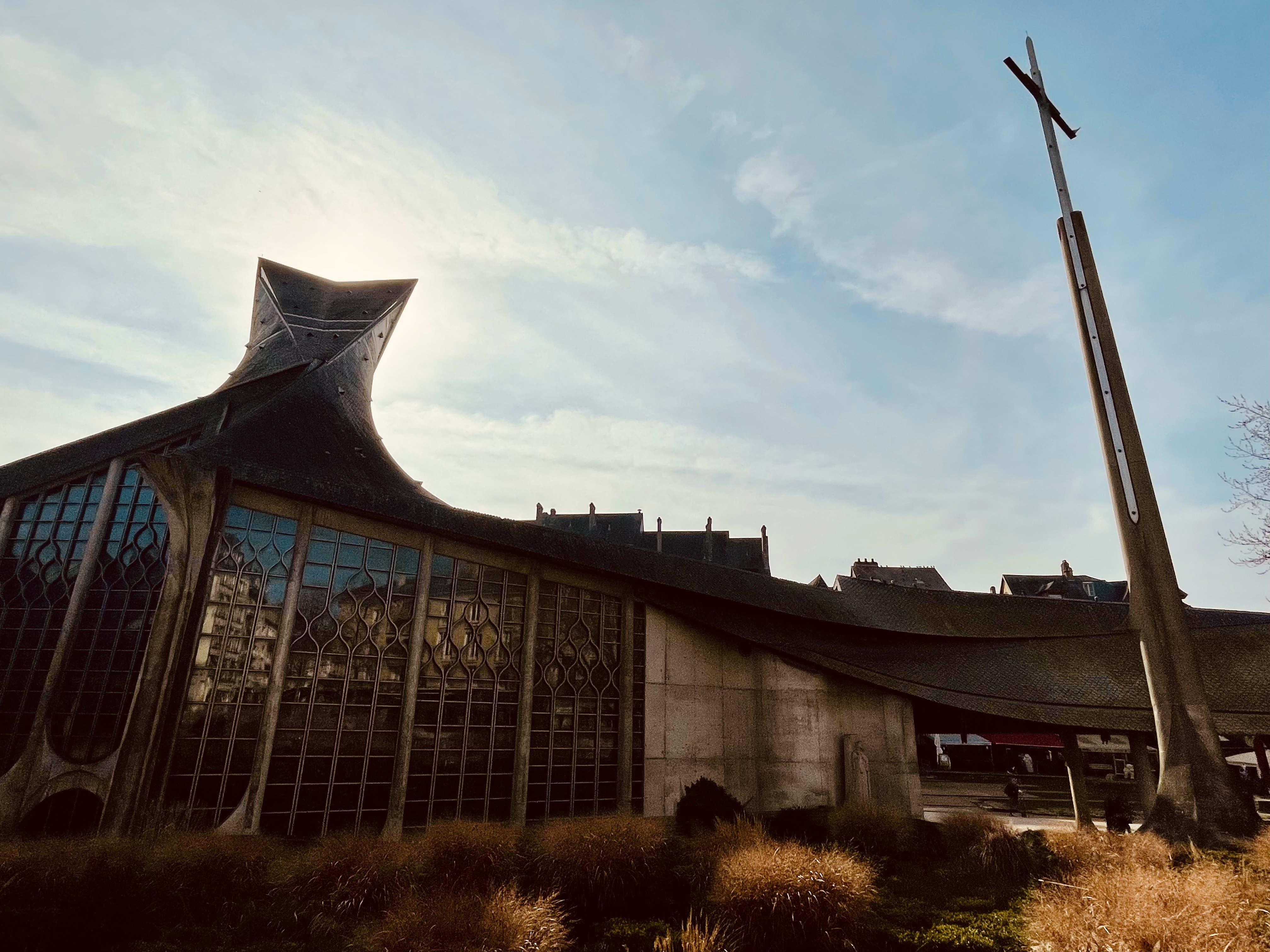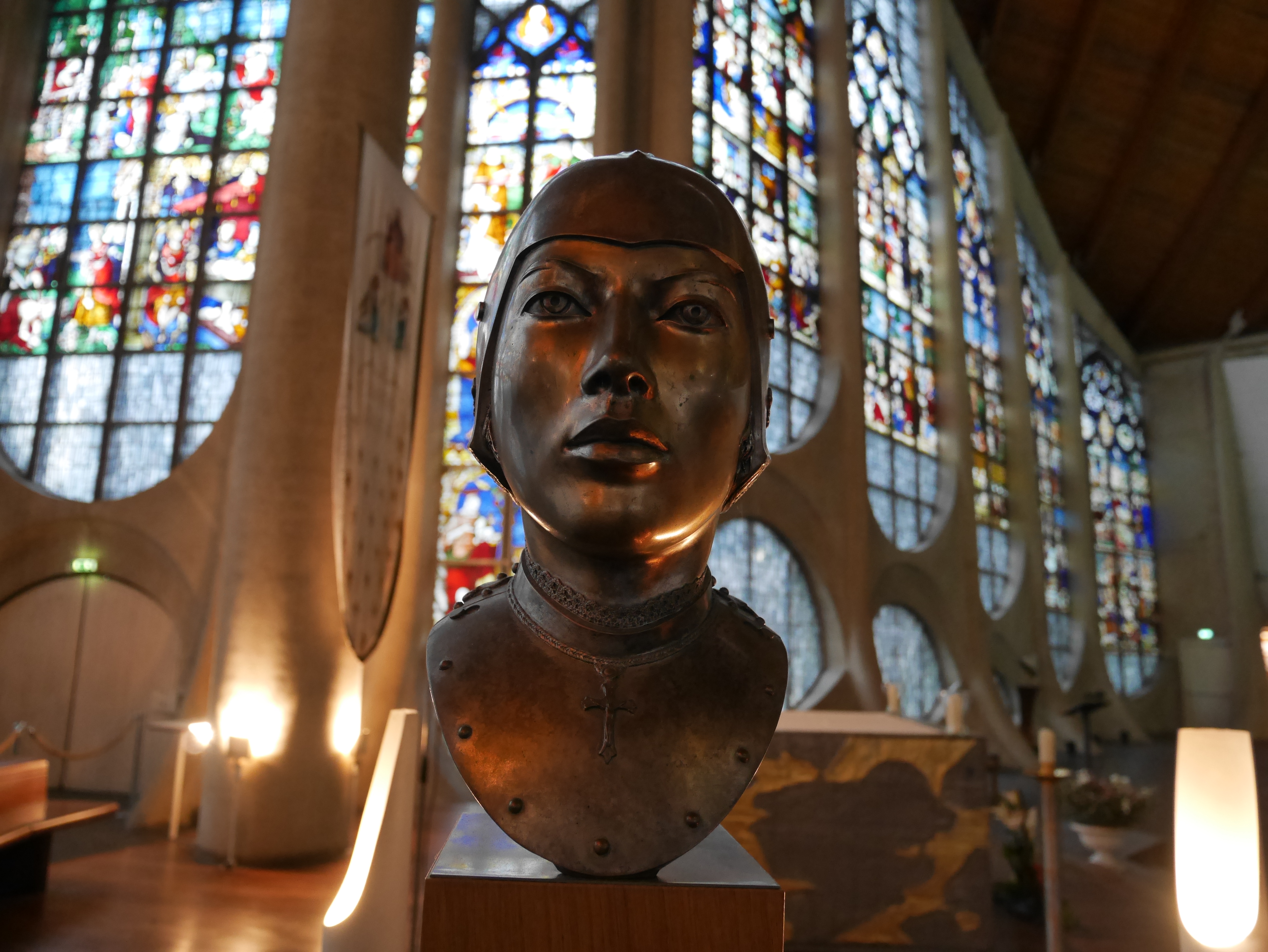 Une de mes églises préférées au monde. Cet endroit a une âme ! Une architecture moderne pleine de symboles : les vitraux Renaissance de l'ancienne église détruite pendant la Seconde Guerre mondiale, la nef en forme de coque de bateau inversée, les abat-jour en forme de poisson. Même si vous ne croyez pas au mythe de Jeanne d’Arc, vous êtes touché par cet édifice.