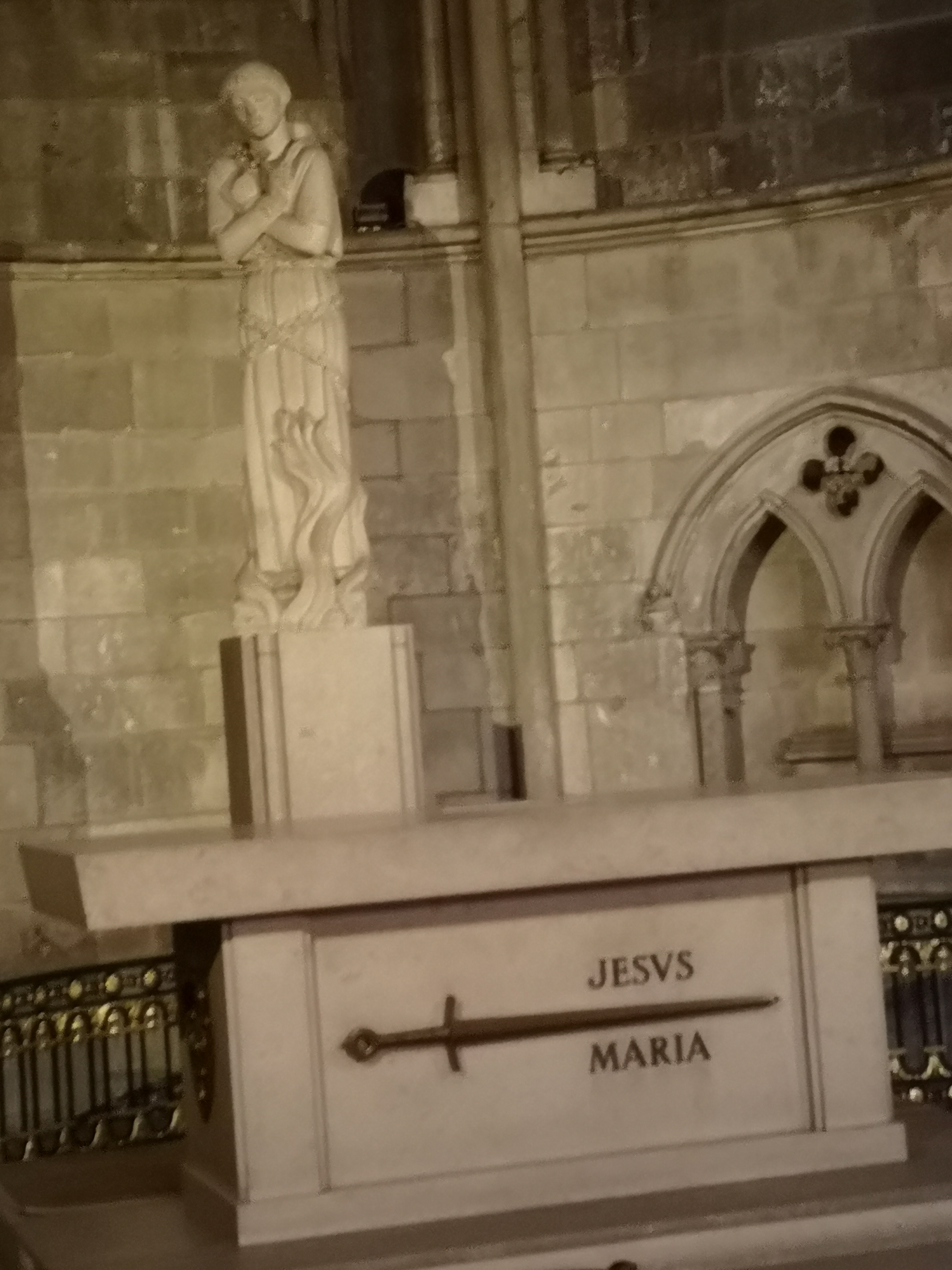 Déconcertante par cet audacieux mélange de modernité et classicisme! Les vitraux du choeur proviennent de l'ancienne église Saint Vincent et datent de la Renaissance. L'architecture est résolument moderne . Sur le site, le lieu du bucher est marqué par une croix qui s'élance vers le ciel comme une flèche. C'est un lieu historique faisant partie de l'histoire de France, c'est aussi pour les chrétiens un hommage à celle qu'on appelle toujours La Pucelle.