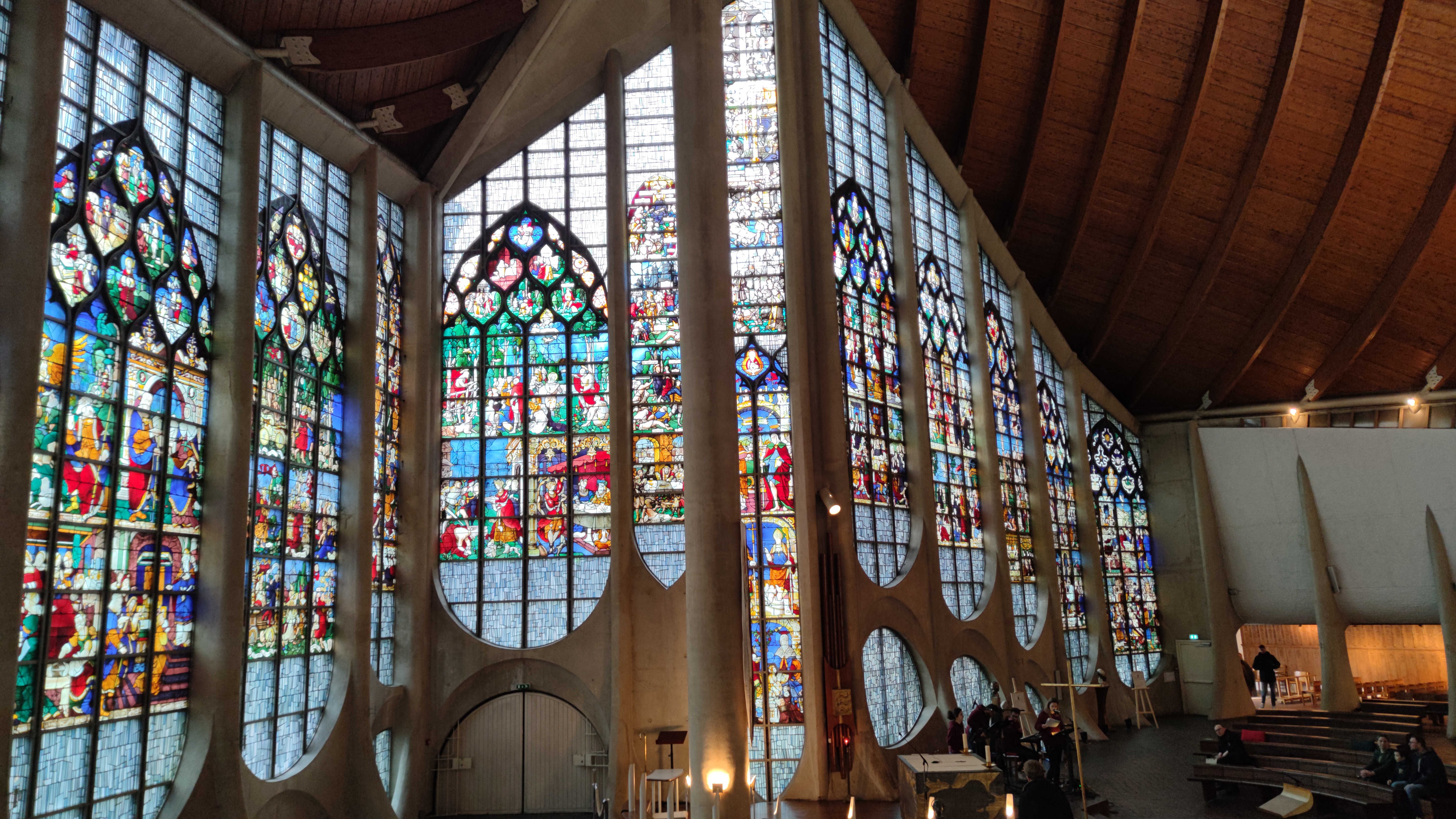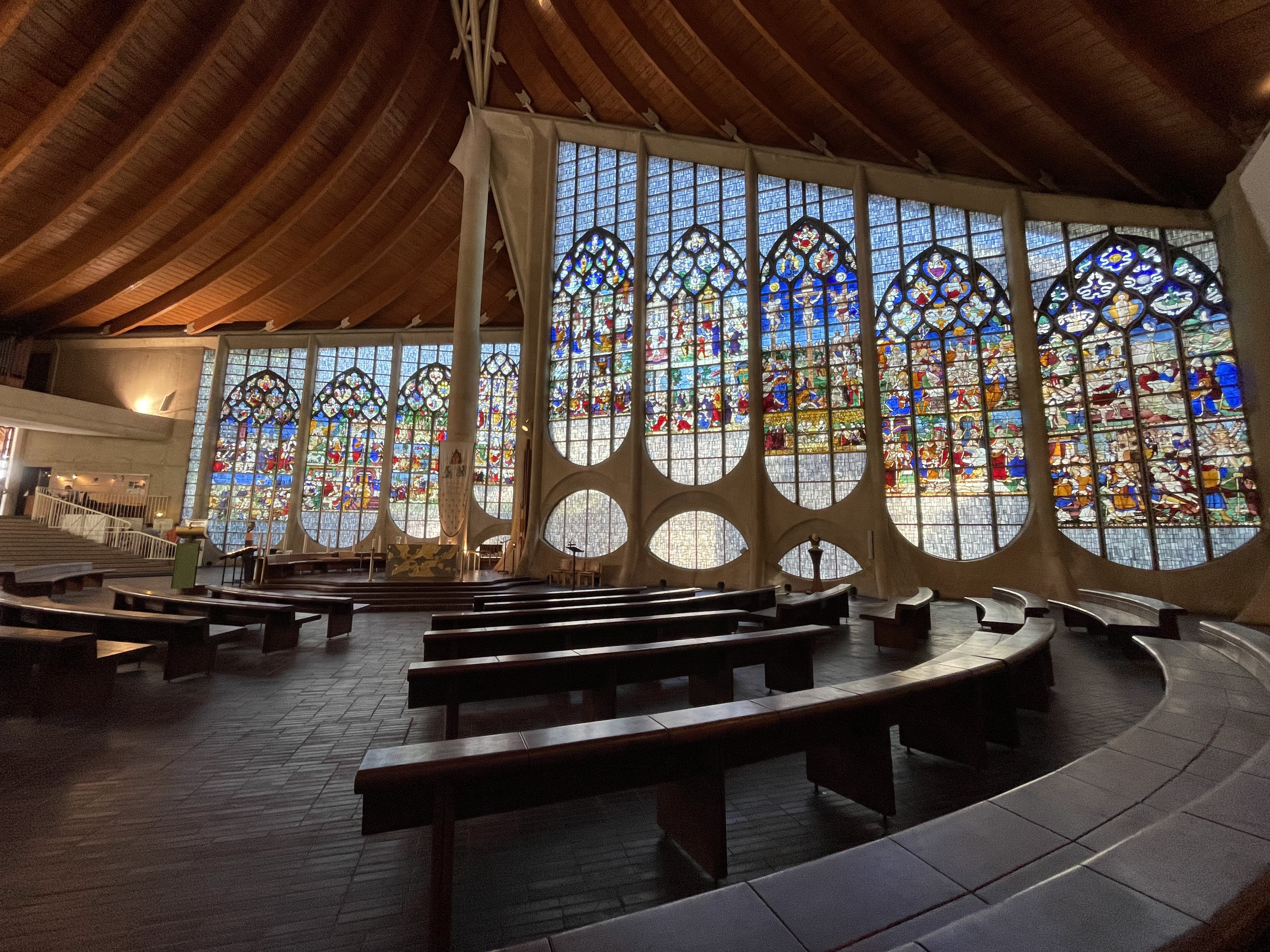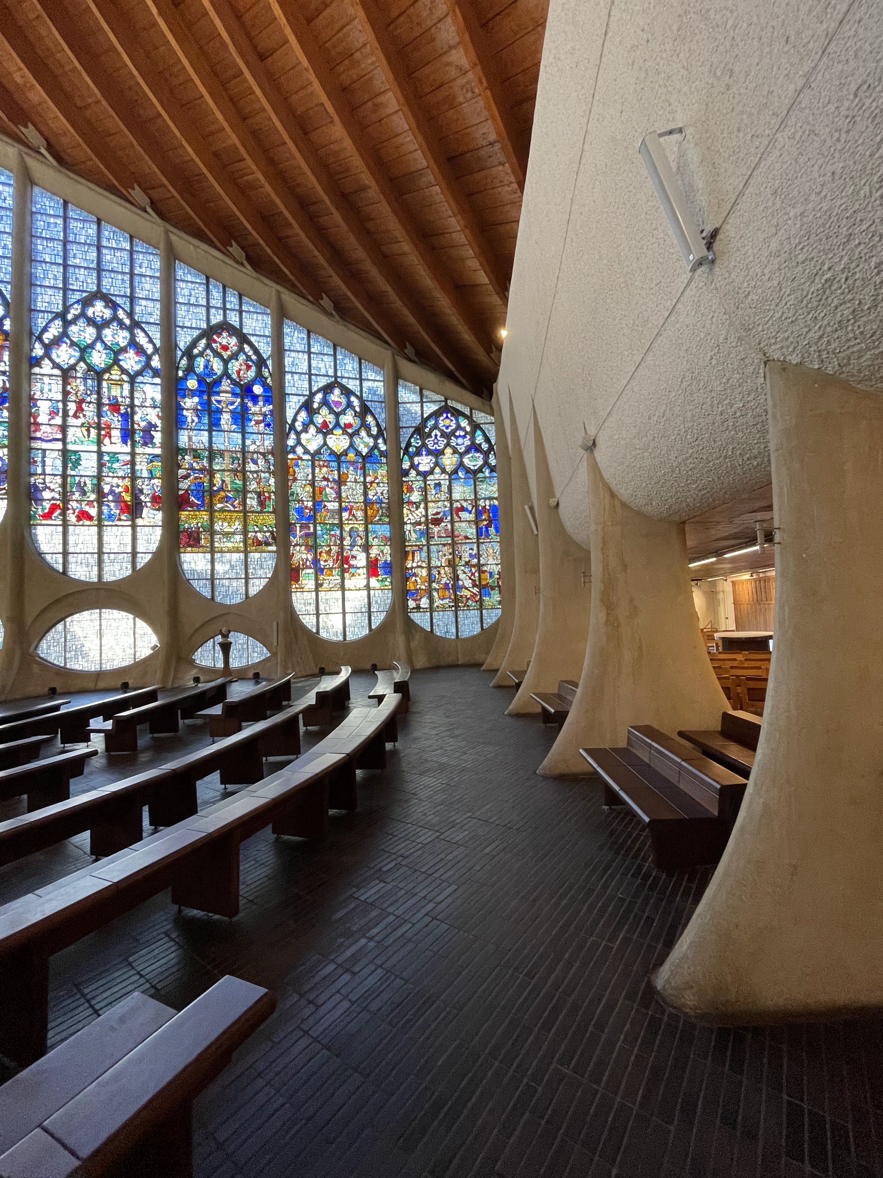 Probablement la plus belle église moderne du monde ? Incroyables vitraux relocalisés.