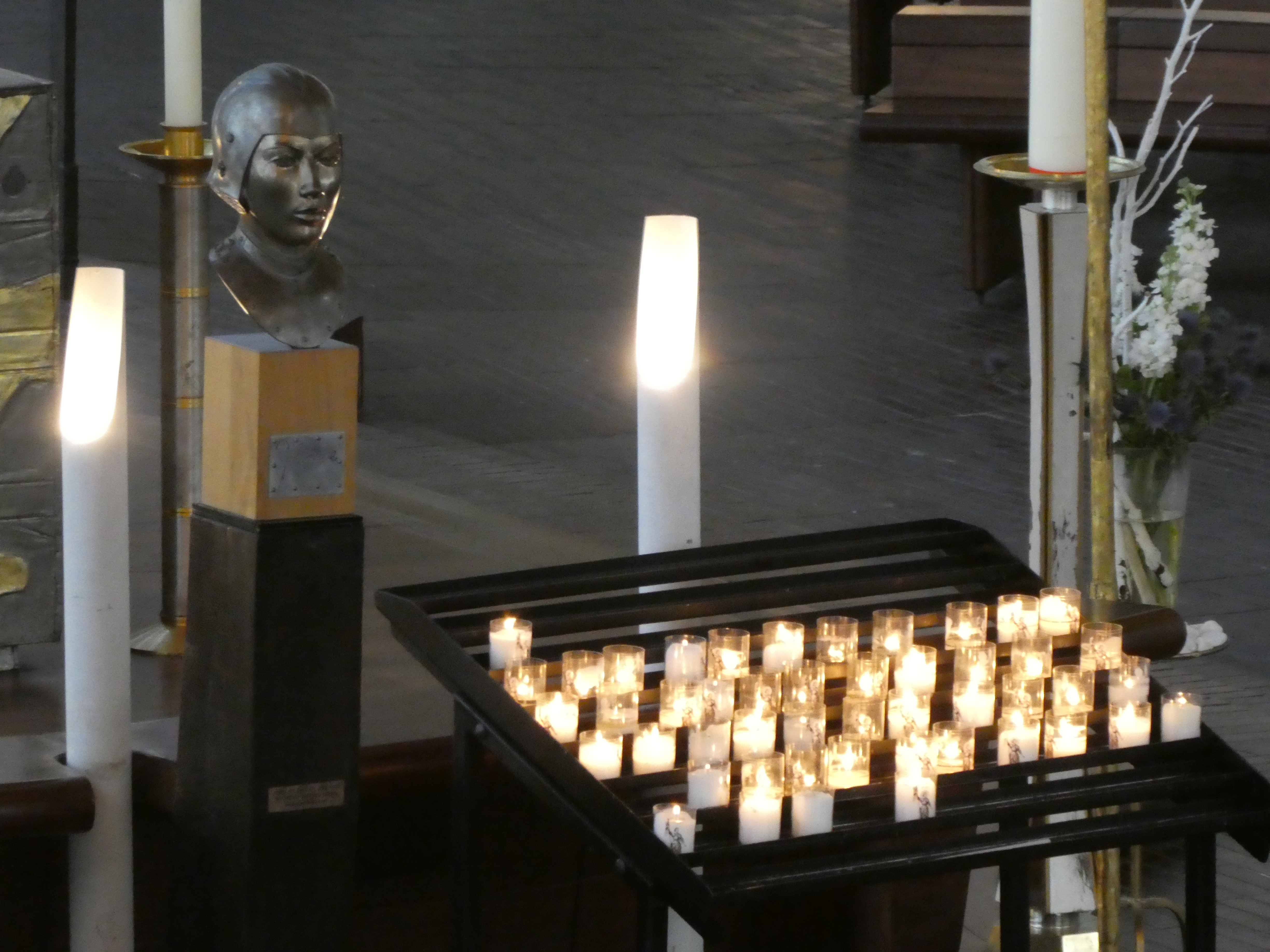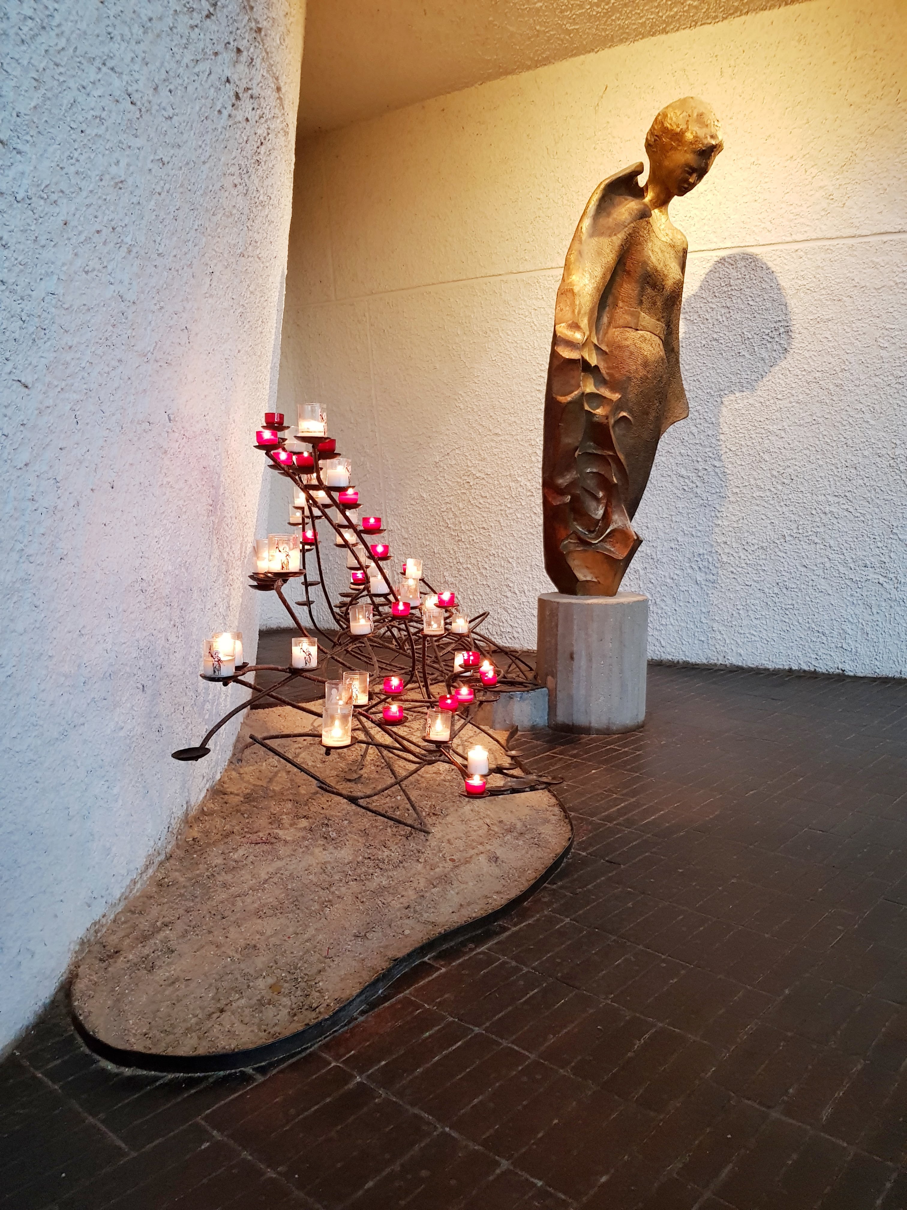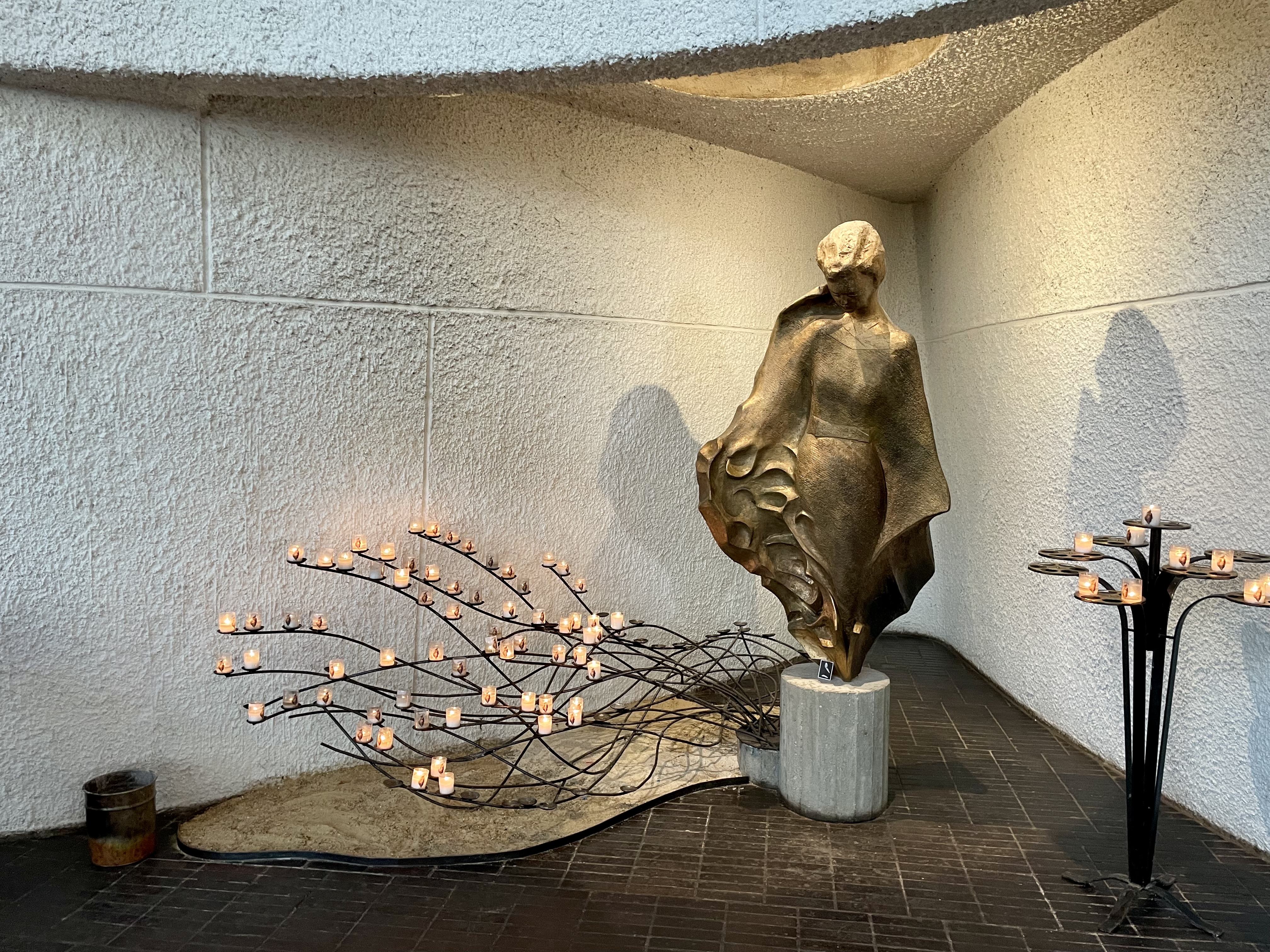 Hors aspect spirituel, un lieu à voir de dehors, hors guidage les gens ne voient pas le bûcher symbolisé, il suffit de tendre l'oreille, un truc pédagogique hors guide serait un plus. A voir de dedans pour convertir (...) quelqu'un à l'architecture contemporaine. Juste une merveille, un lieu calme où l'on peut se retrouver ne serait-ce que soi-même. Plus pour ceux dont je ne suis pas si affinités. Faune pas très engageante le soir à gauche quand on regarde la grille d'entrée de l'église, sans pour autant que ce soit un endroit dissuasif.