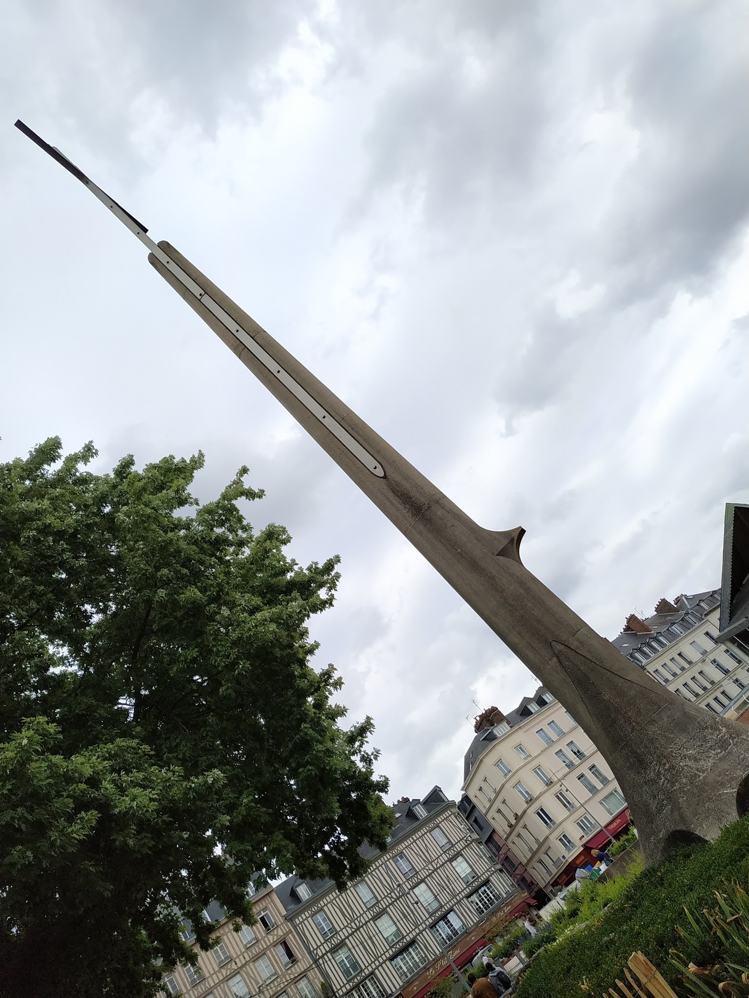 Geste architectural prétentieux et laid qui a mal vieilli. Les rouennais devront le subir longtemps; il est classé ! Dommage pour cette jolie place qui en a perdu sa fonction.