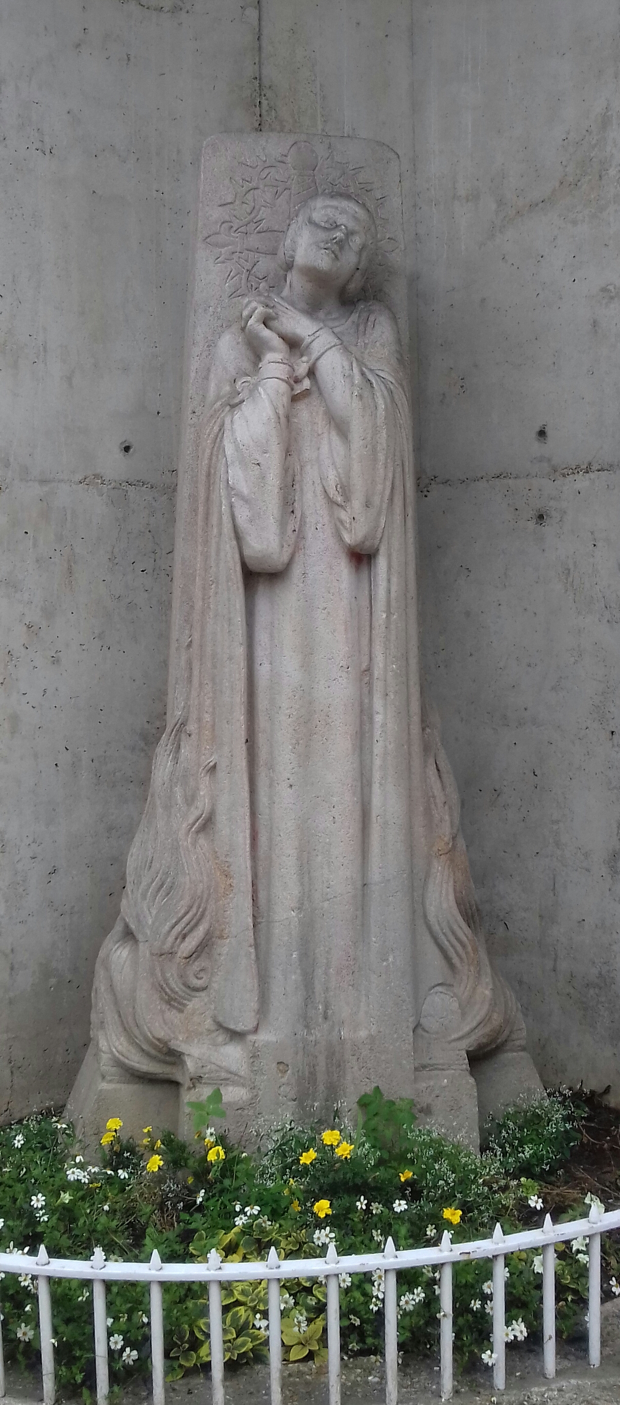 Une très belle église moderne, à proximité immédiate du lieu du bûcher de Jeanne d'Arc. Une grande voûte ondoyante, les vitraux récupérés de l'église Saint-Vincent, et une statue de Jeanne auprès de laquelle on peut allumer et laisser une bougie.