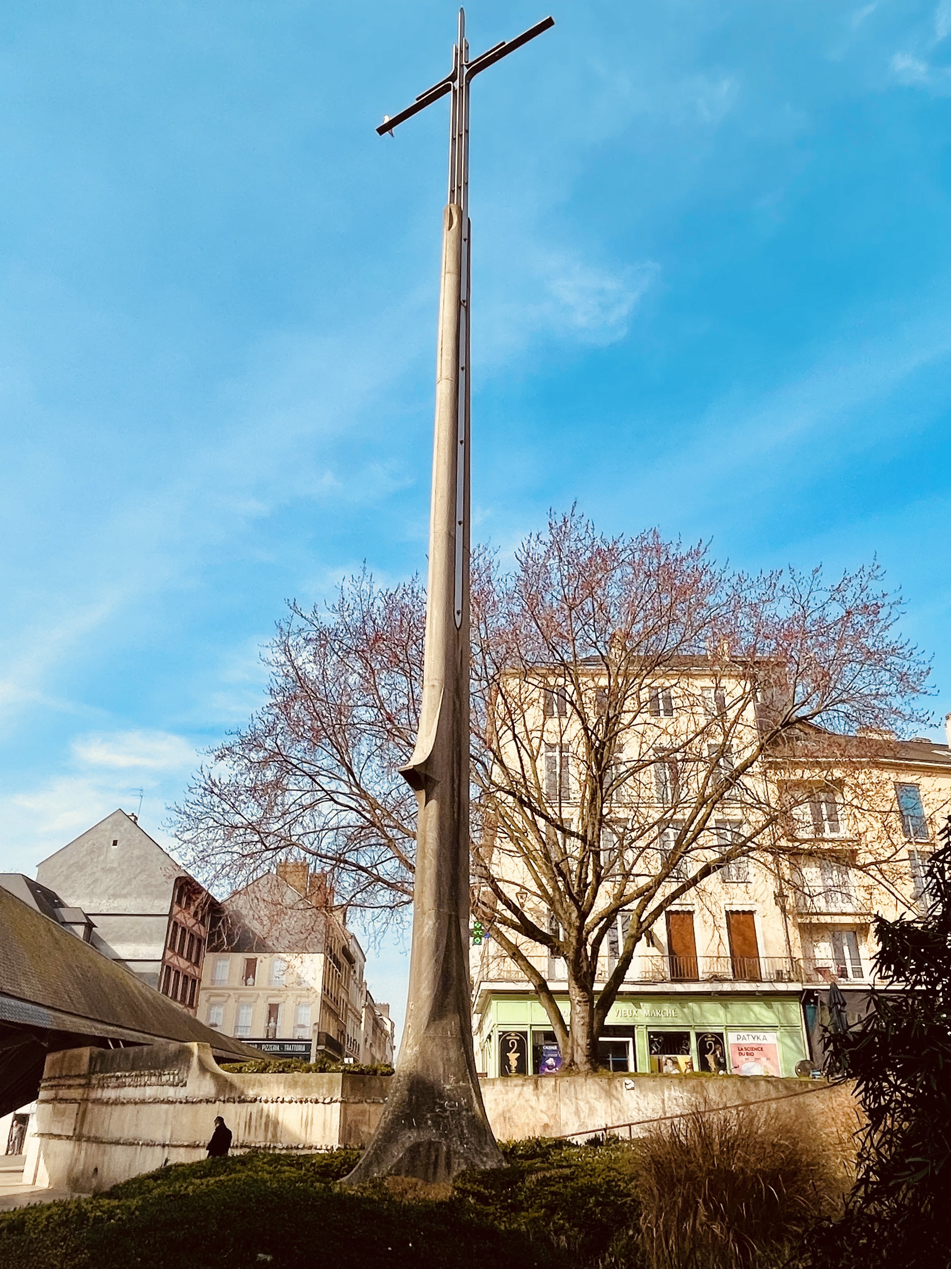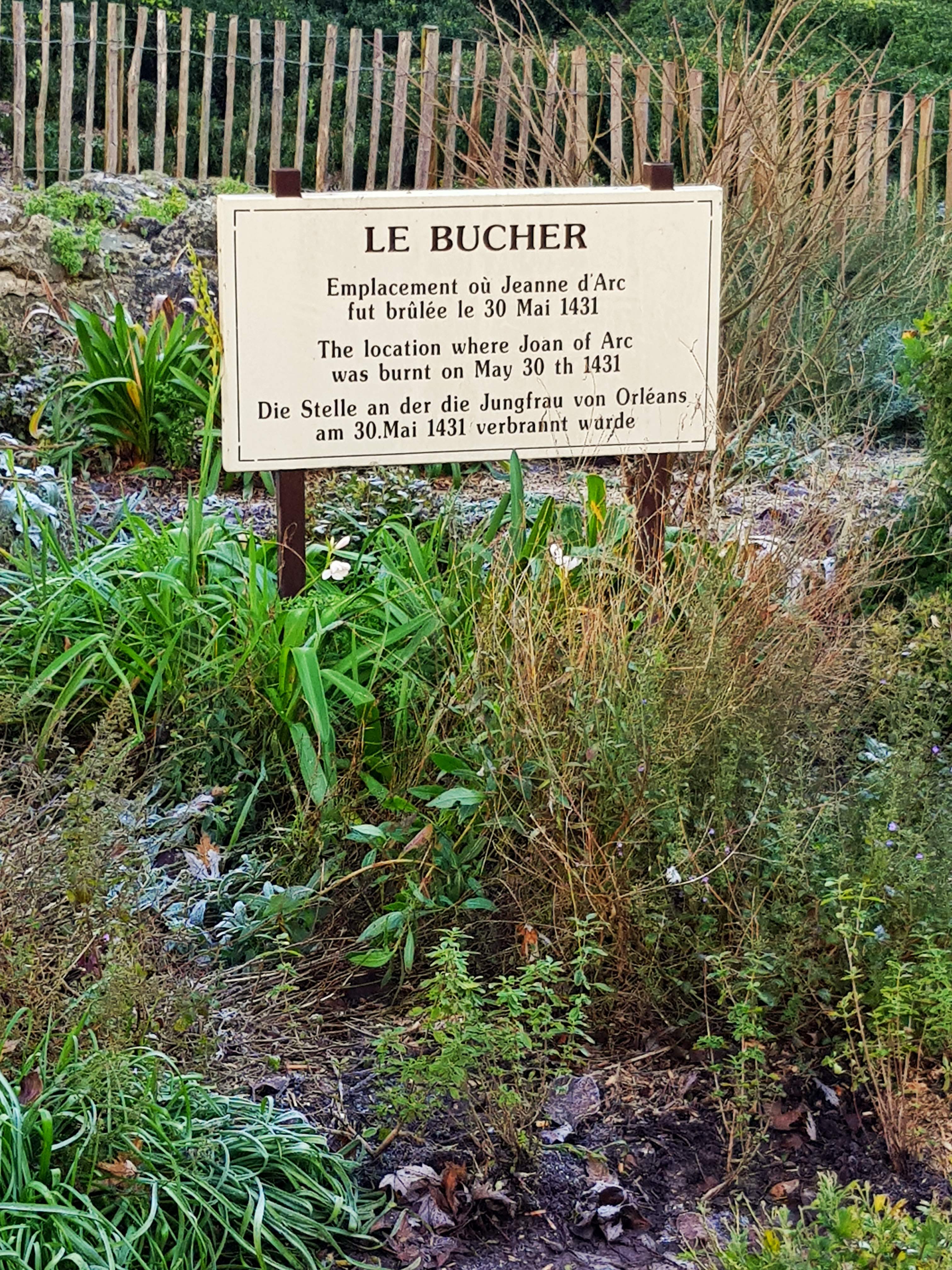 De l'église, vous voyez la croix plantée pour marquer l'endroit où Jeanne d'Arche a été brûlée.