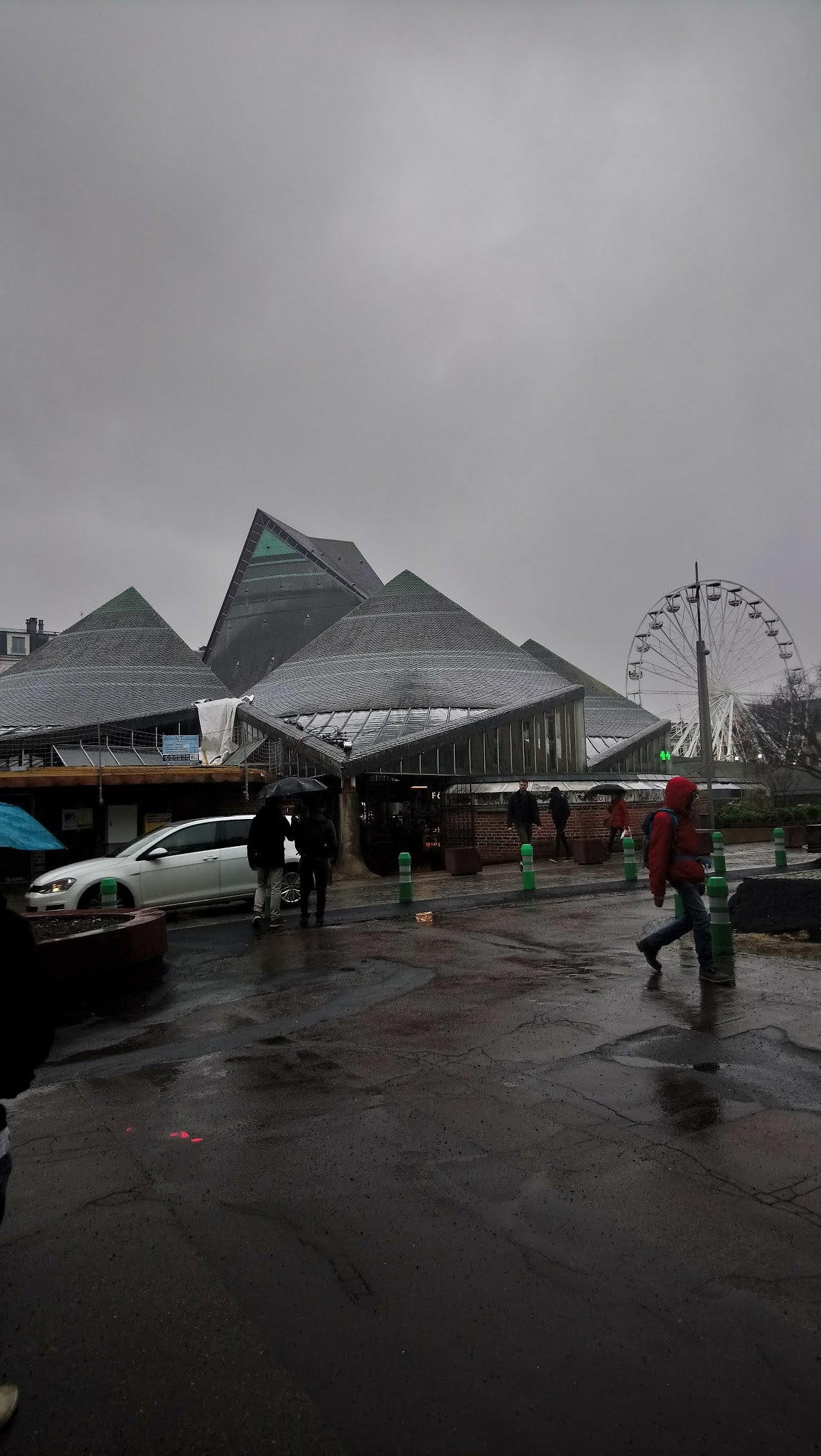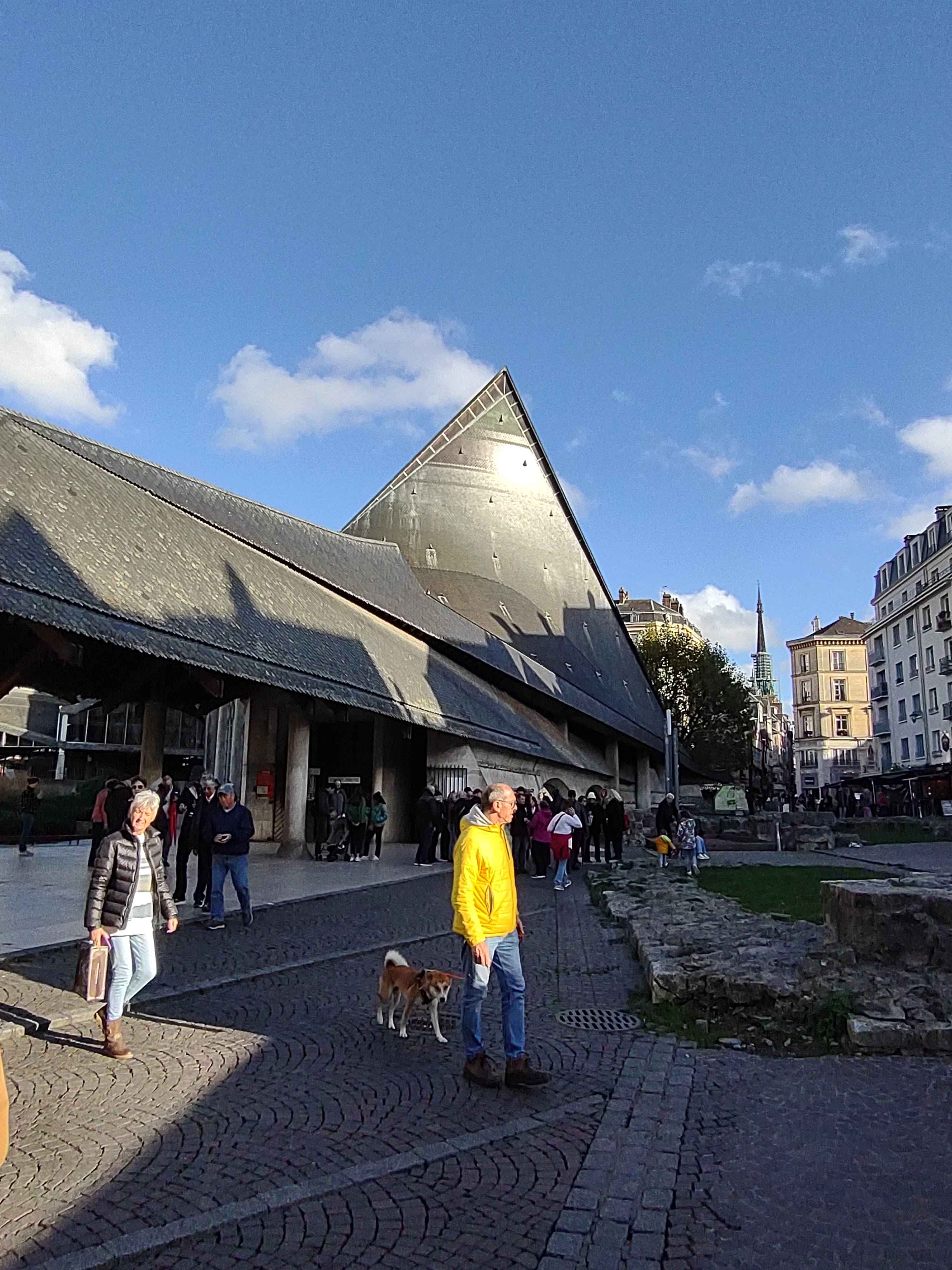 L'architecture extérieure est très intéressante. Moderne, elle intègre bien le marché, animé. L'architecture intérieure l'est tout autant avec son cœur très arrondi. Beau vitraux et donc belle lumière les jours de beau temps.