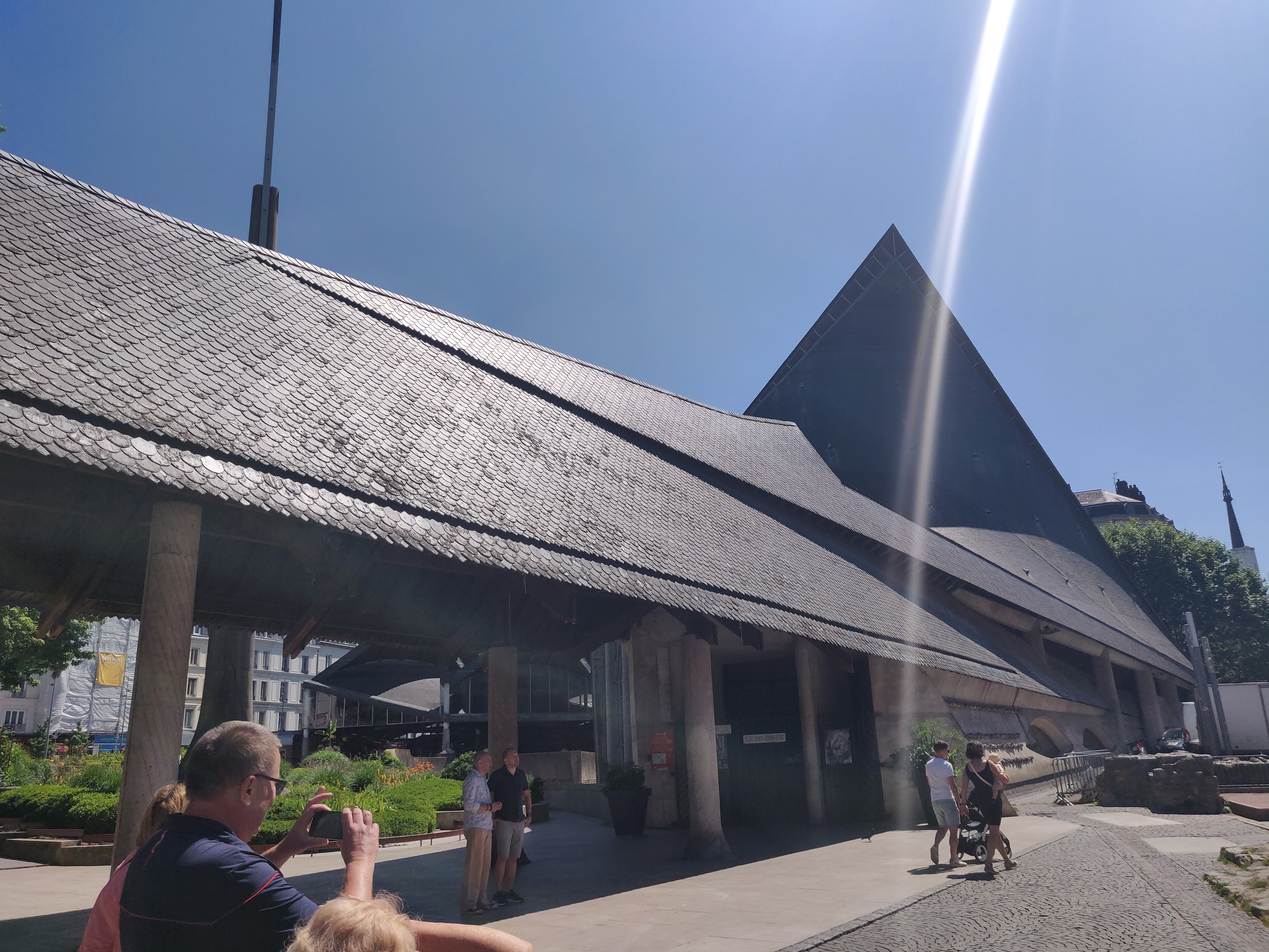 Impressionnant bâtiment insolite ayant la forme d'un bateau viking à l'envers.