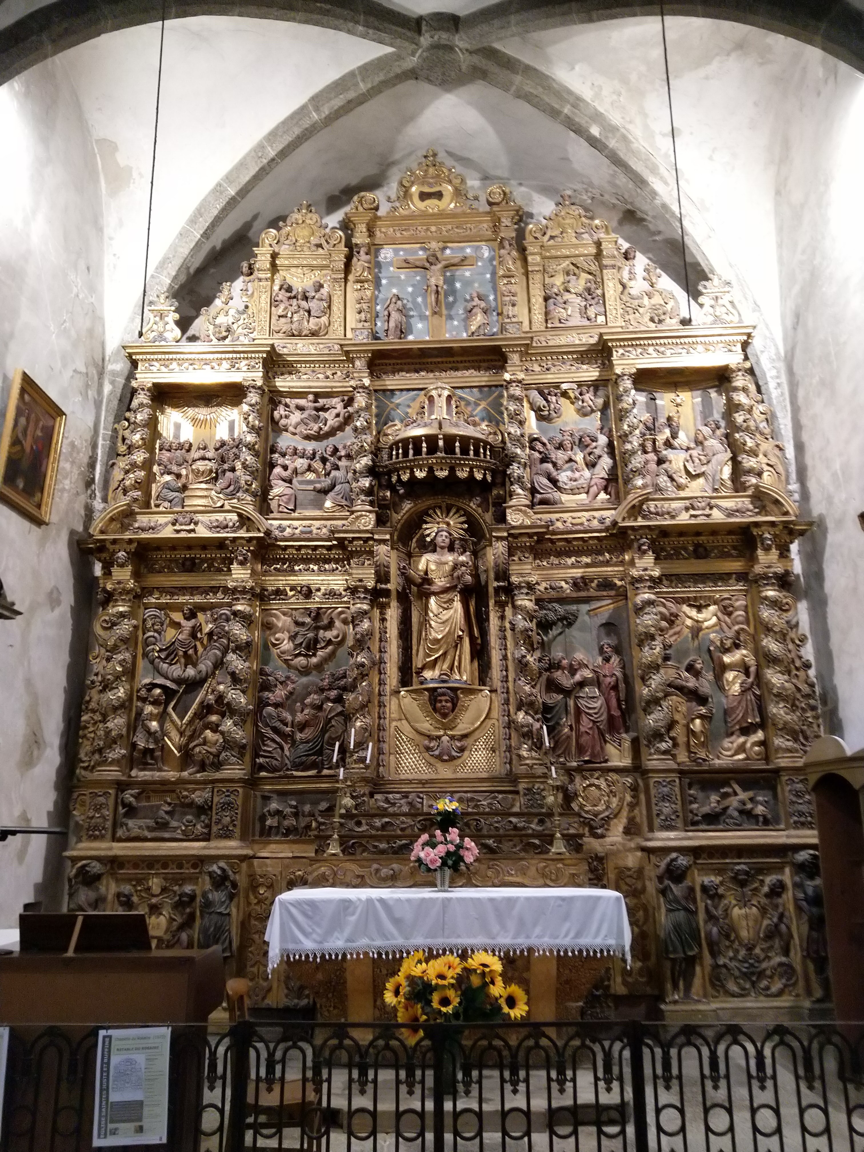 Magnifique eglise. Style entre roman et gothique. Tres belles statues et retables baroques. A visiter avec respect.