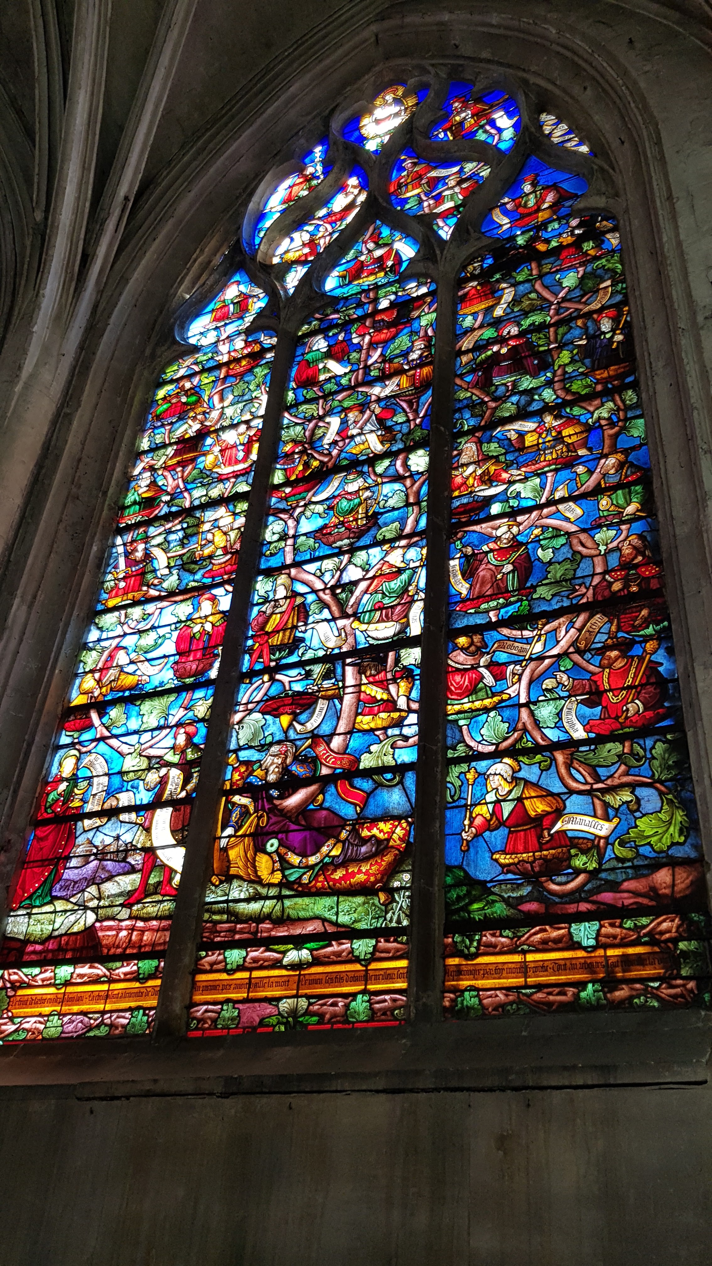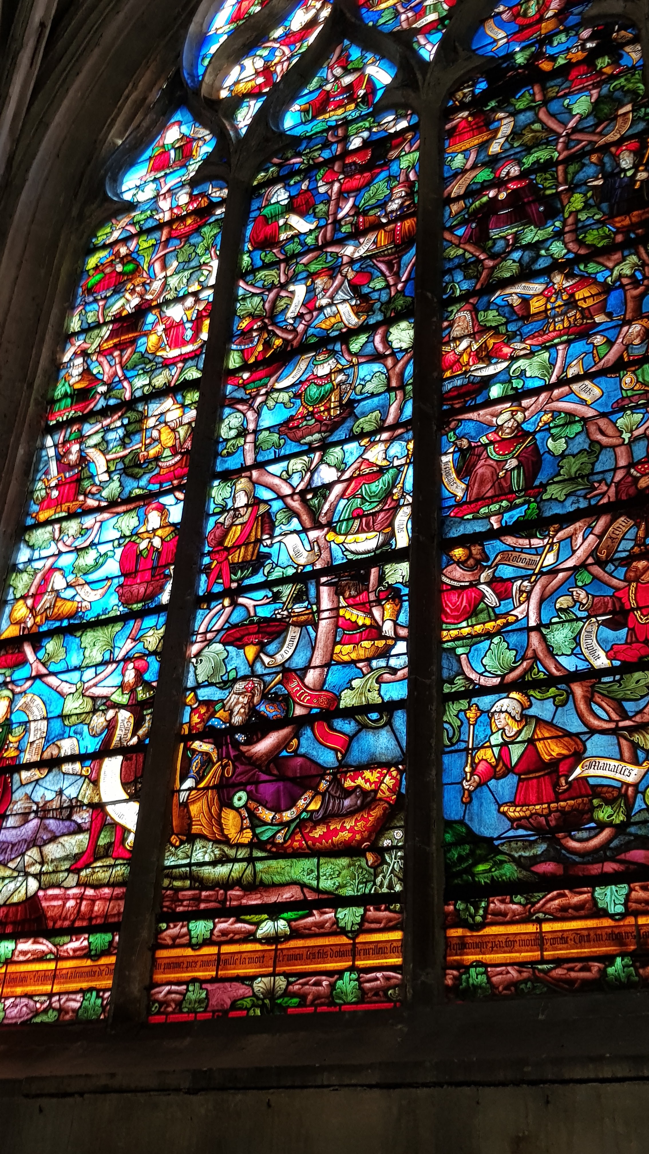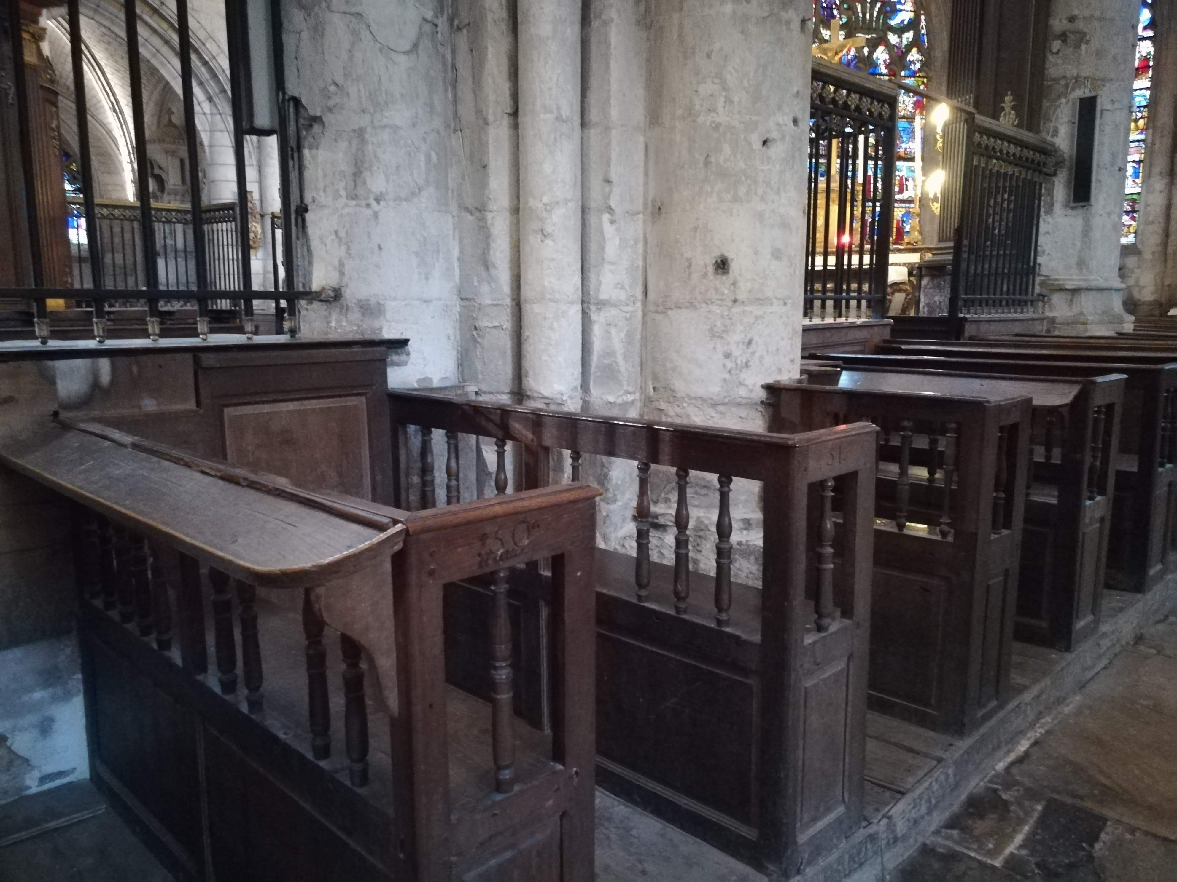L'étonnant vitrail de la création du monde , les dentelles de pierre, les sculptures sur bois ou pierre ...Une visite ne suffit pas pour tout voir, pour apprécier....à bientôt! J'ai adoré le petit Jardin des Innocents juste accolé. Ces structures reprenant les courbes des arcs de voûtes, ces tressages en métal... malgré sa petitesse, il est possible de s'isoler ....se perdre!
