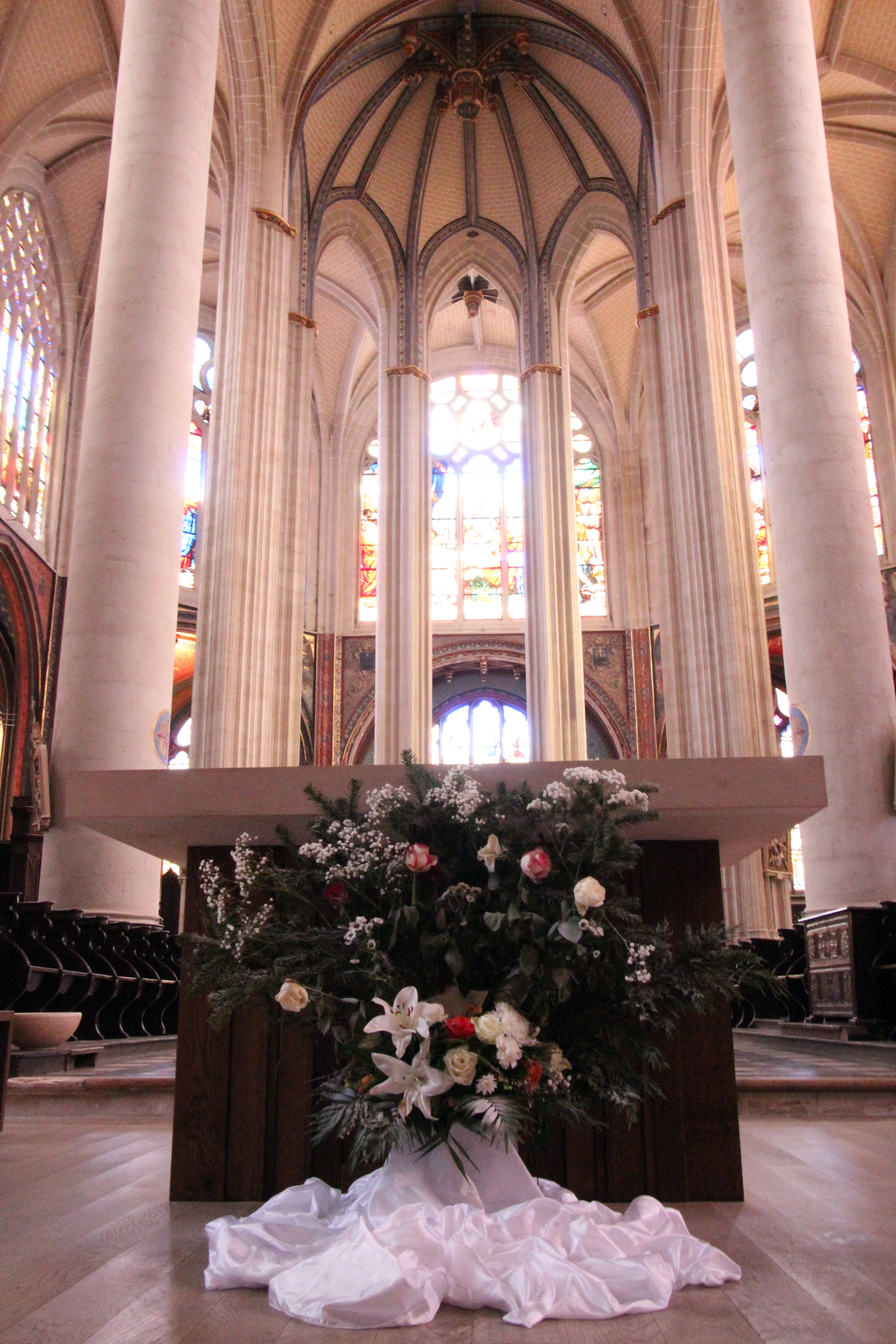 Vitraux du 19 ème très lumineux, chevet plat unique.