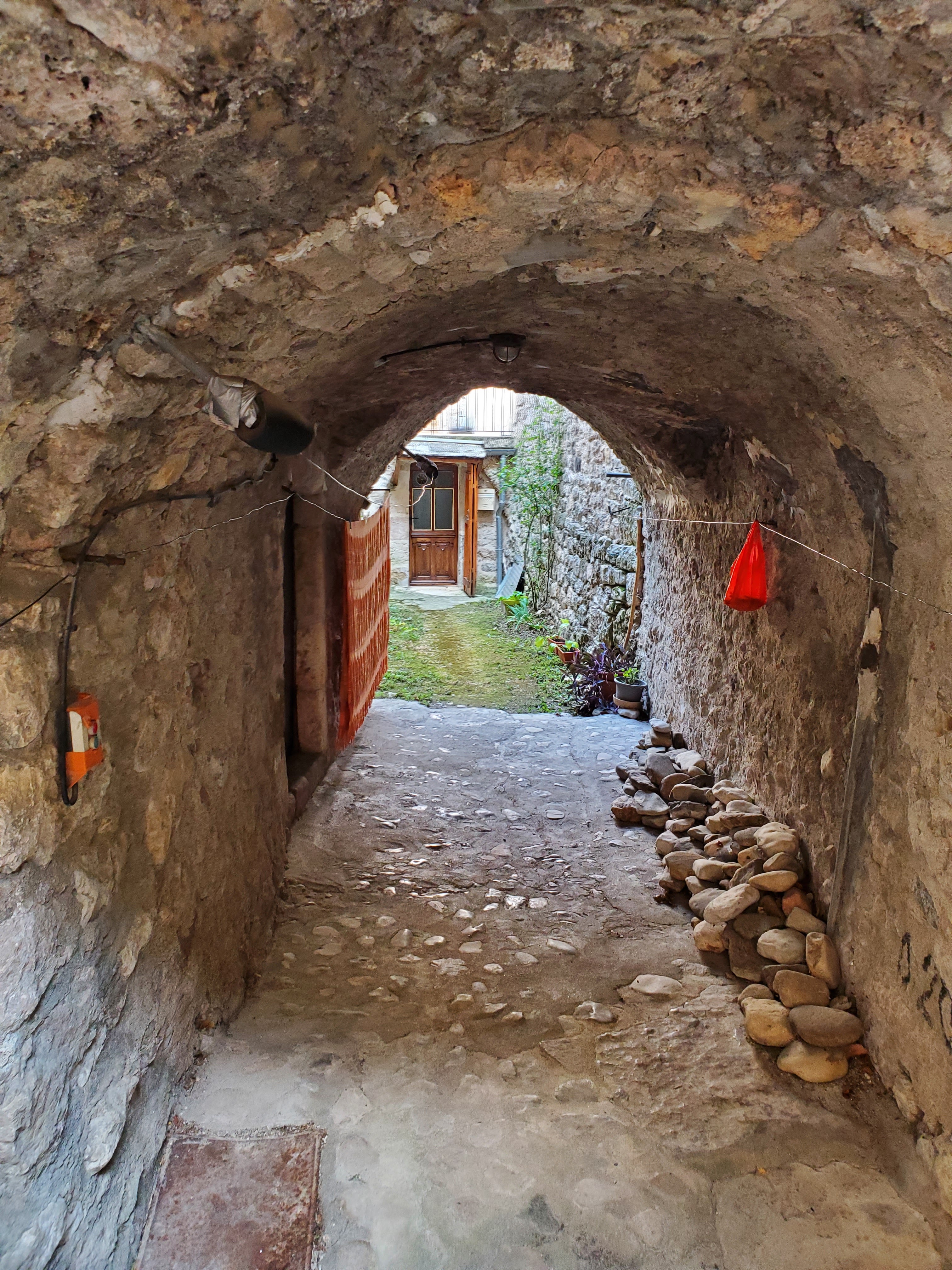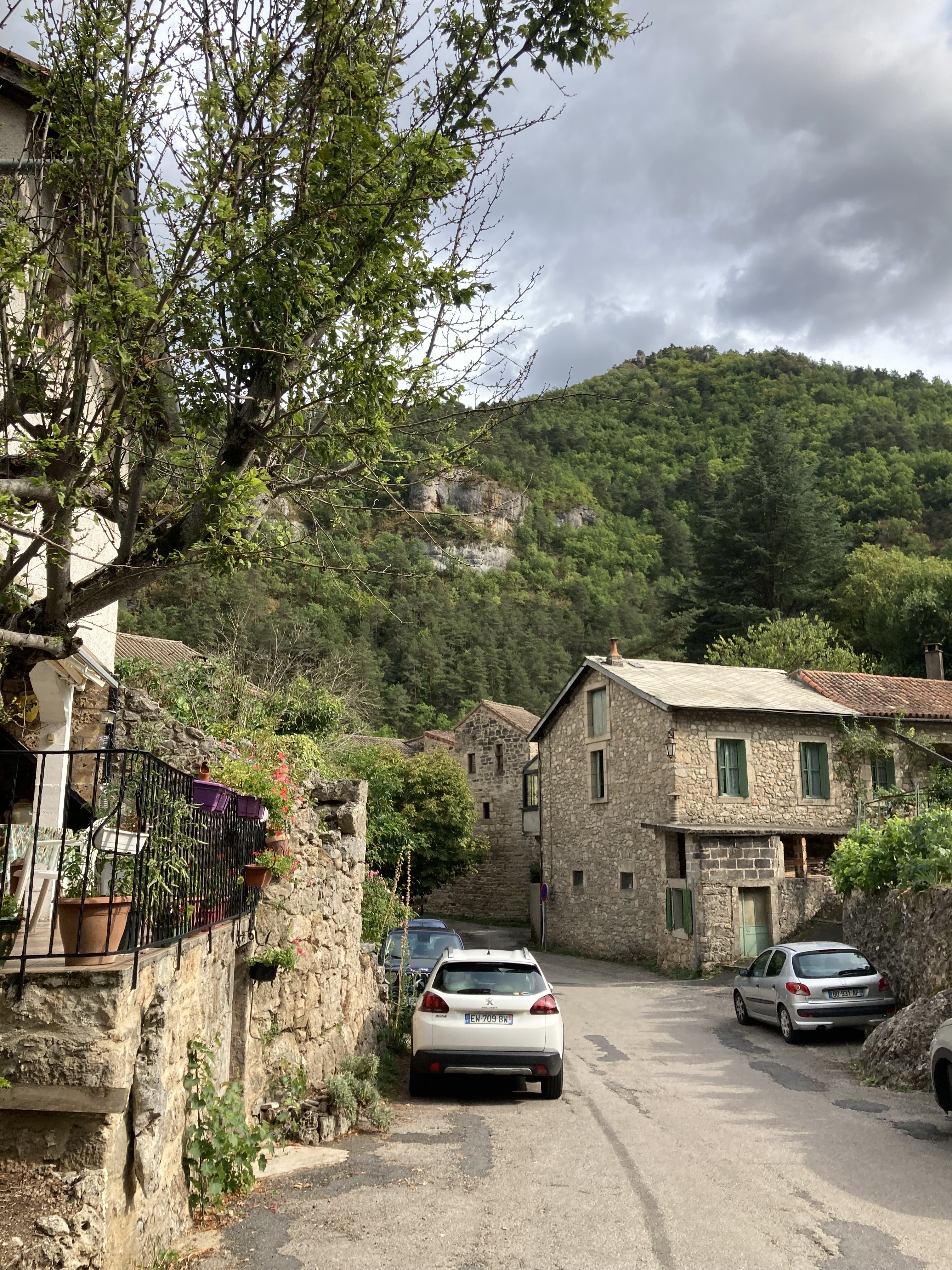 Arrivés par la petite route sinueuse des ravins de Combescure, Riou sec … la balade à moto était superbe. Dans les derniers virages, la vue sur le village est vraiment jolie. Après un passage entre les maison, arrivée en plein centre sur la départementale traversante au pied d’un super petit restaurant.