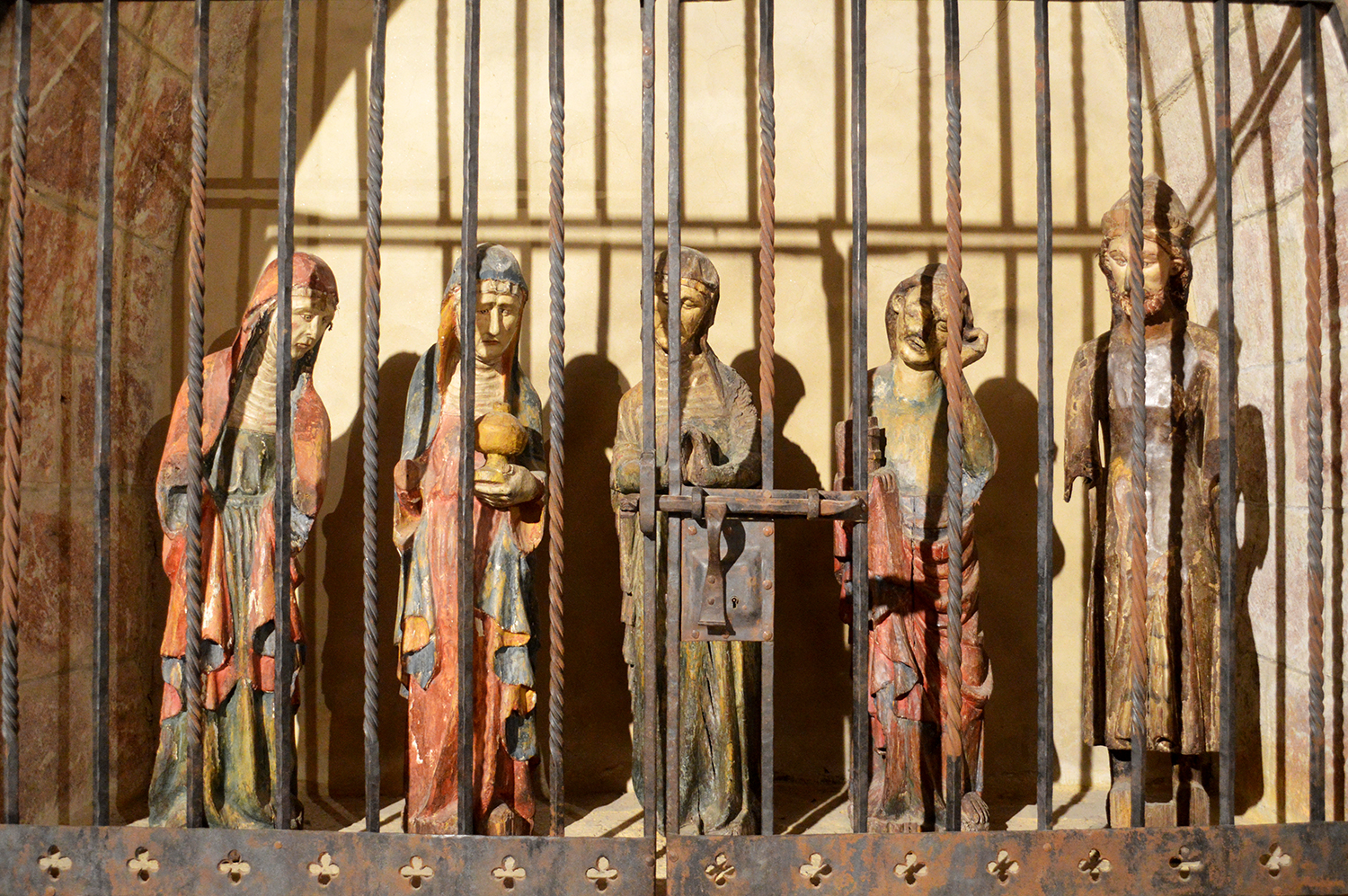Très belle architecture romane, beau retable et statues en bois peint remarquables