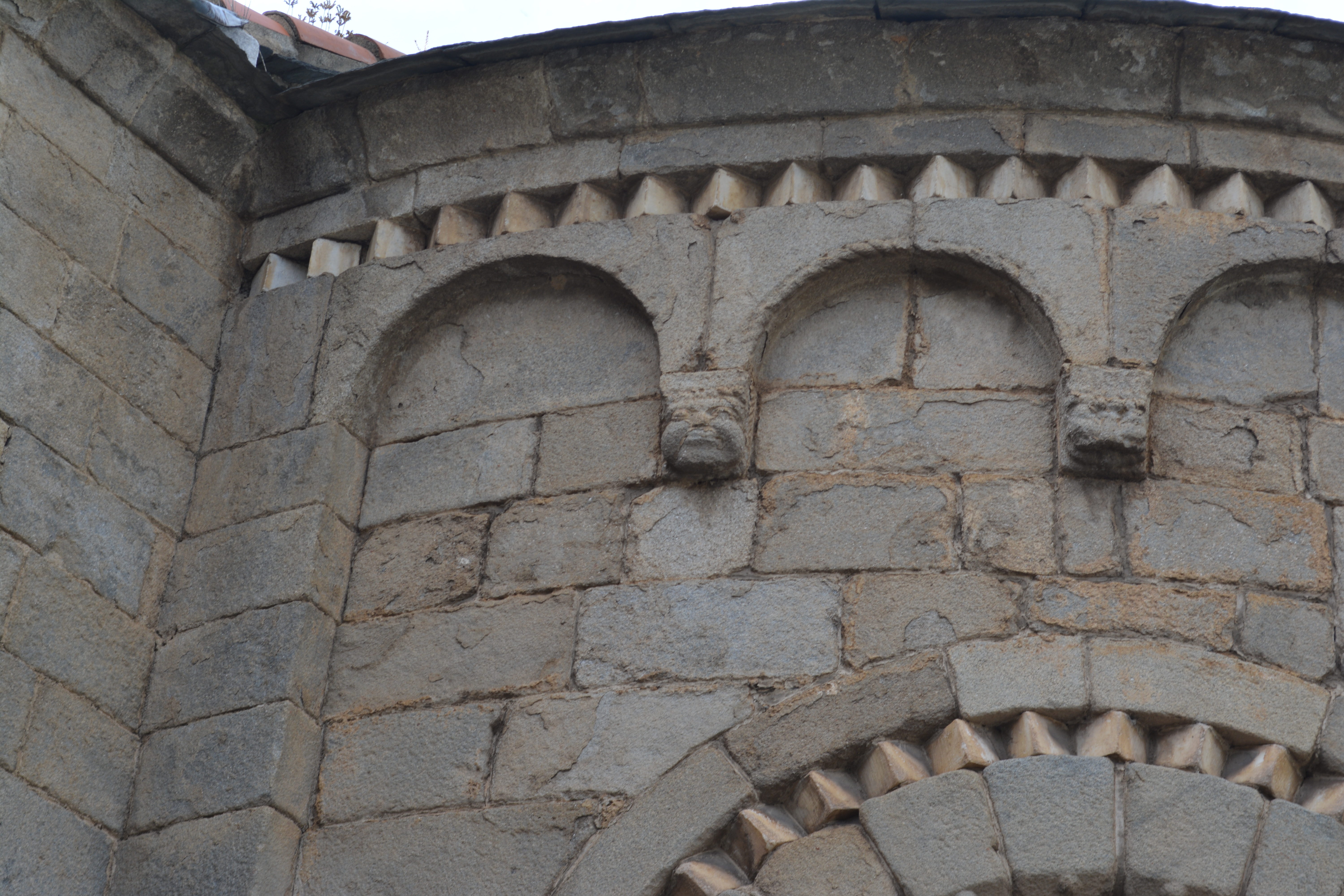 Une couverture romane avec le marbre rose caractéristique du Conflent.