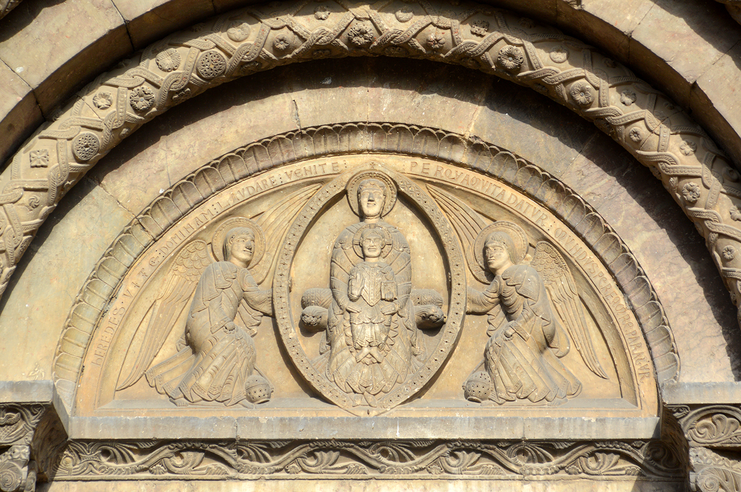 Très belle église romane en particulier le porche de l'entrée en marbre rose.