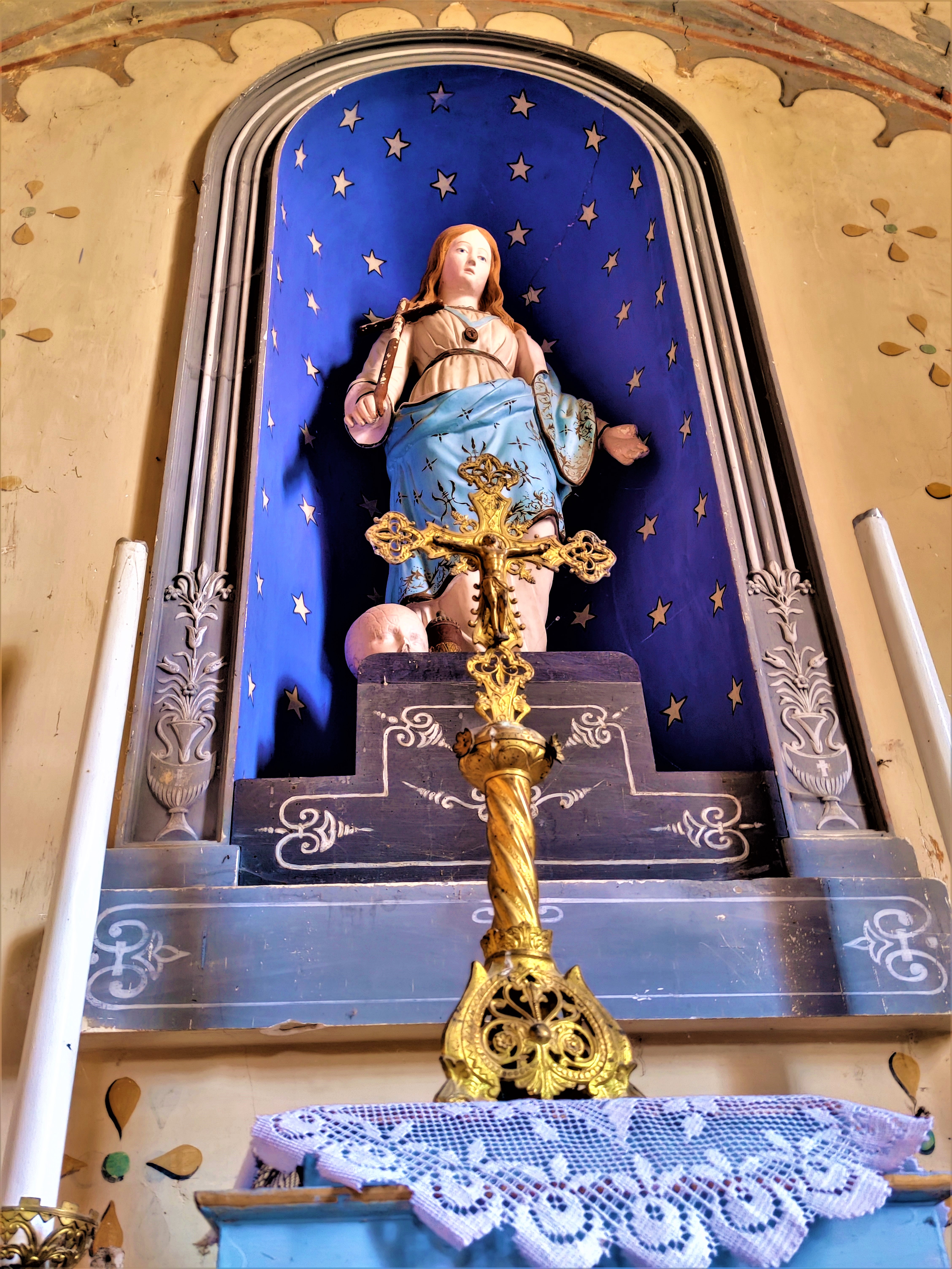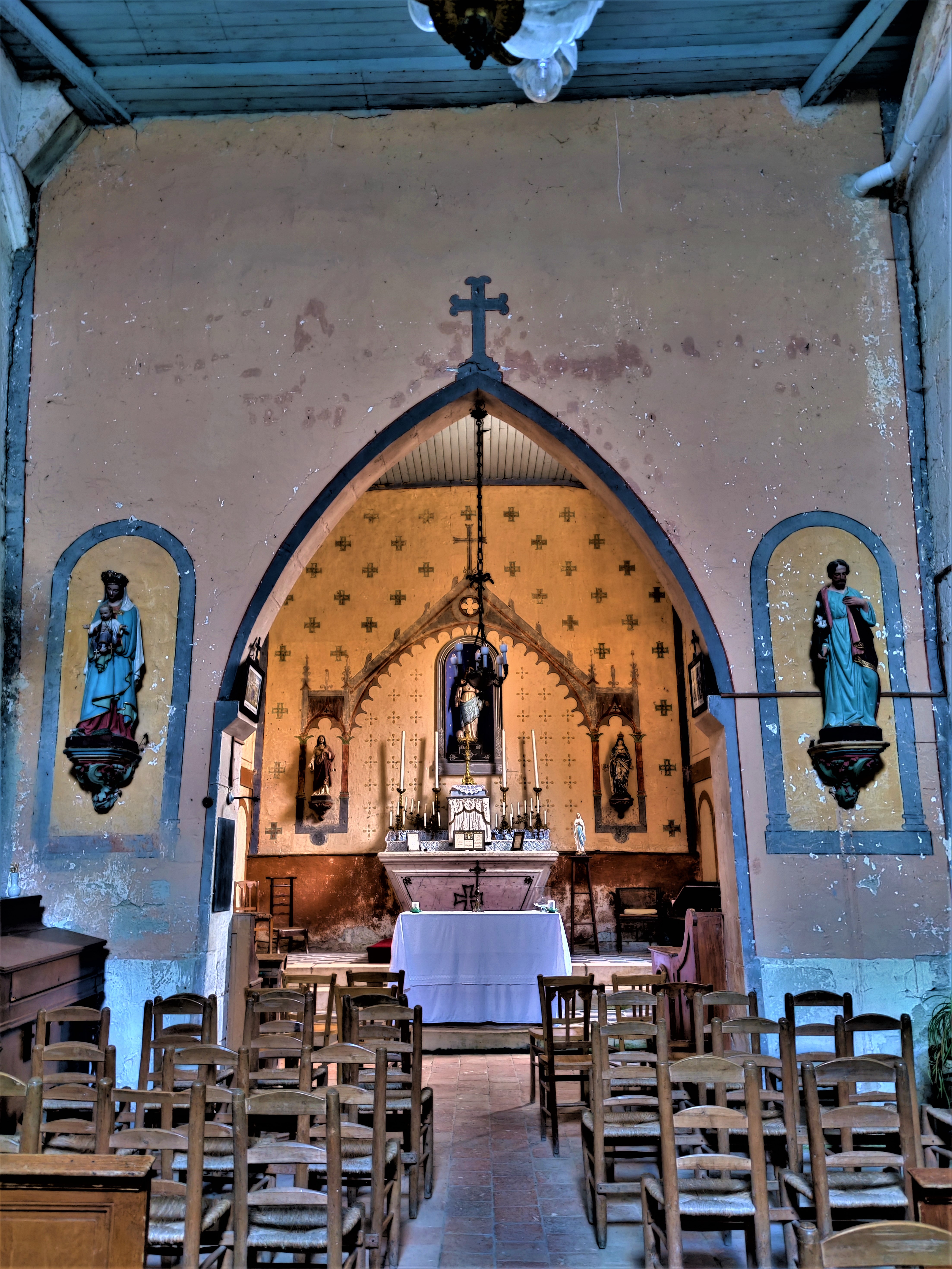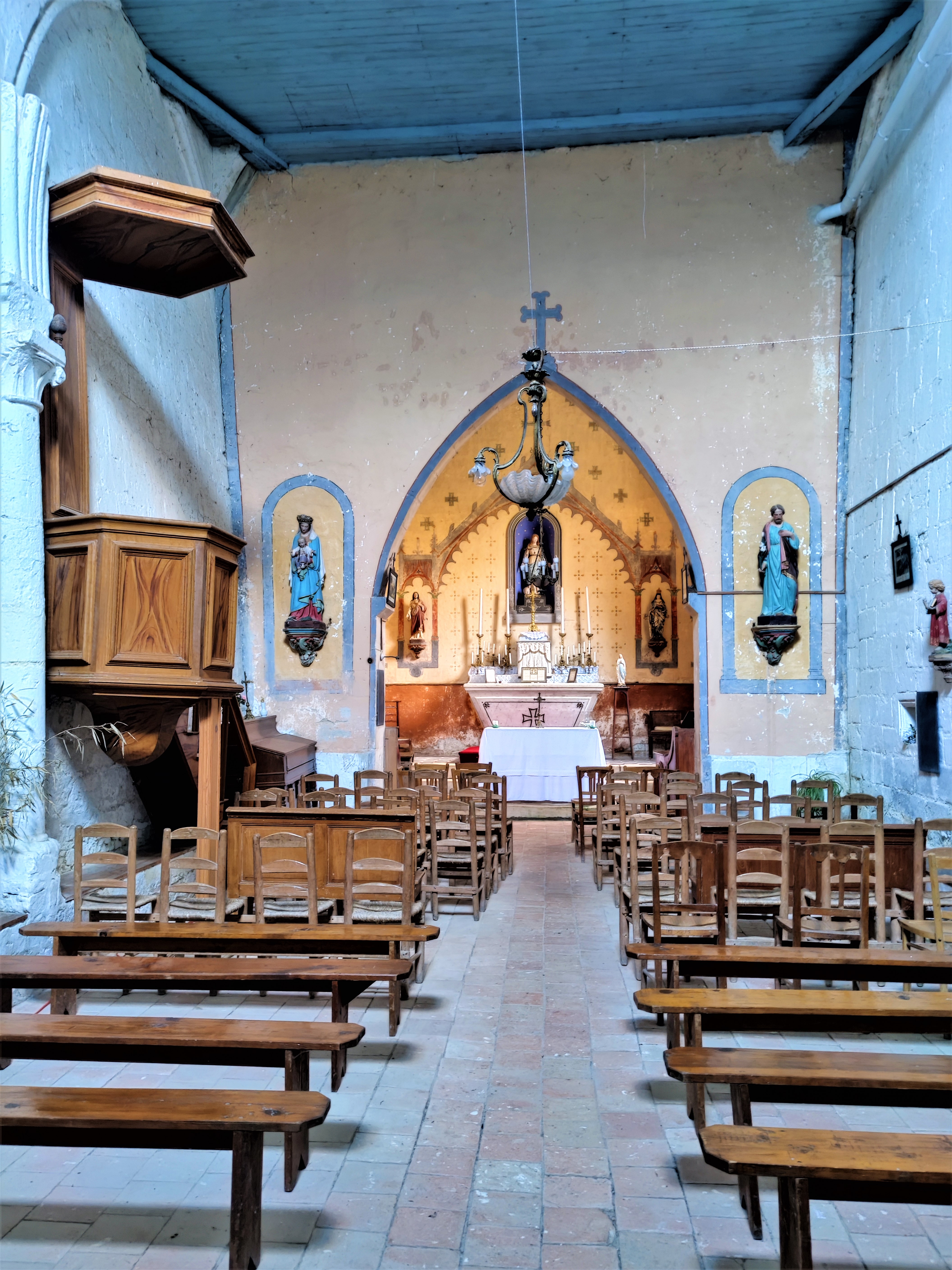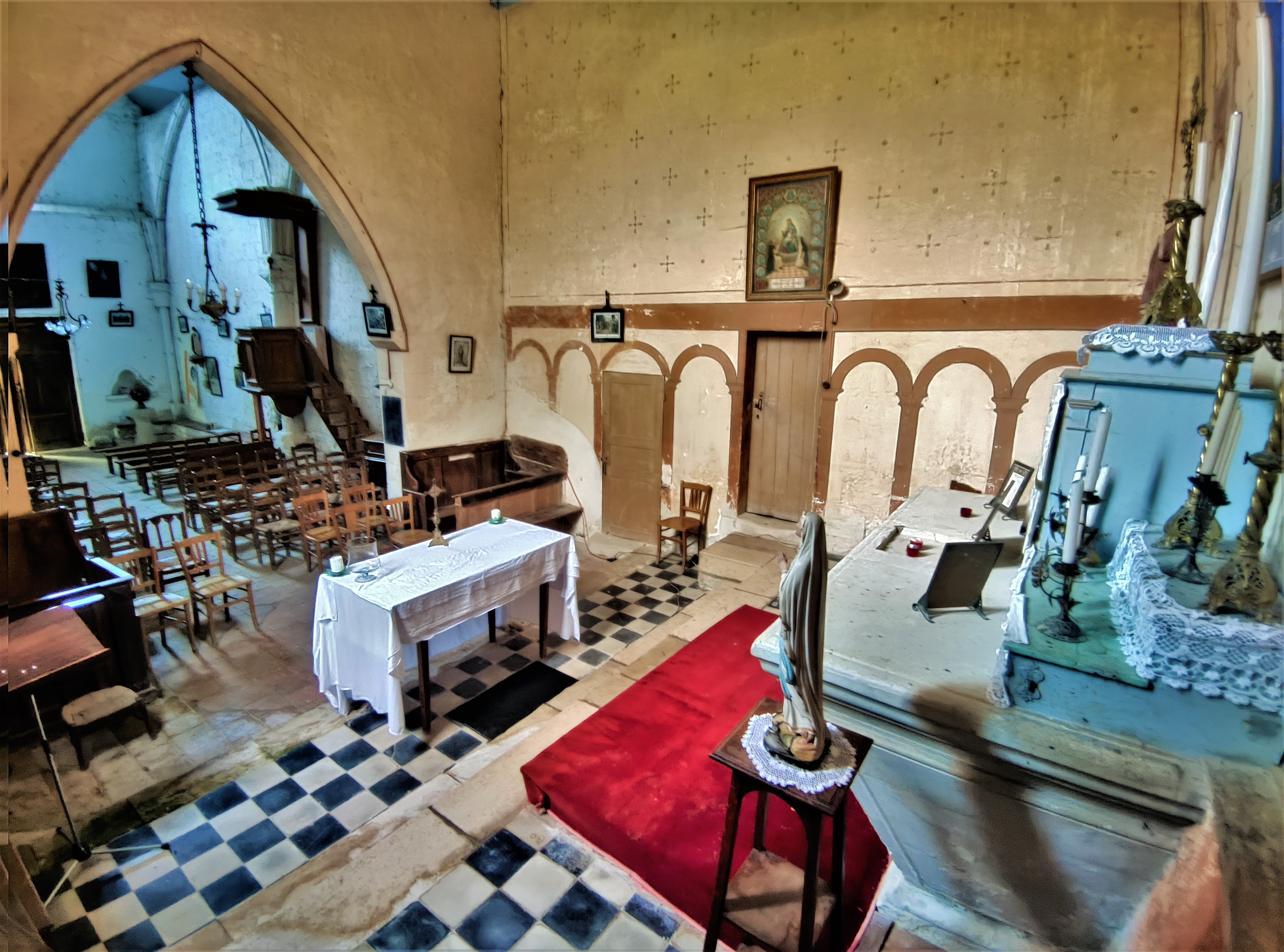 Preuve de l'attachement des paroissiens et des citoyens à leur patrimoine, c'est une église ouverte et accueillante. Une église accueillante ouverte quotidiennement par des paroissiens, son origine remonte au 13ème. Construite sur les hauteurs, c'était l'église de la paroisse de Prinçay et de l'ancien prieuré attenant. Elle fut vendue à la révolution (1791) à trois paroissiens qui empêchèrent son utilisation comme carrière de pierres ou bâtiment agricole. Son affectation cultuelle lui fut rendue en 1852. Au 19ème siècle, on reconstruisit la façade et on agrandit l'église à l'Est en perçant le chevet plat et en construisant un nouveau chœur. Les vestiges de l'église primitive apparaissent dans la nef, arcatures, colonnes, et bases des arcs de la voûte. Aujourd'hui, la nef et le chœur sont plafonnés en lattis, des décors peints agrémentent l'ensemble de l'édifice. Découvrir cette église fut un moment bien agréable, preuve de l'attachement des paroissiens et des citoyens à leur patrimoine.