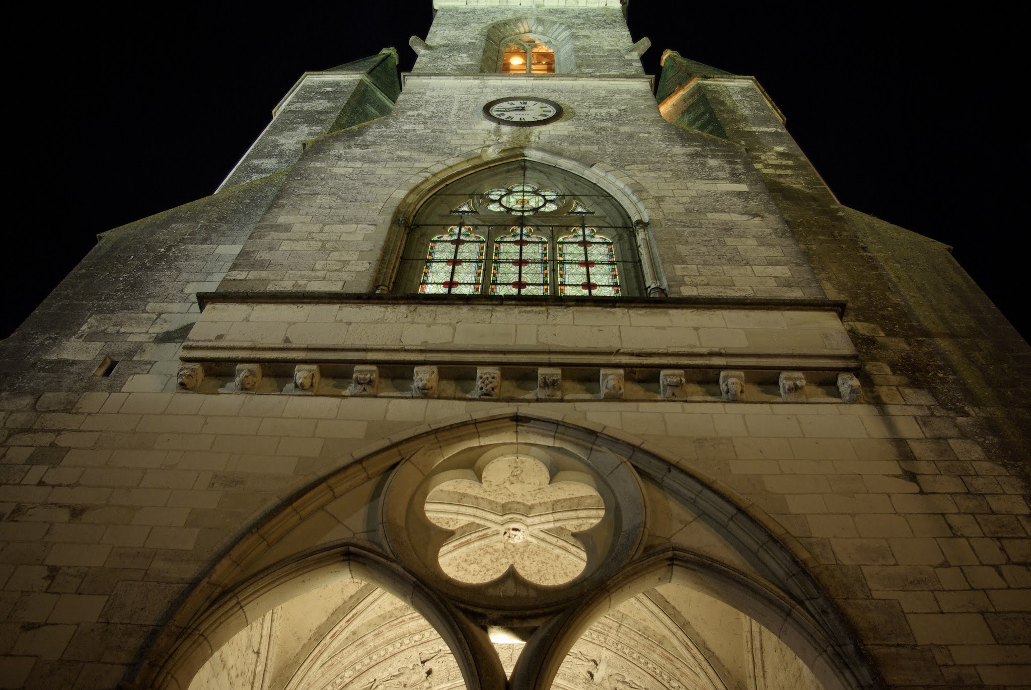 Un vrai cachet pour cette église que Prosper Mérimée jugeait de peu d'intérêt en dehors de la chapelle Renaissance. Le porche avec ses deux portes jumelles et ses décors sculptés est magnifique. Même dégradé par les guerres de religions et la révolution, il en impose. Dans les loges, les statues ont disparu et beaucoup de personnages ont perdu leurs têtes. Une église construite au 14ème siècle, consacrée en 1339, le plan était simple. Une nef à un seul vaisseau, une abside à 3 pans, le tout voûté en lambris avec charpente apparente, décorées de motifs peints et d'armoiries. Au 15ème siècle, on construit une chapelle au Nord, puis une autre au Sud au 16ème siècle. Cette dernière chapelle, plus grande, décline des spécificités architecturales originales, typiques de la Renaissance. Une chose précieuse et rare est à voir, ce sont les différentes verrières. Le triptyque du chœur est du 14ème siècle, ces vitraux étaient posés lors de la consécration de l'église. Un autre de la même époque est dans la nef, les autres sont du 18ème et 19ème siècles. Des stalles, des tableaux sont aussi à découvrir dans cette église où les styles se mélangent dans une sorte de joyeux désordre maitrisée. Un vrai cachet pour cette église que Prosper Mérimée jugeait de peu d'intérêt en dehors de la chapelle renaissance. Classée par les M.H. en 1862, elle attendra encore 15 à 20 ans pour bénéficier de subventions permettant des chantiers de restaurations. C'est aussi au 19ème siècle que fut construit le clocher. Une curiosité, la Méridienne disposée sur le mur Sud.