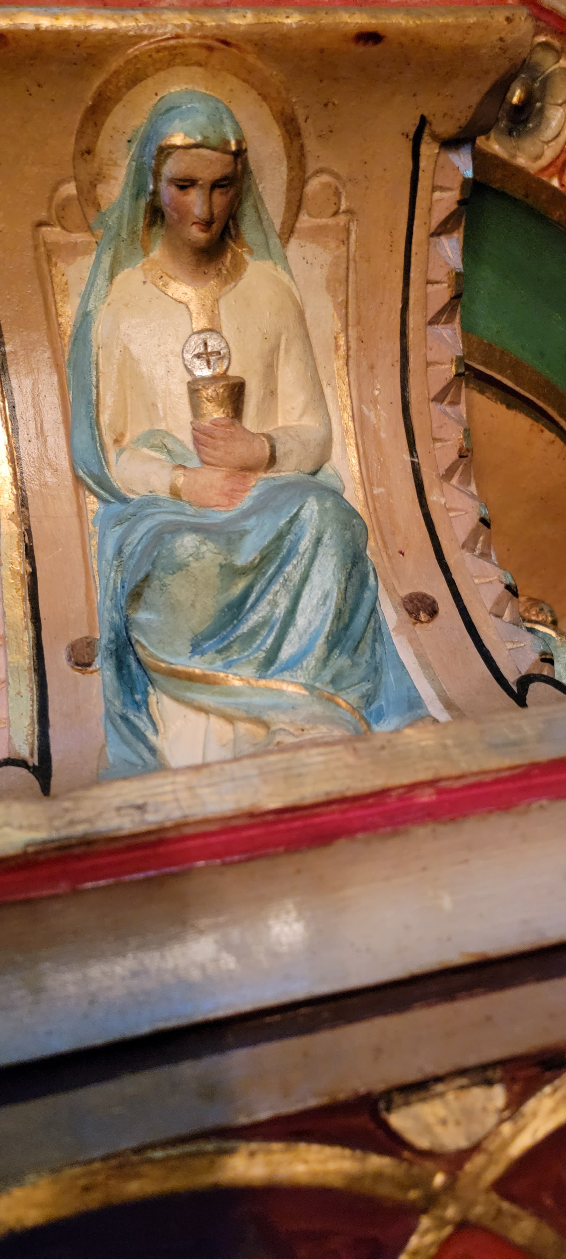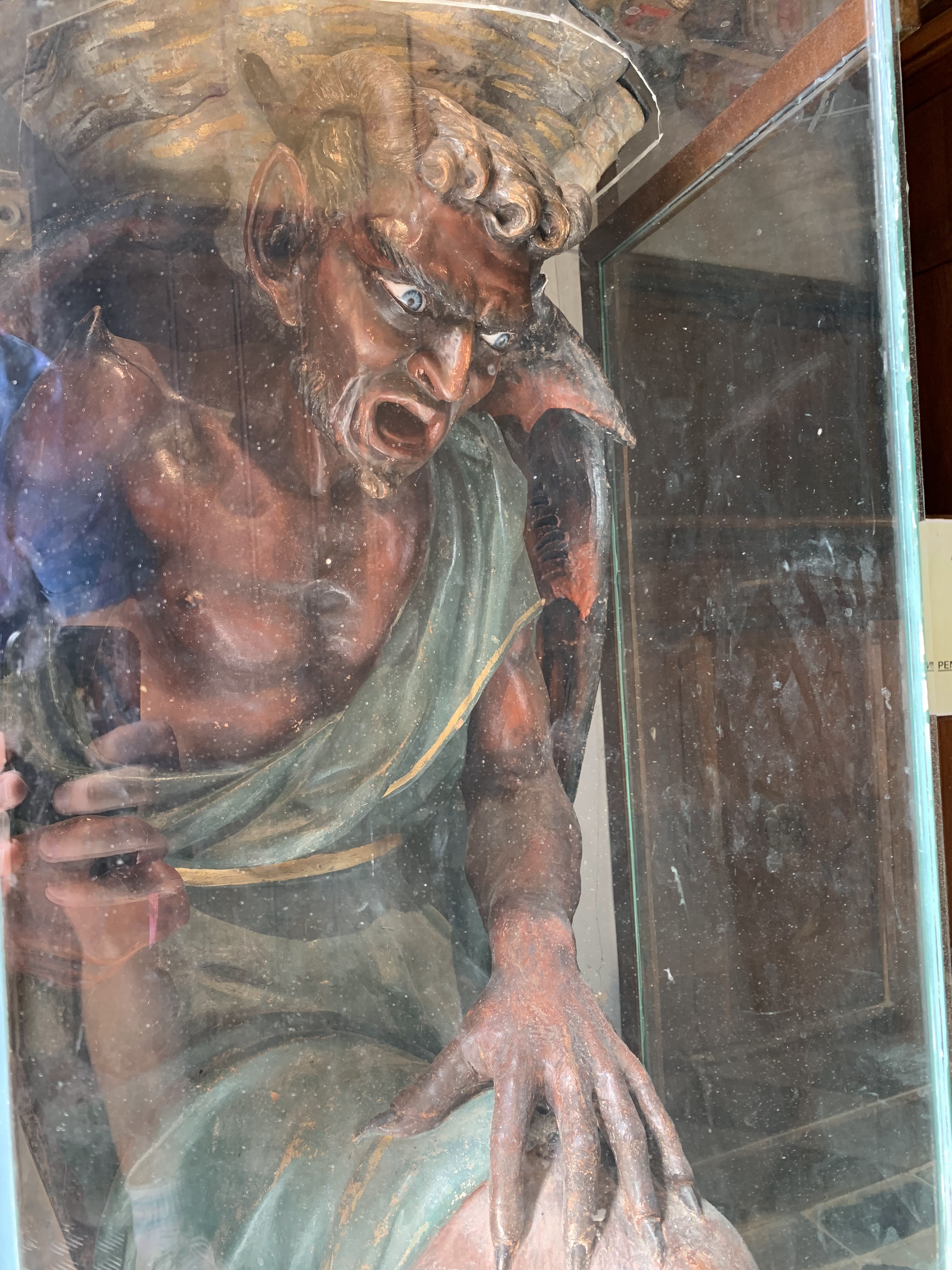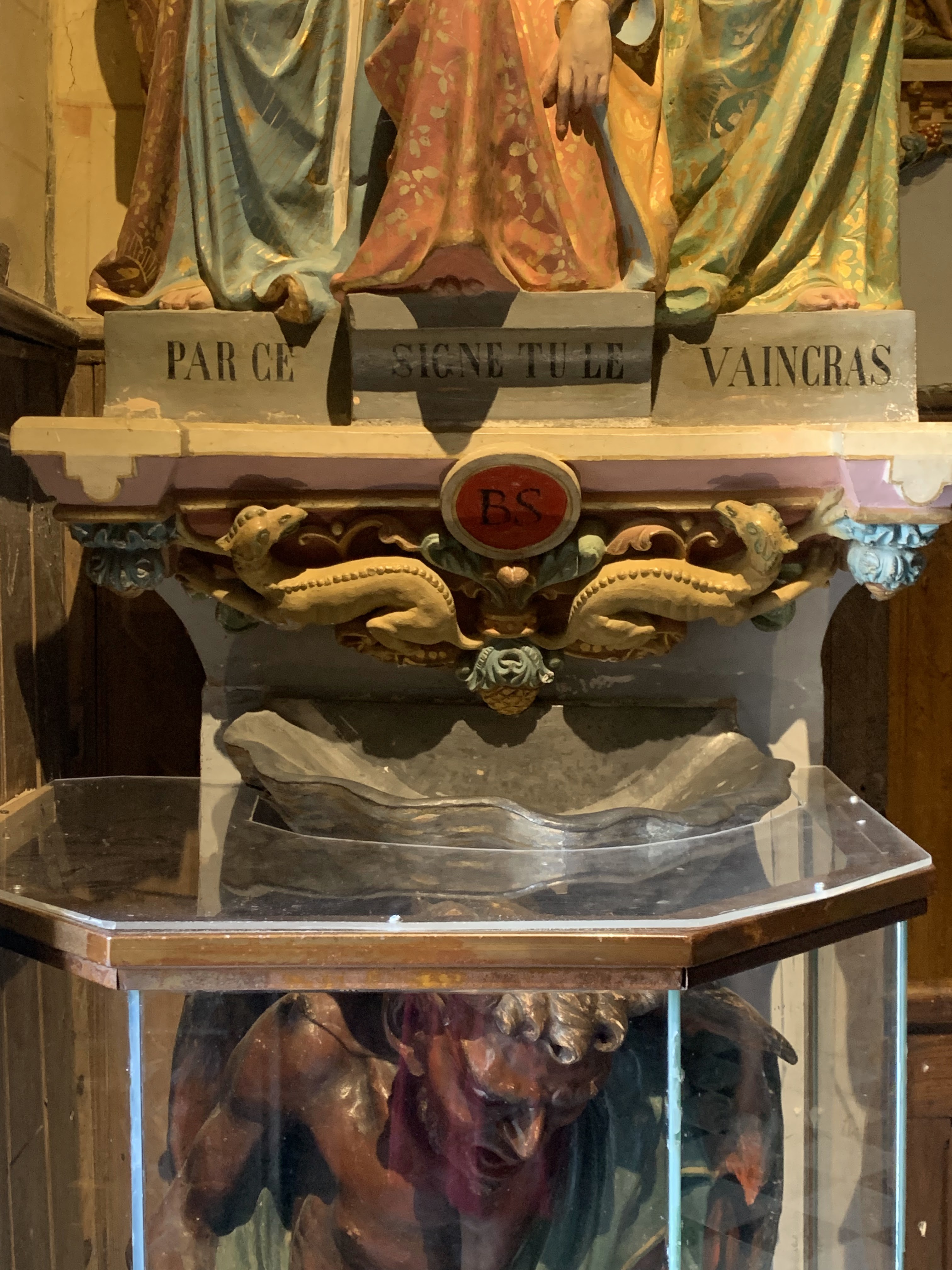 Ils ont restauré la tête du démon, mais ils l'ont placée entière dans une urne transparente avec les fonts baptismaux à l'extérieur... ce qui est HORRIFIQUE.