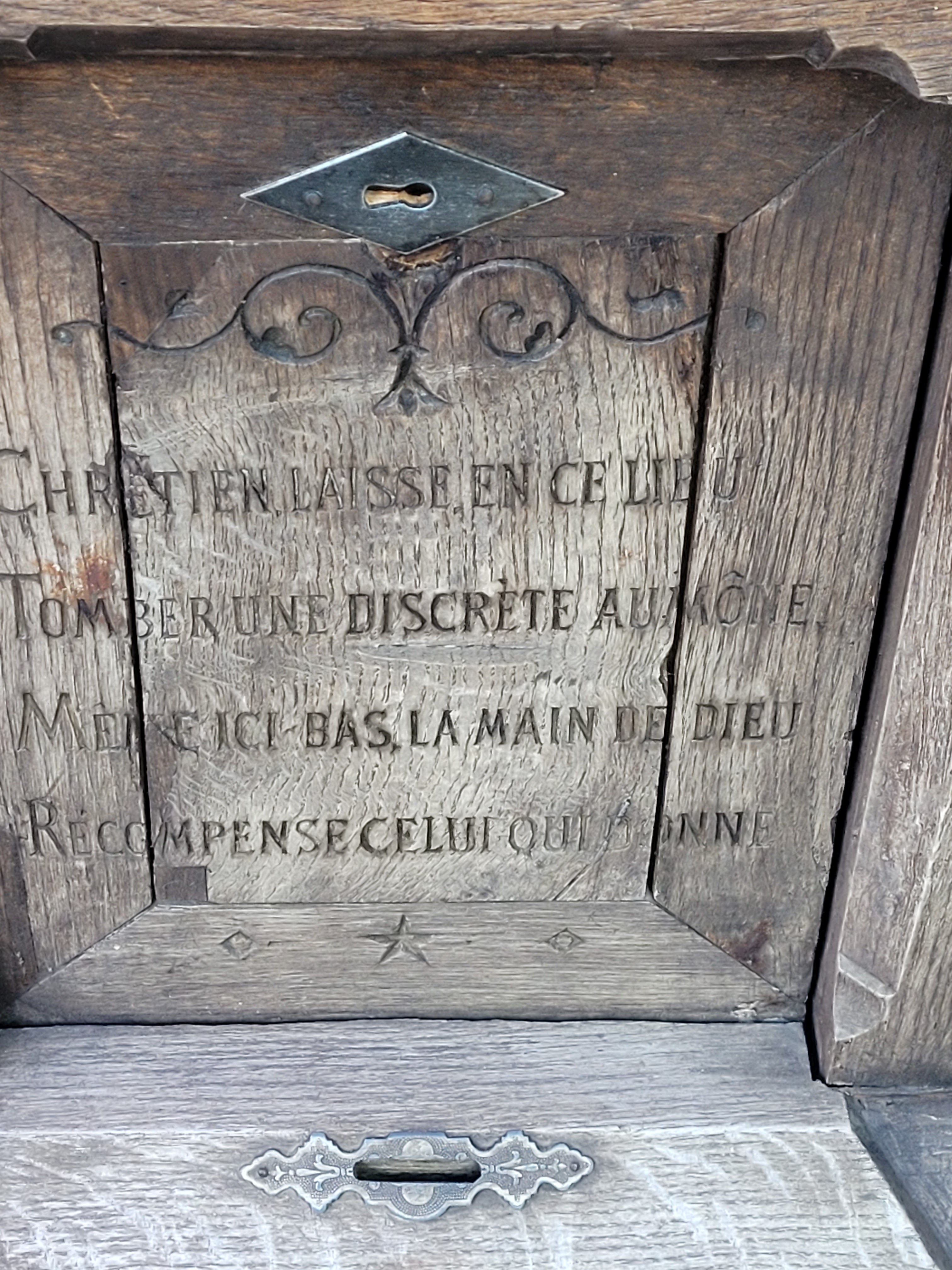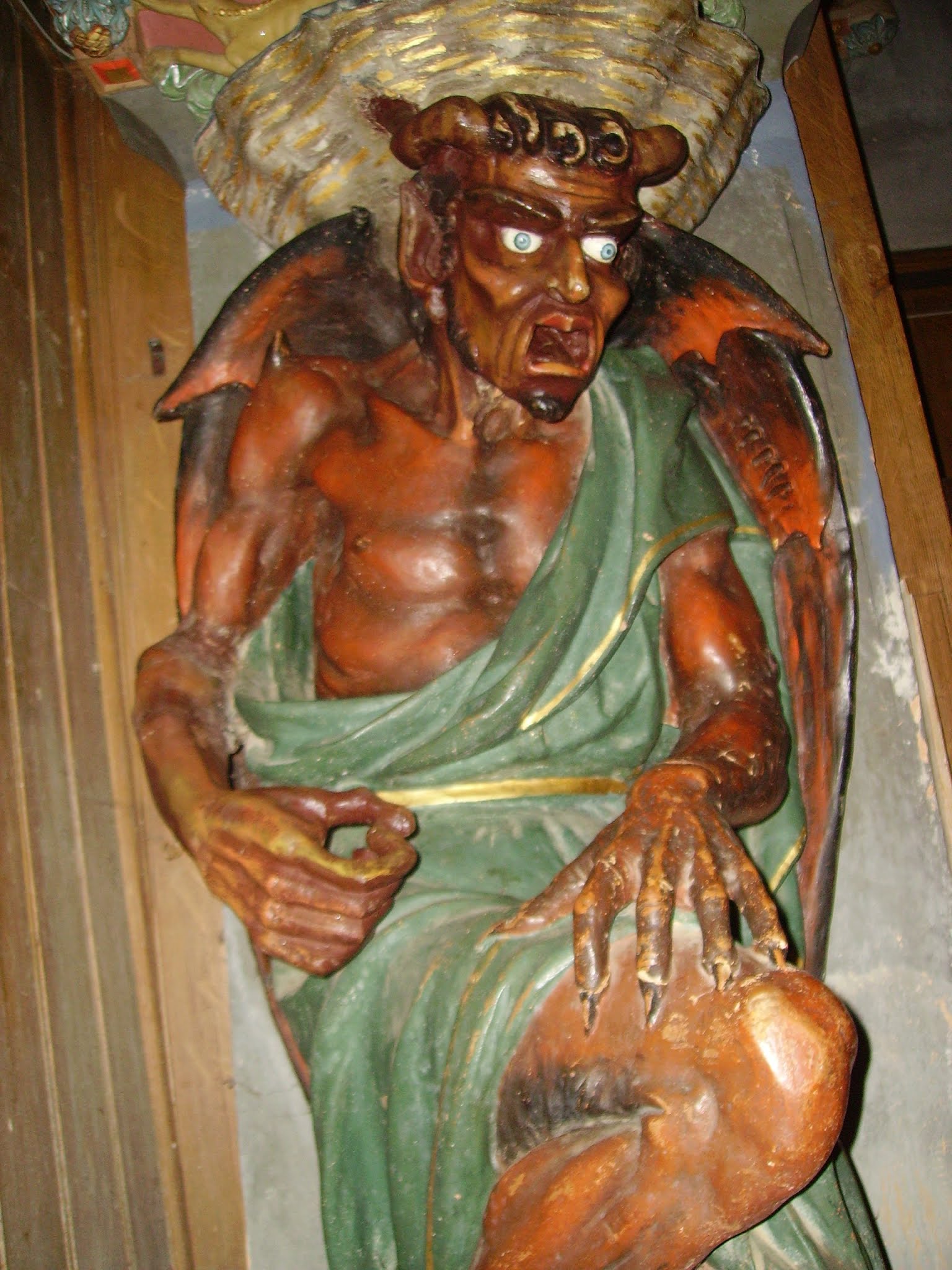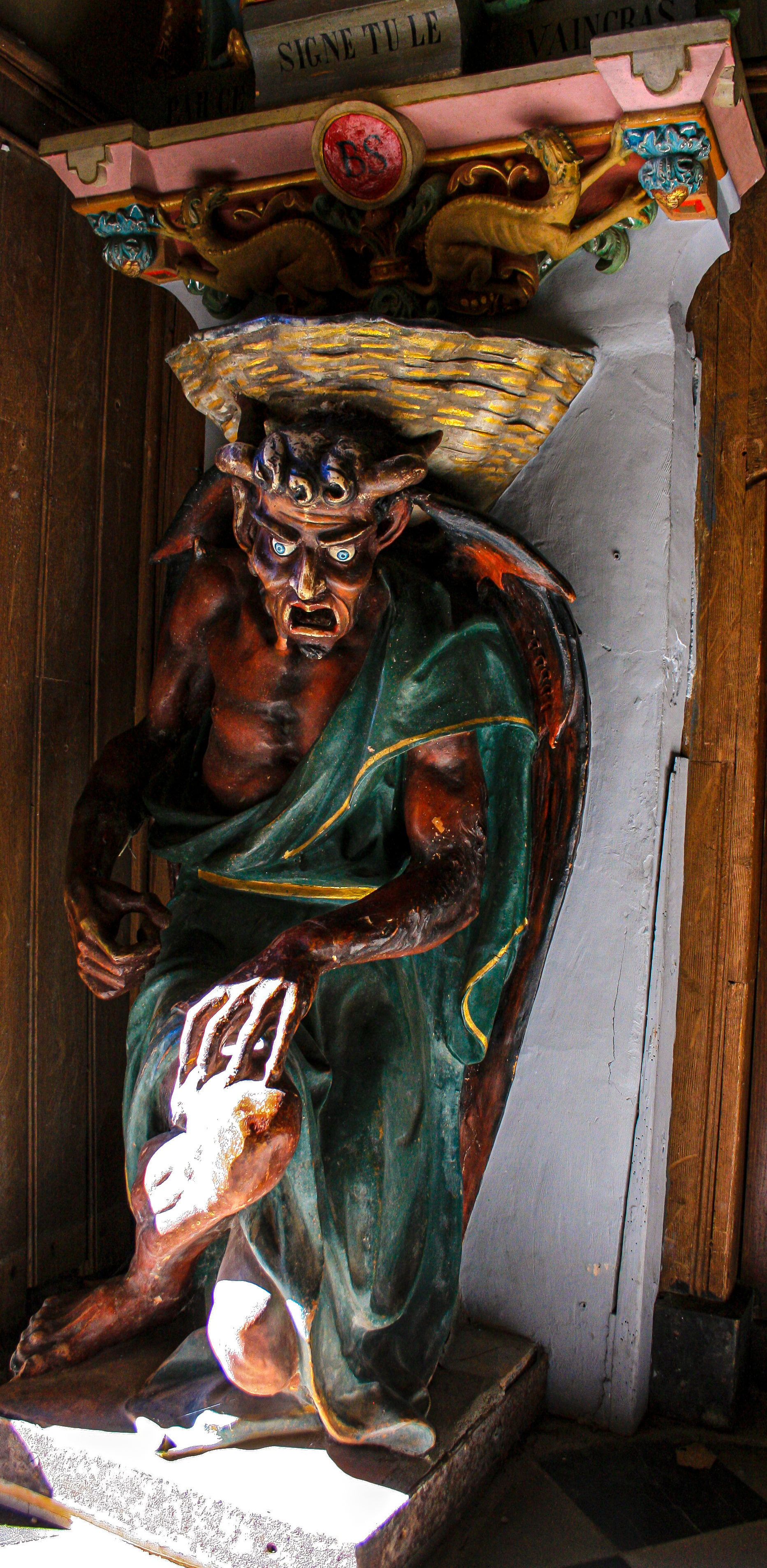 Nous n'avons toujours pas trouvé le trésor... mais on cherche toujours. Dès l'entrée, au dessus du porche, on peut lire Terribilis este locus iste ce lieu est terrible, ça s'annonce fort intéressant ! A l’entrée sur la gauche, le fameux diable nous accueille avec son air diabolique, soutenant un bénitier surmonté de 4 anges où est écrit « par ce signe tu le vaincras ». Ensuite, ce sont beaucoup de secrets et de mystères que nous livrent cette église.
