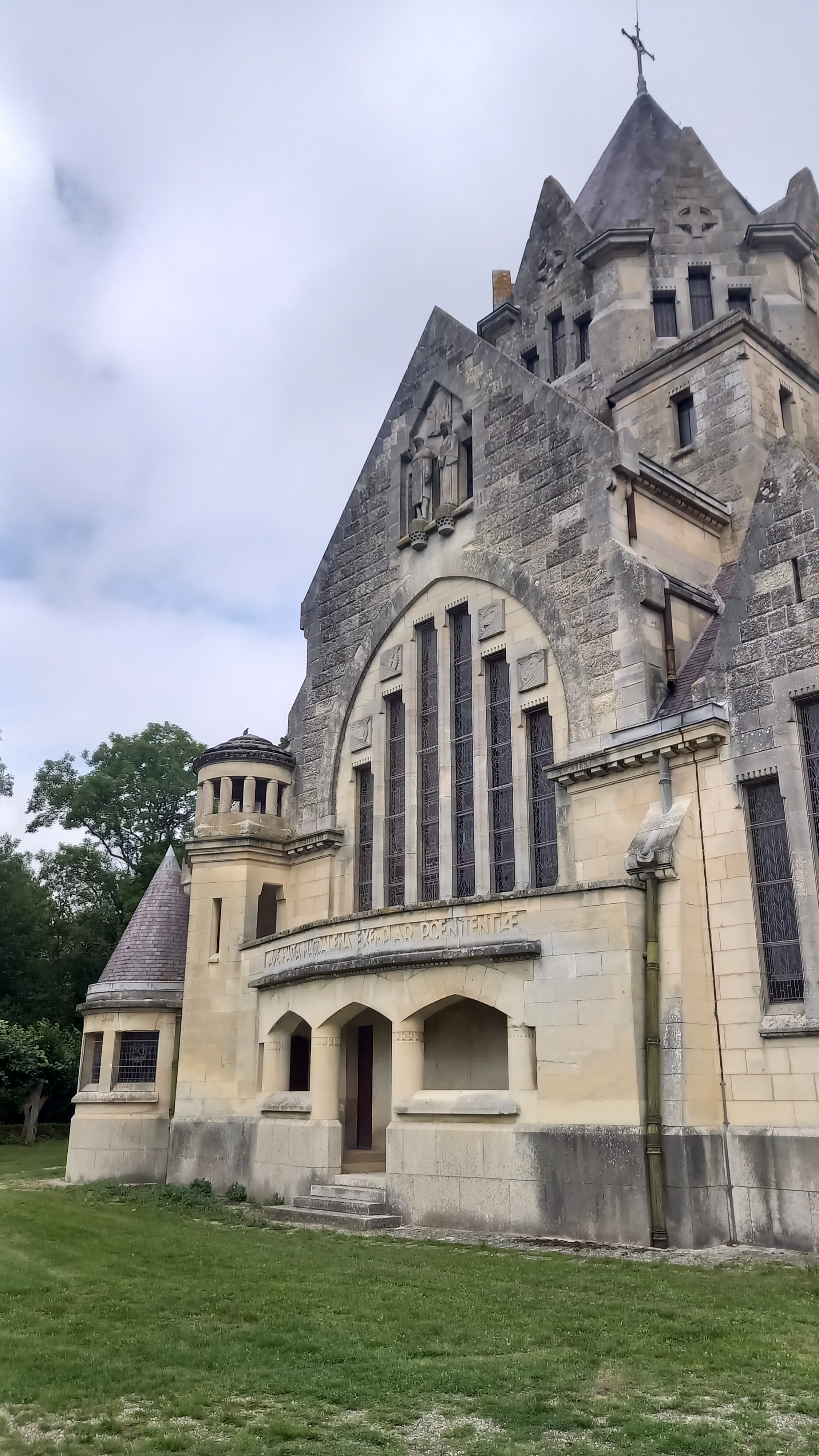 Belle église Très bel extérieur Les couleurs magnifiques des vitraux qui donnent beaucoup de charme Attention visite privée